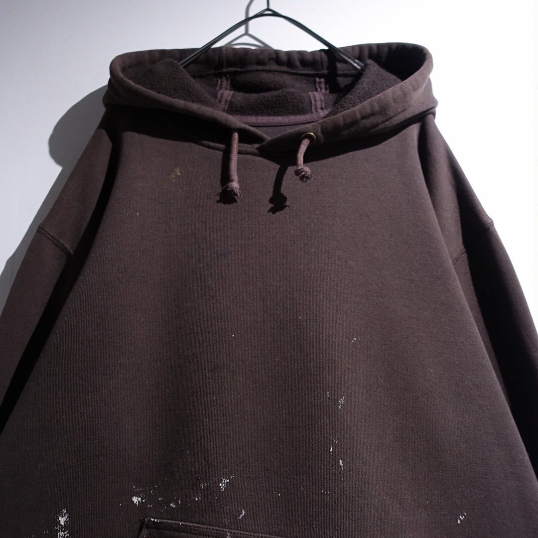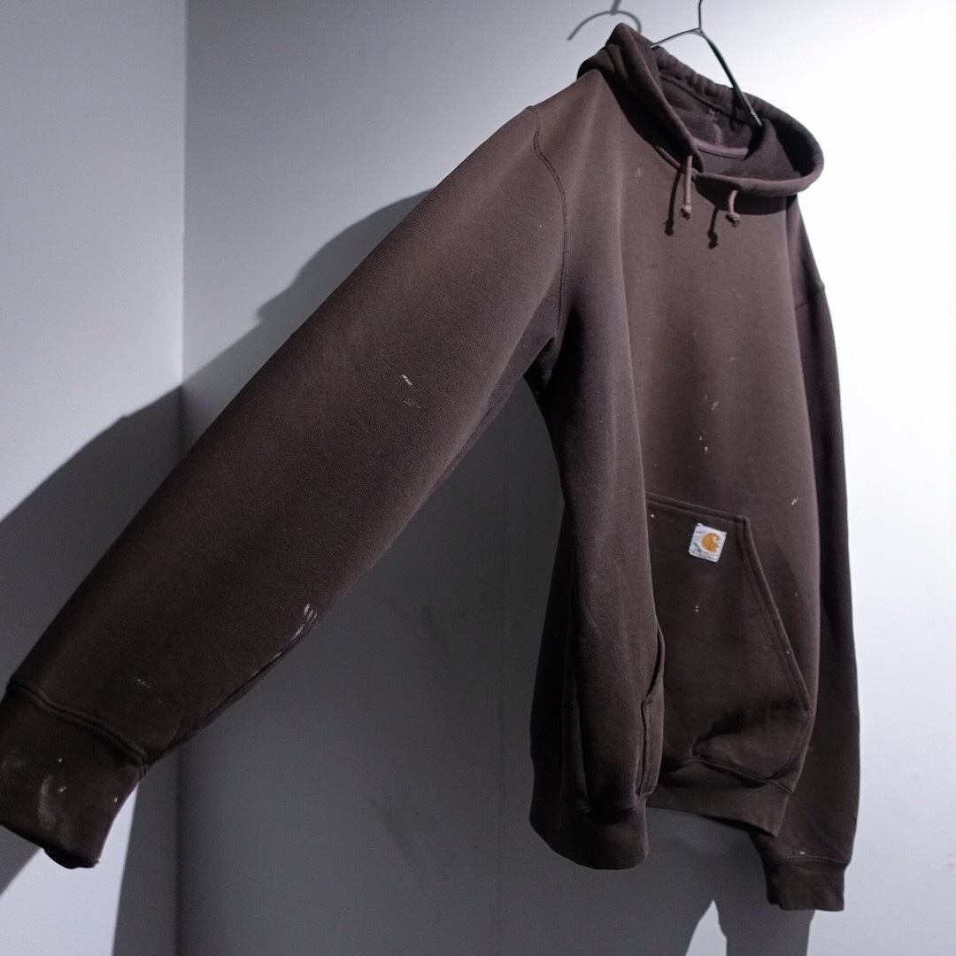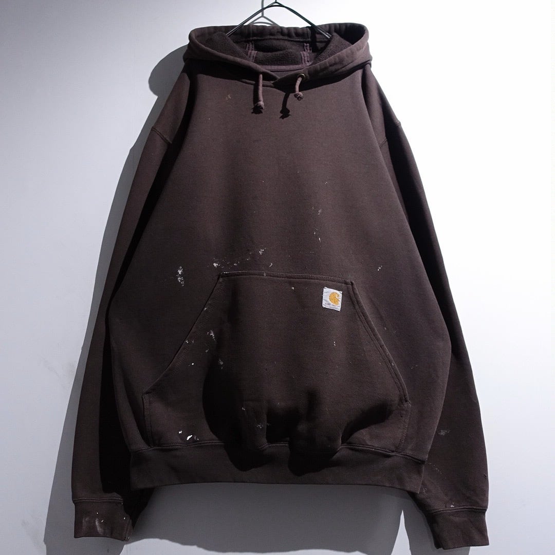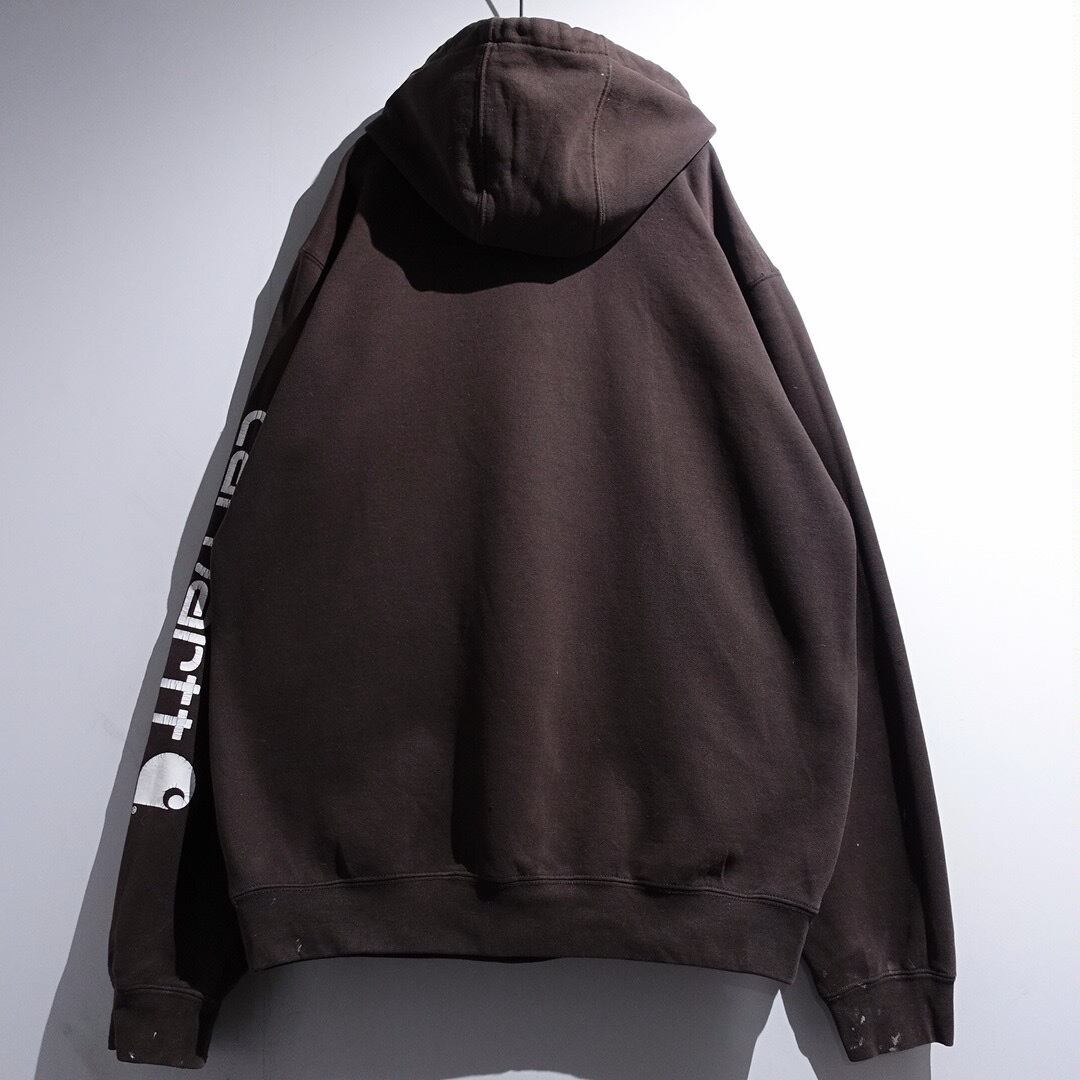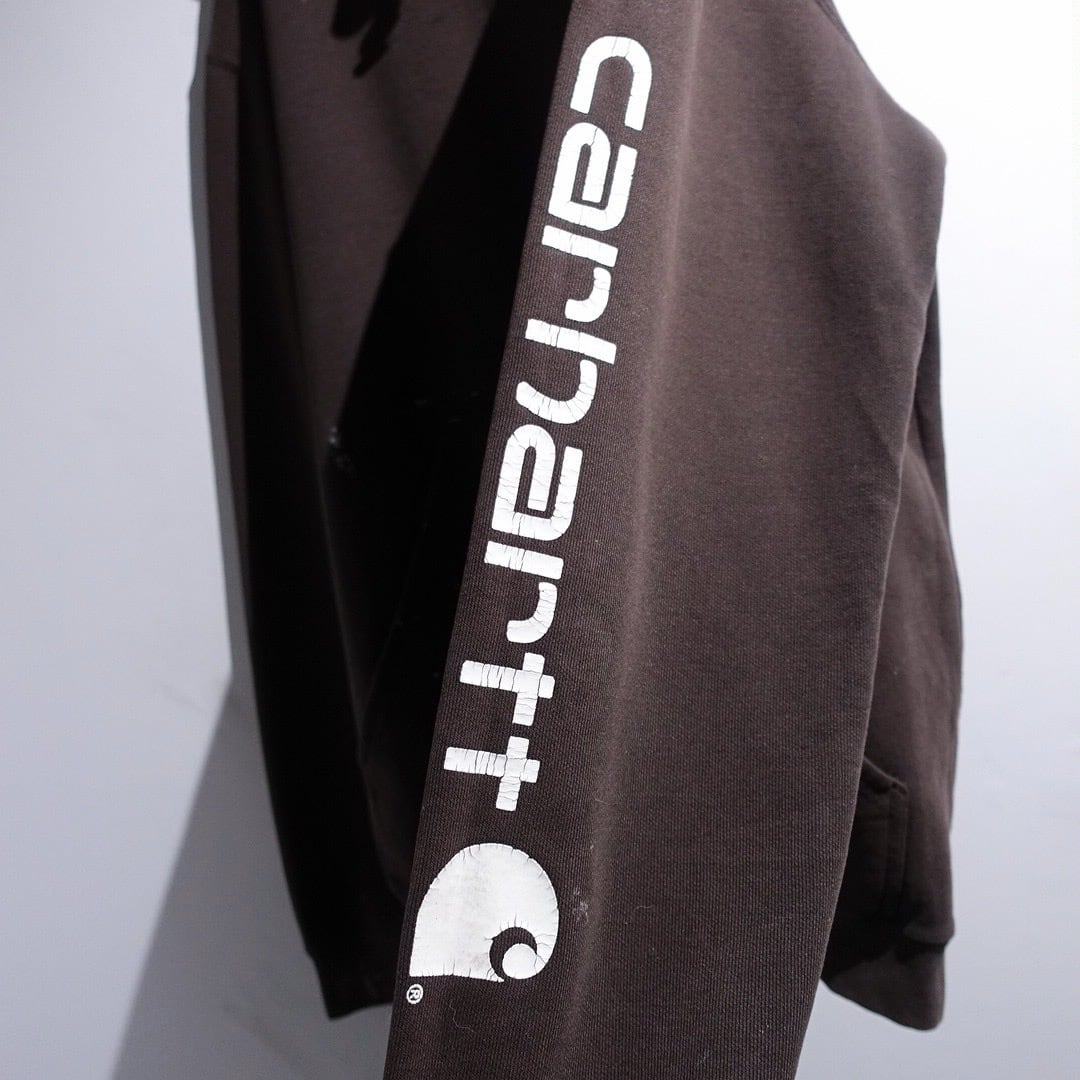 "Carhartt" Brown Faded Paint Logo Design Sweat Parka