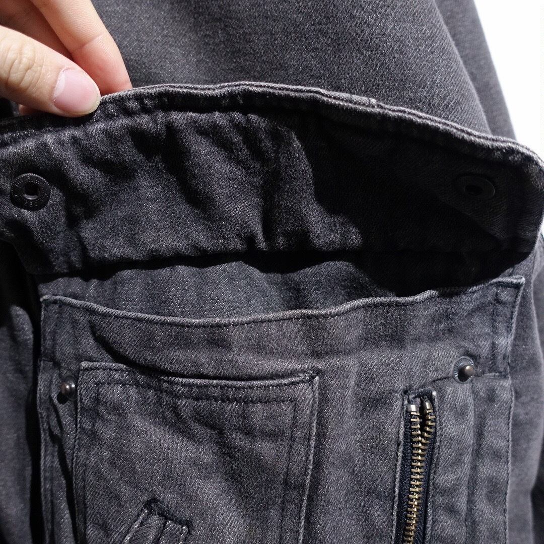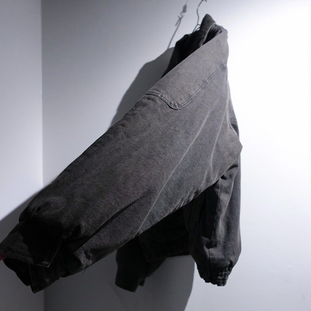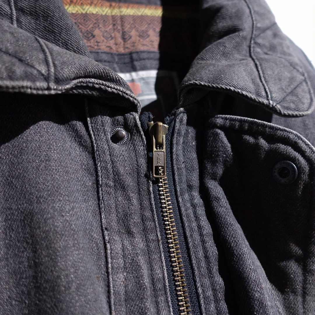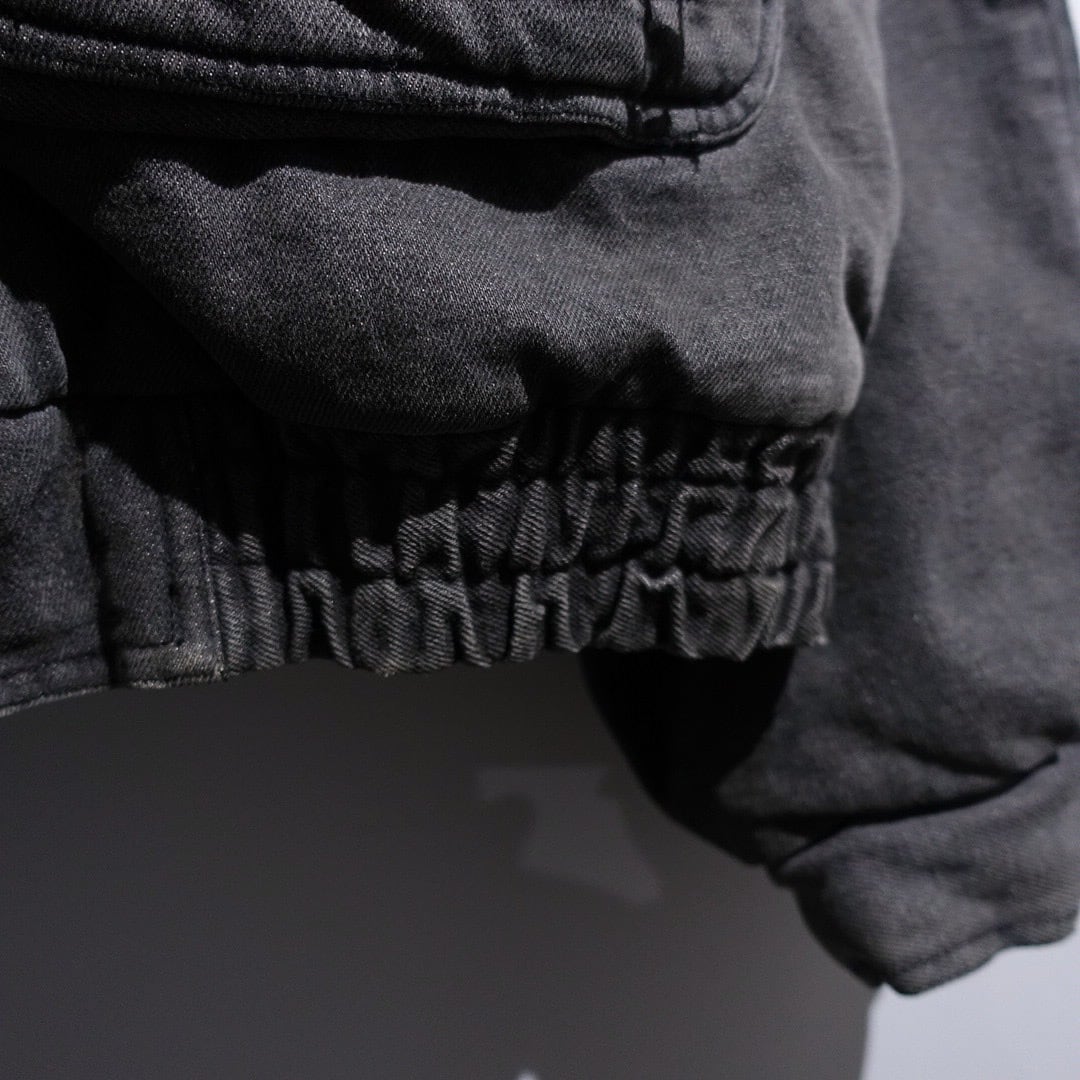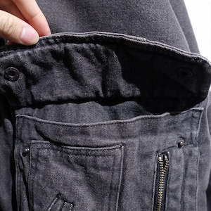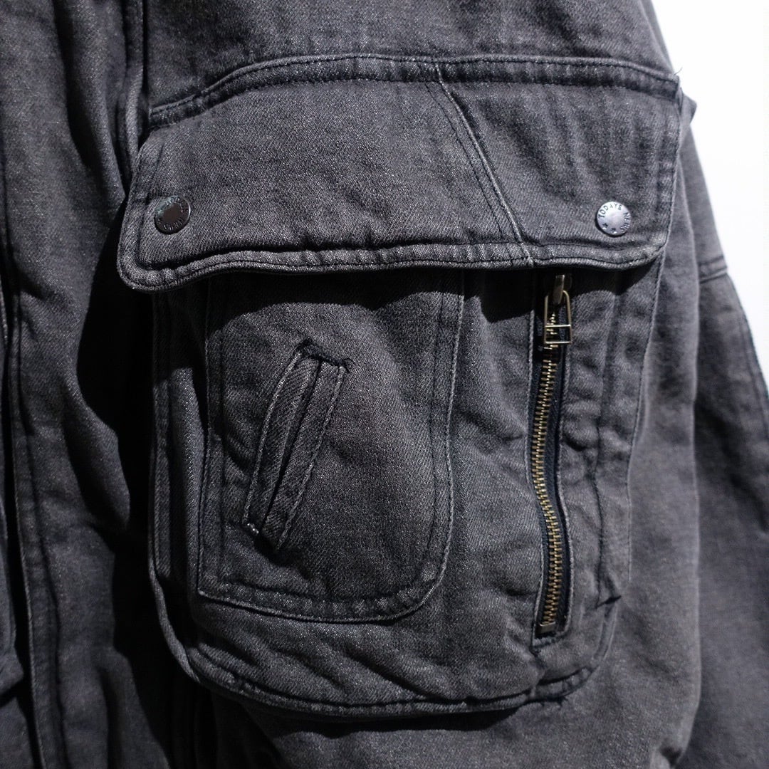 90s Faded Black Denim Multi-Pocket Design Blouson