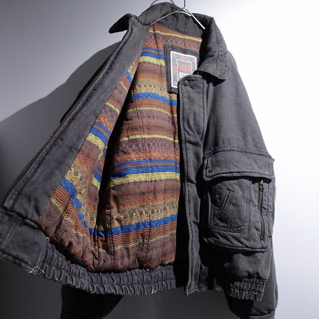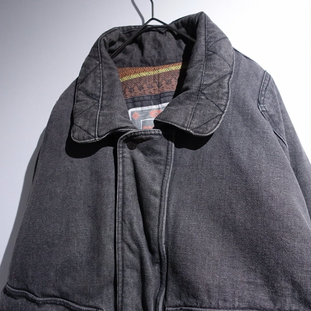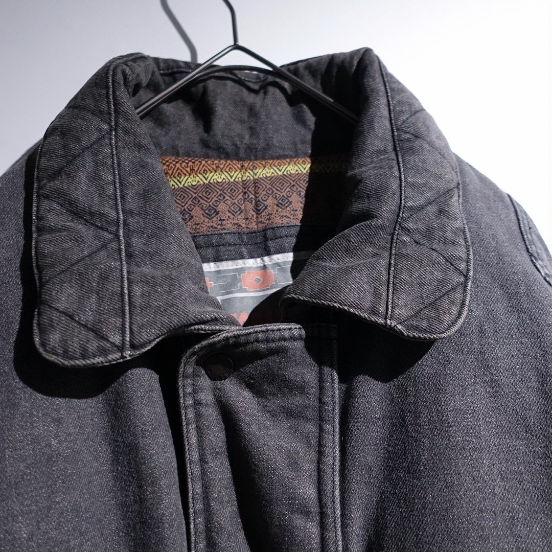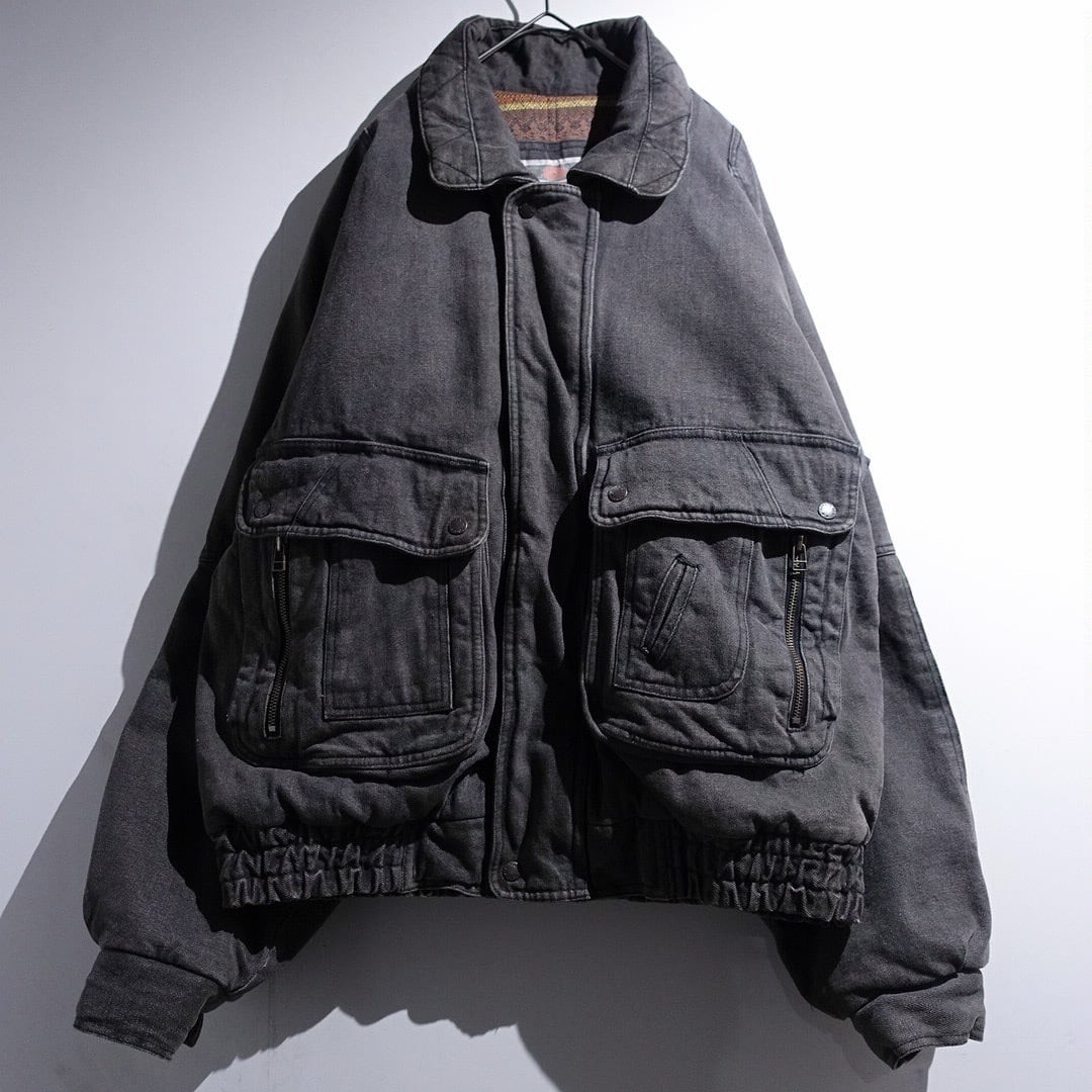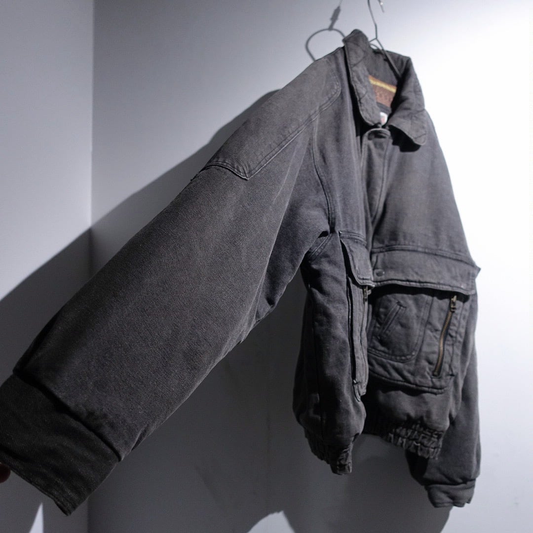 90s Faded Black Denim Multi-Pocket Design Blouson