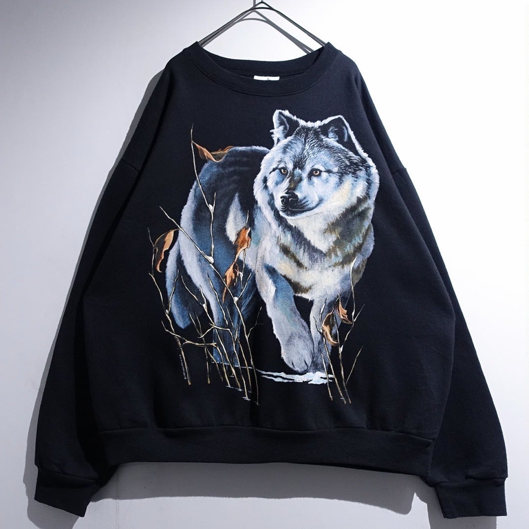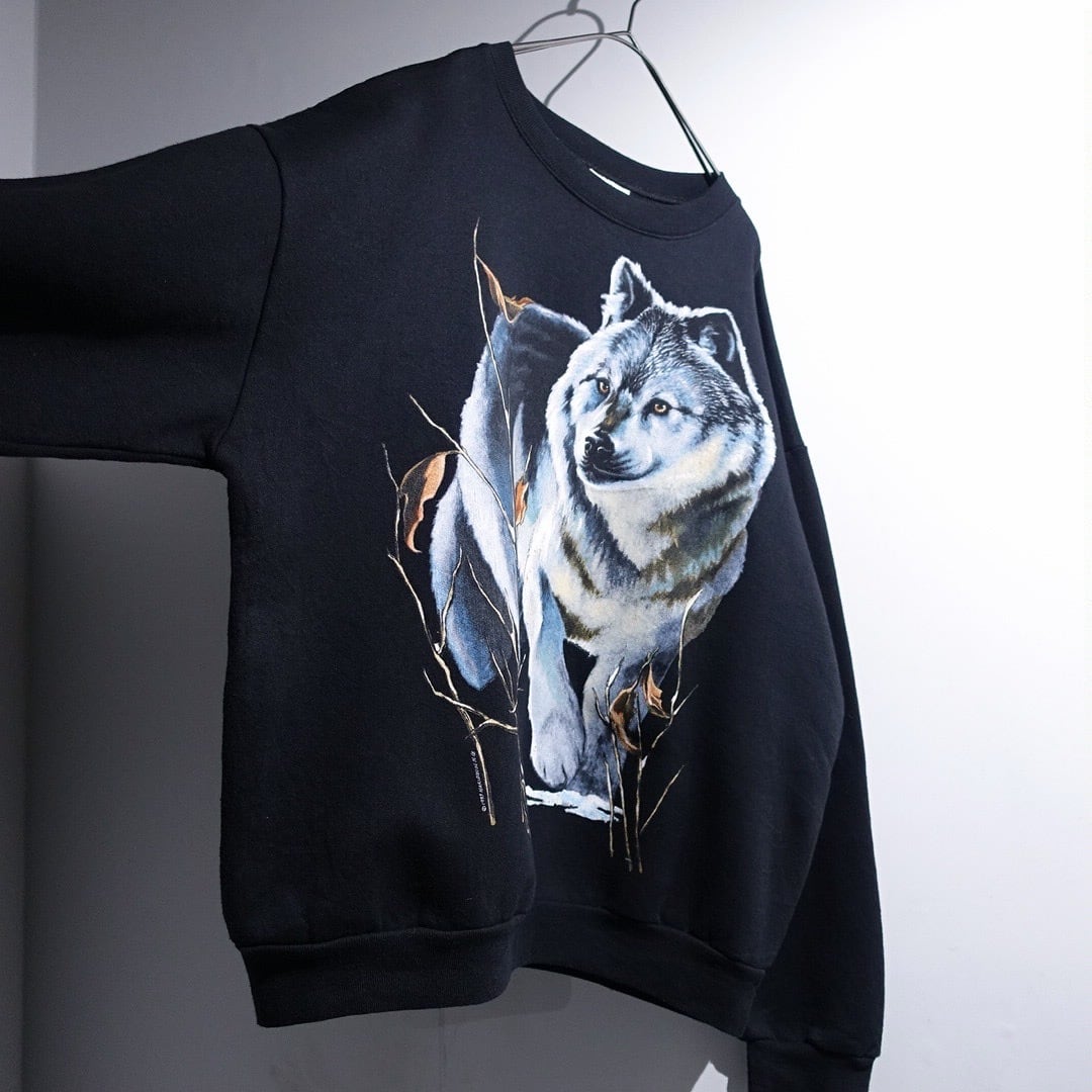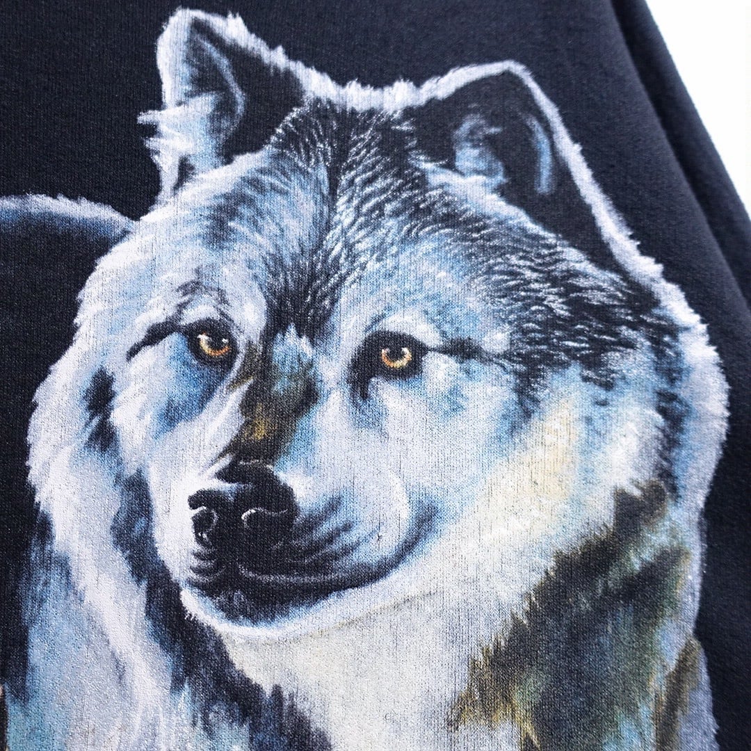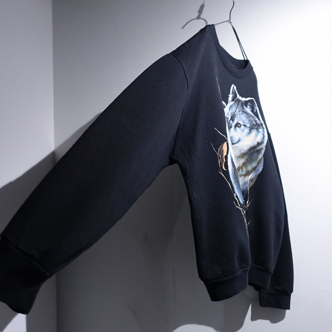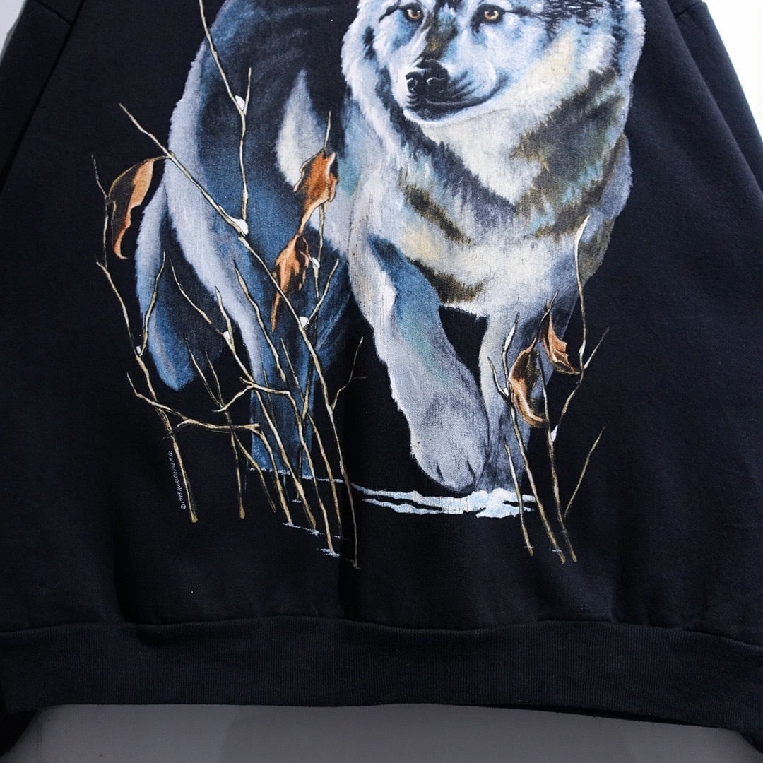 90s Black Wolf Print Design Animal Sweat