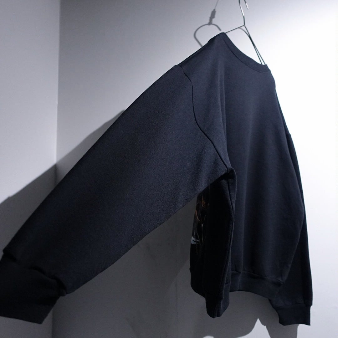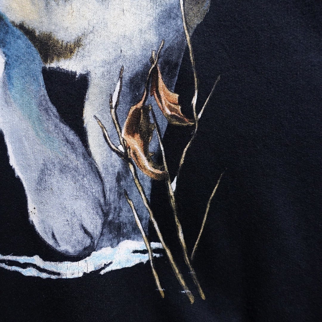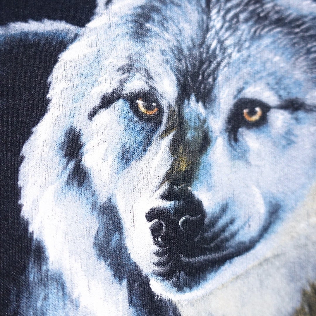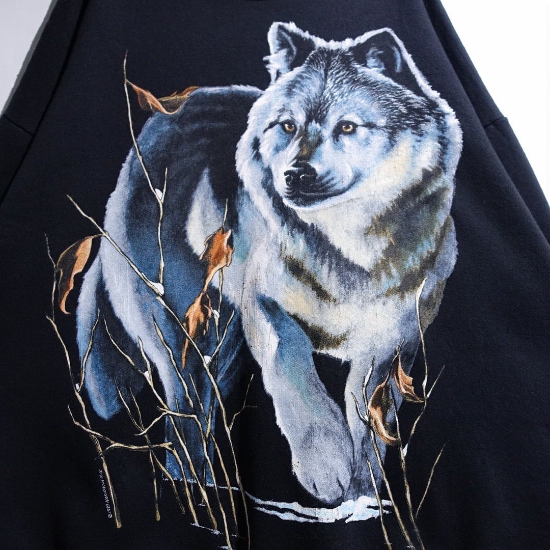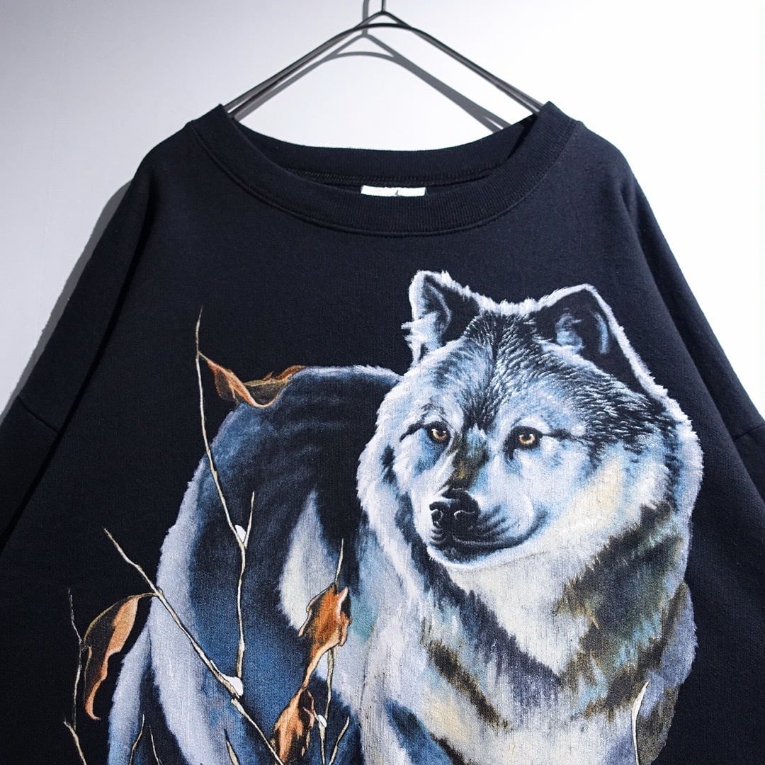 90s Black Wolf Print Design Animal Sweat