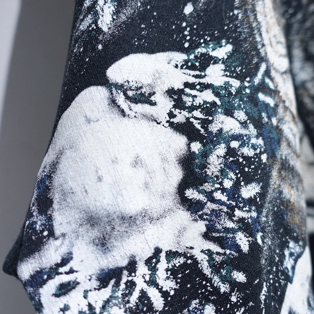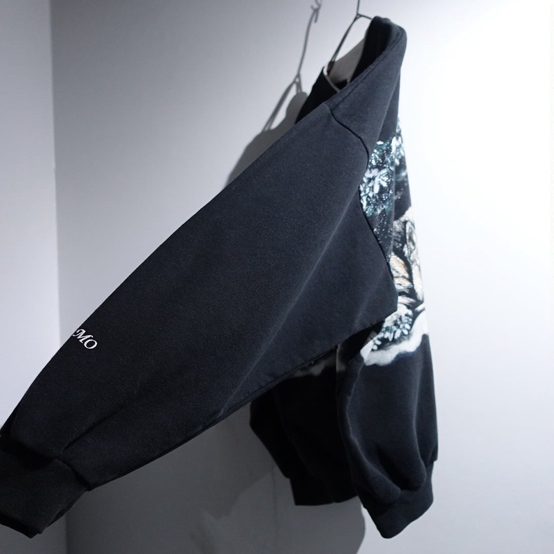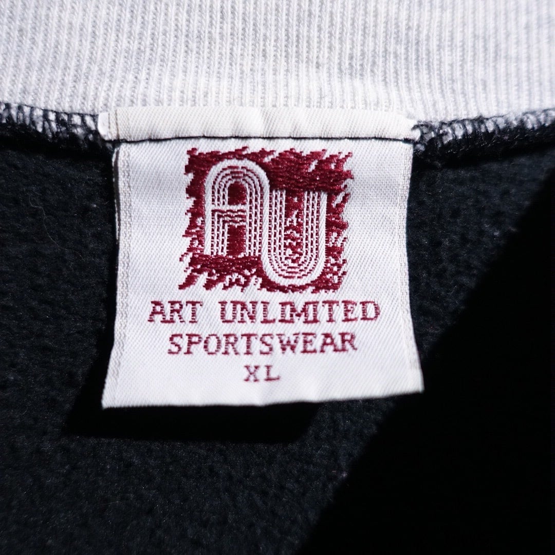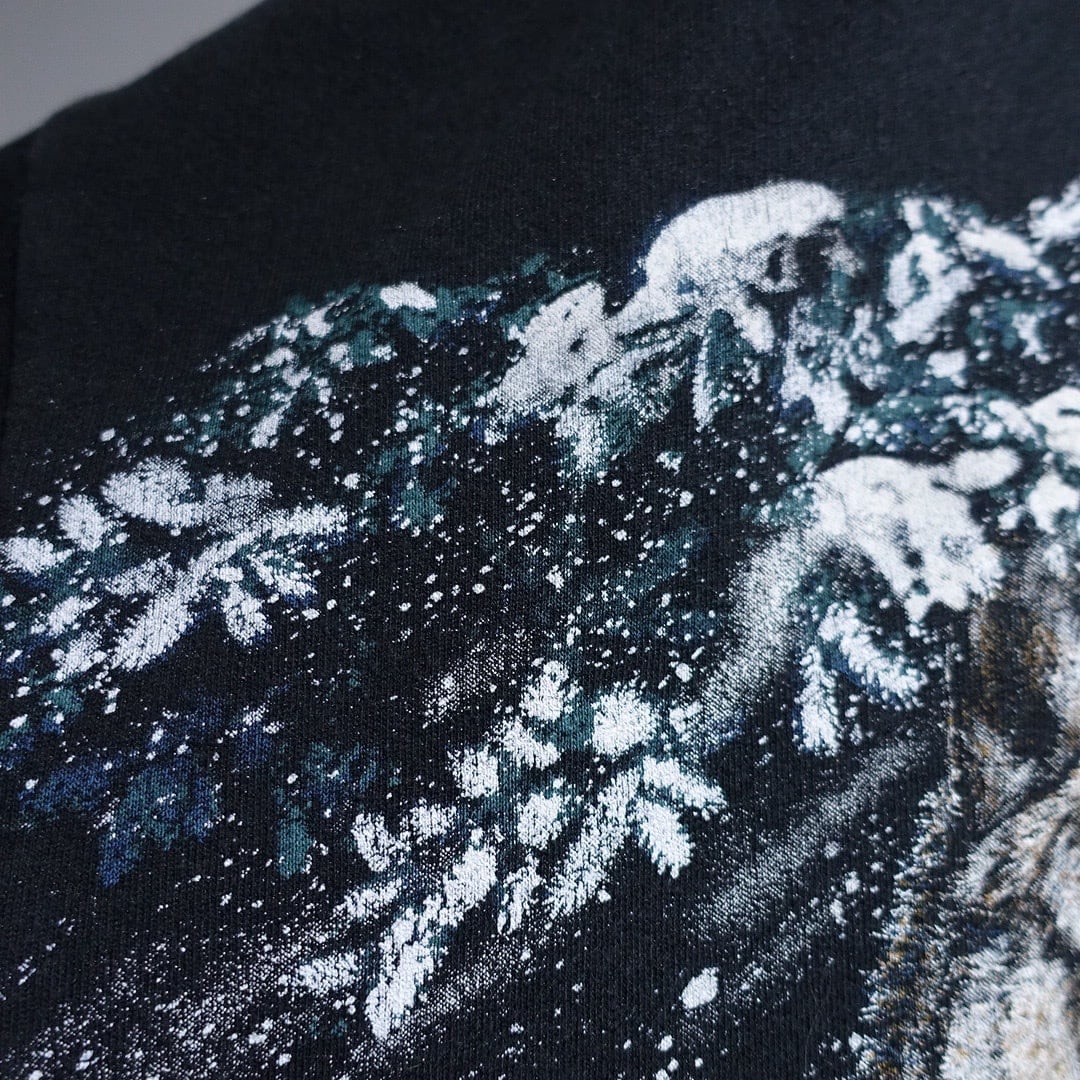 90s "ART UNLIMITED" Black Wolf Print Design Henley Neck Sweat