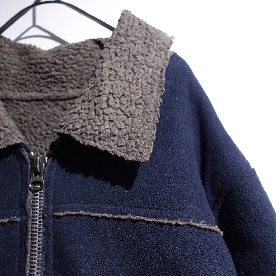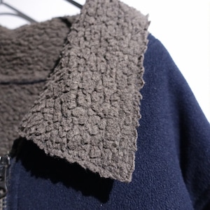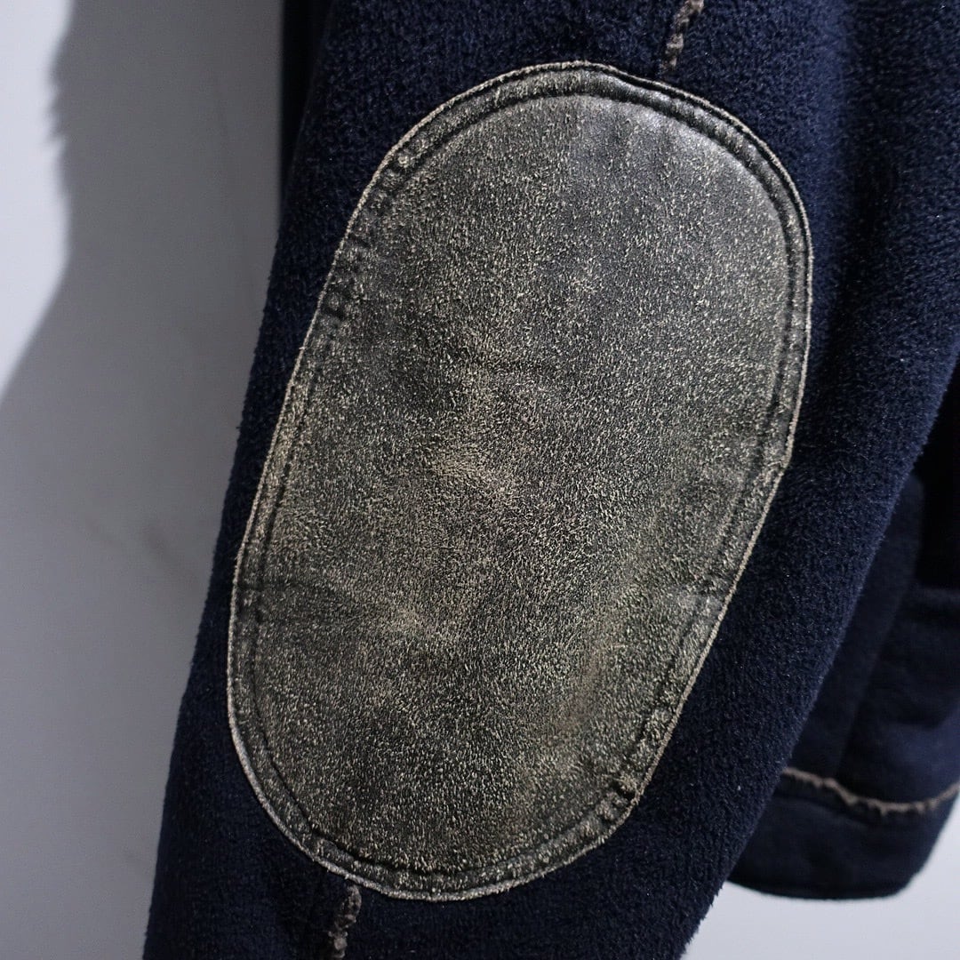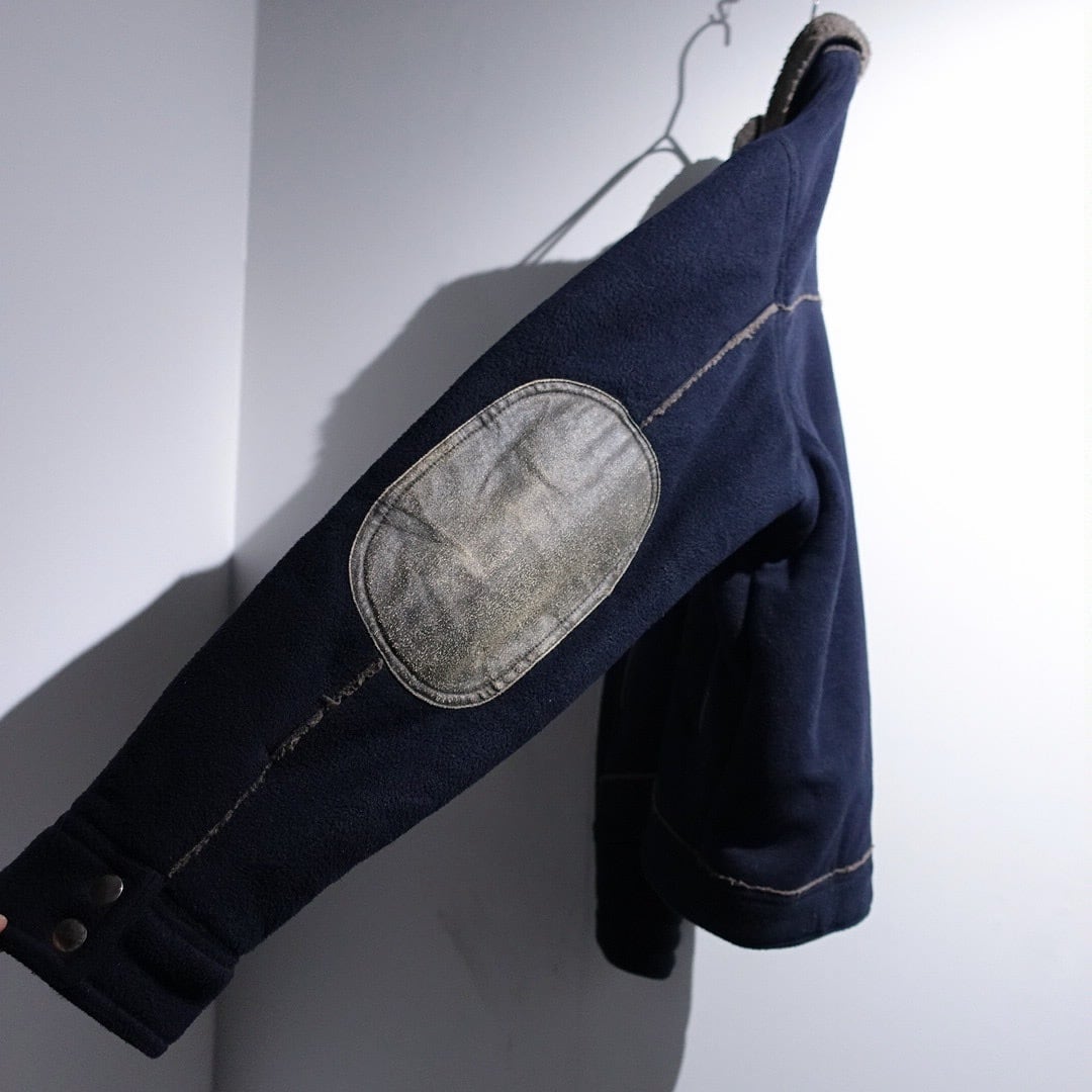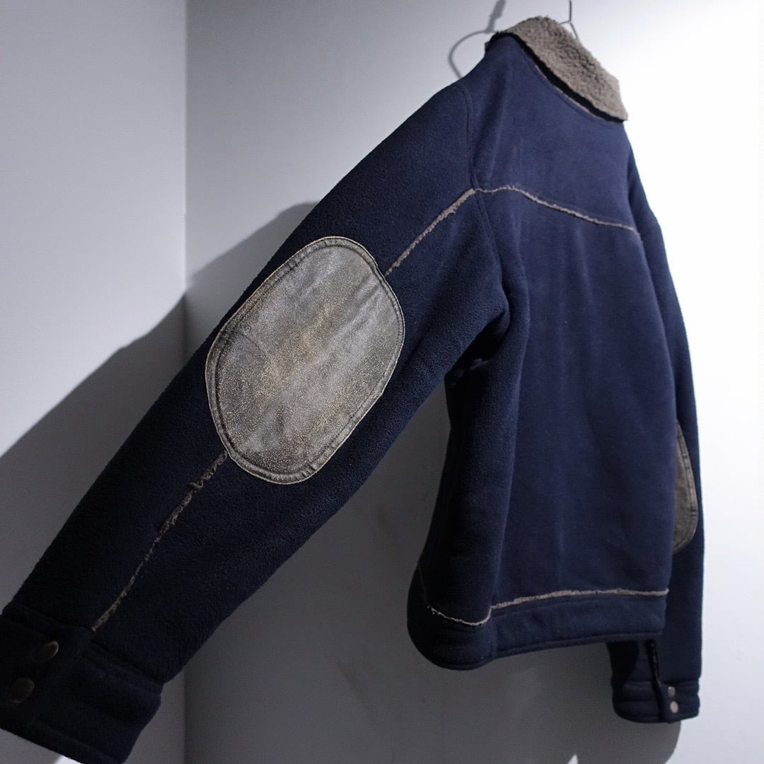 Navy Elbow Patch Switching Design Boa Fleece Jacket