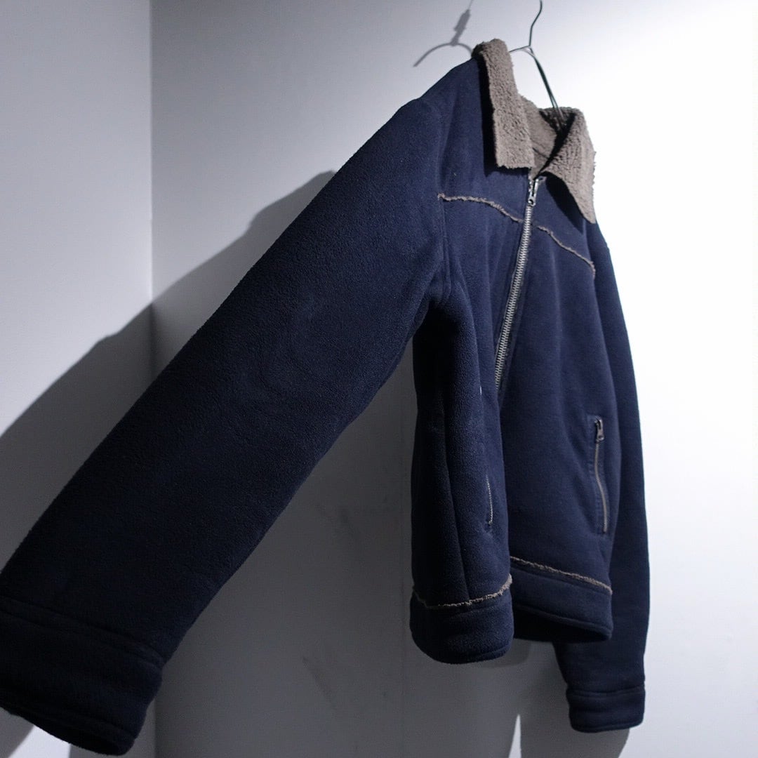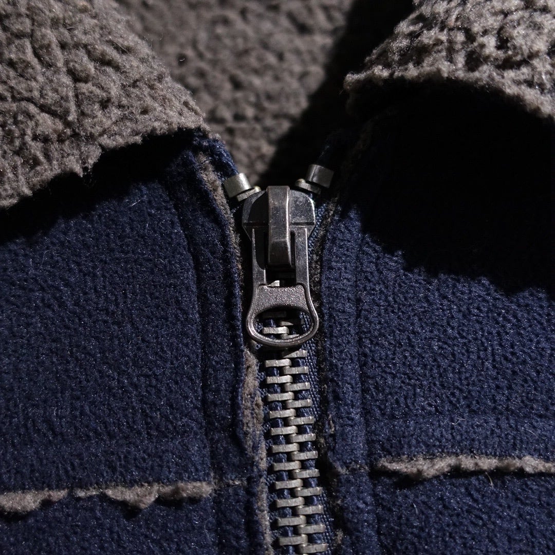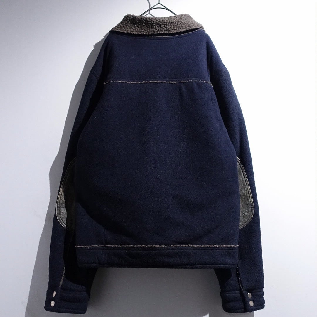 Navy Elbow Patch Switching Design Boa Fleece Jacket