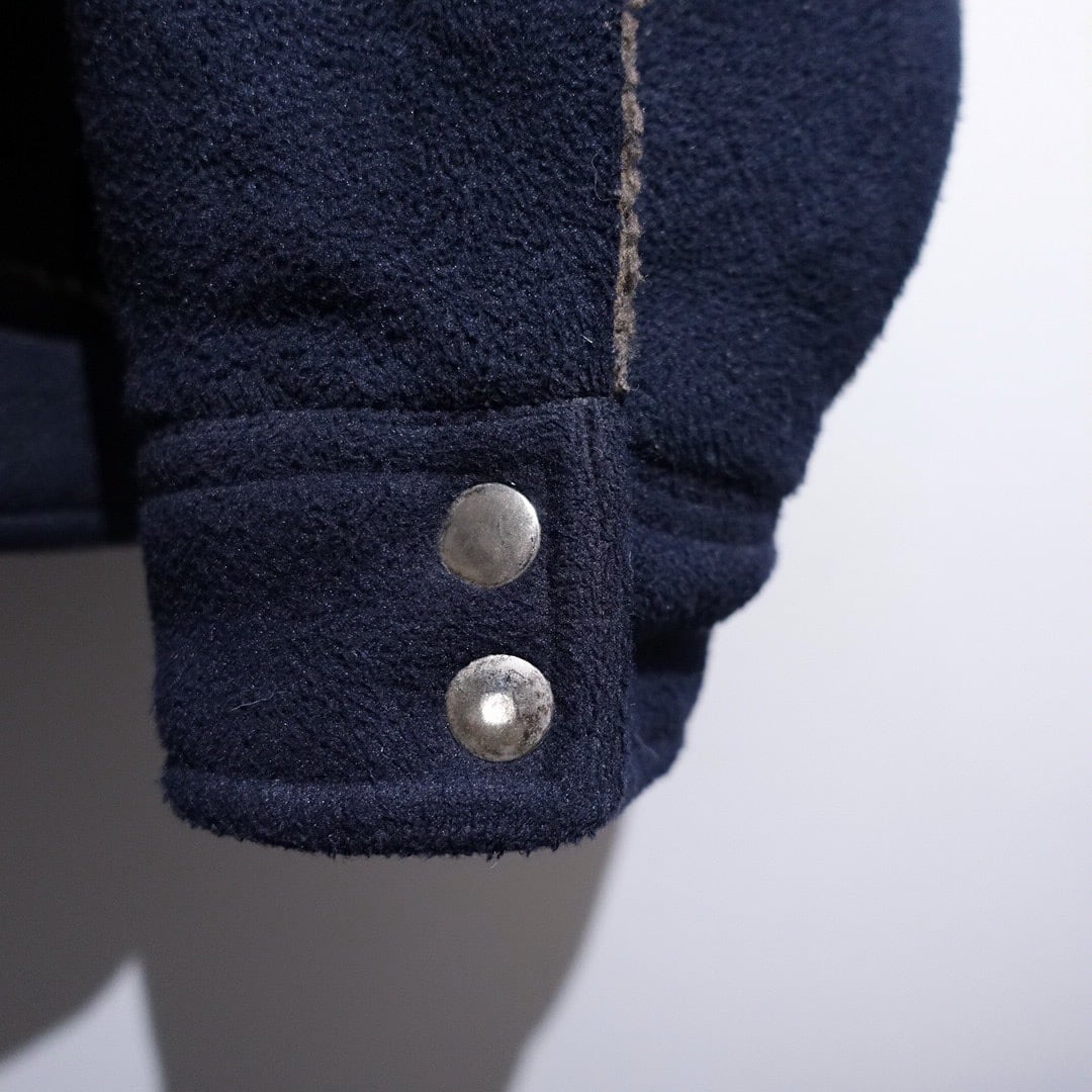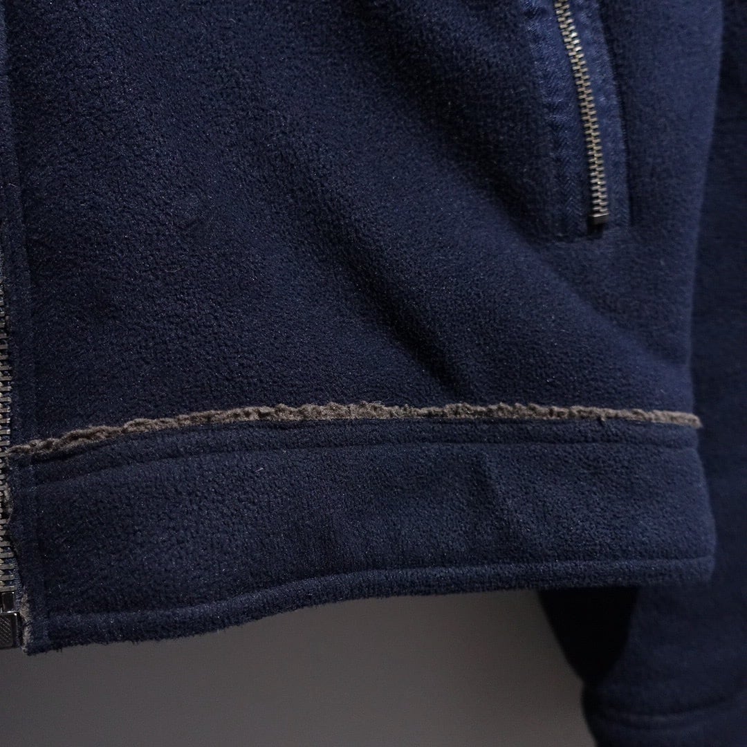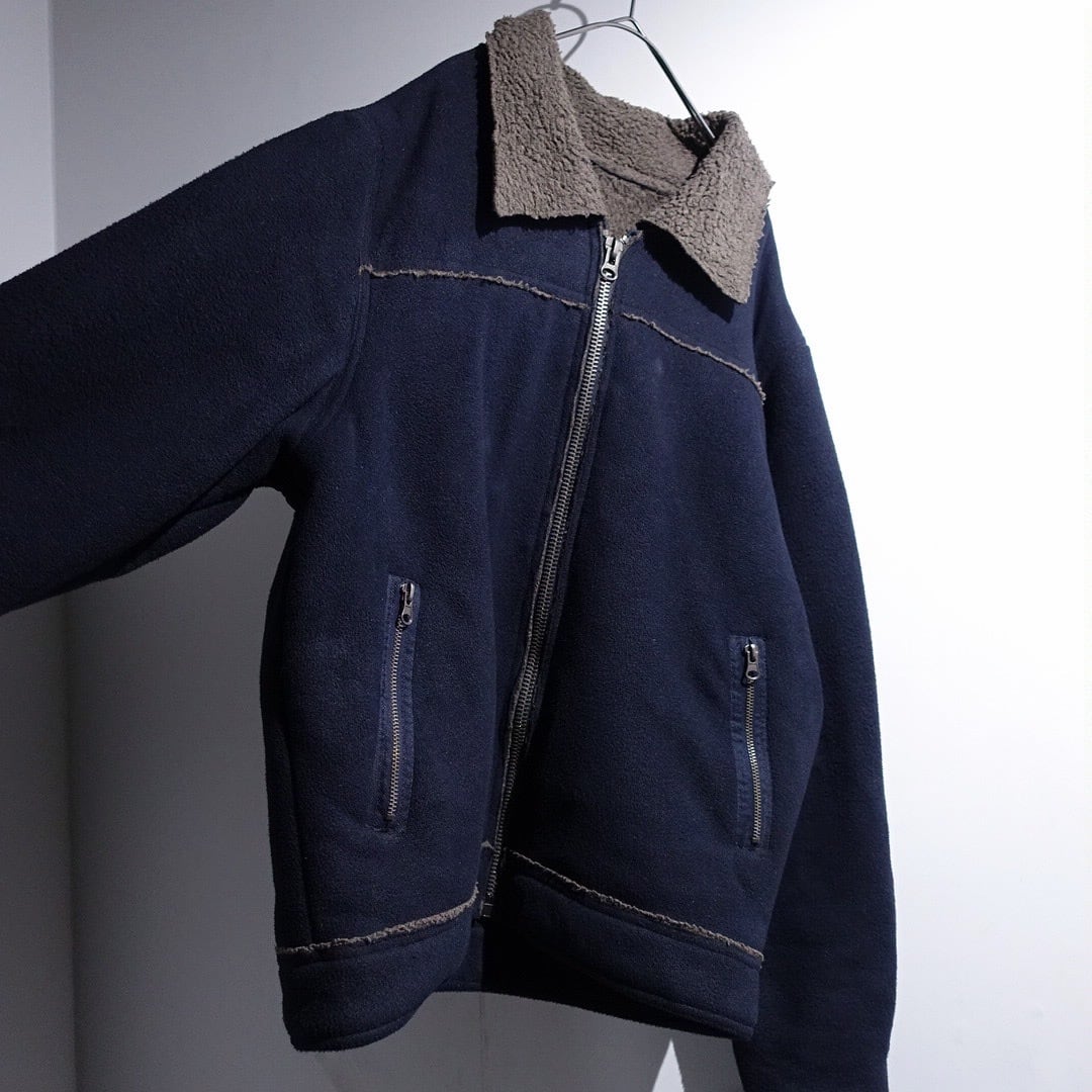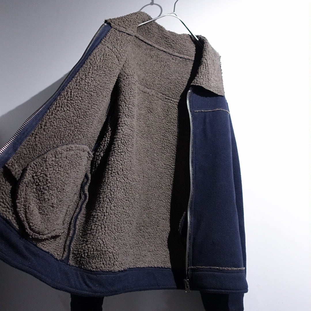Navy Elbow Patch Switching Design Boa Fleece Jacket
