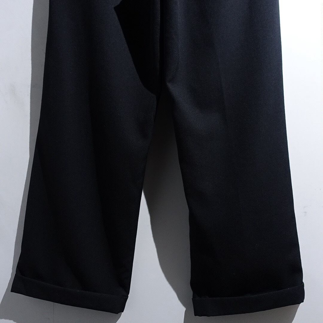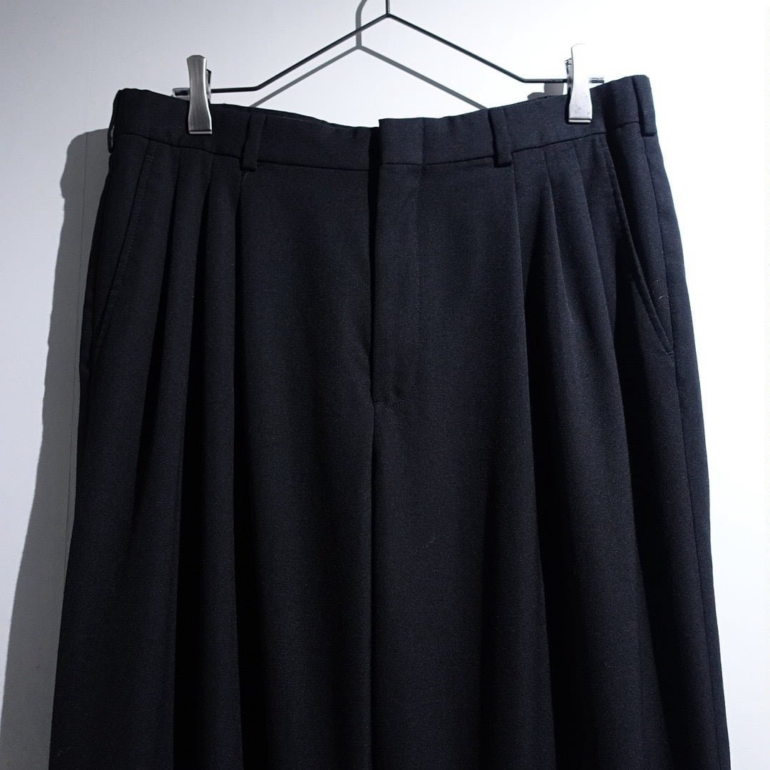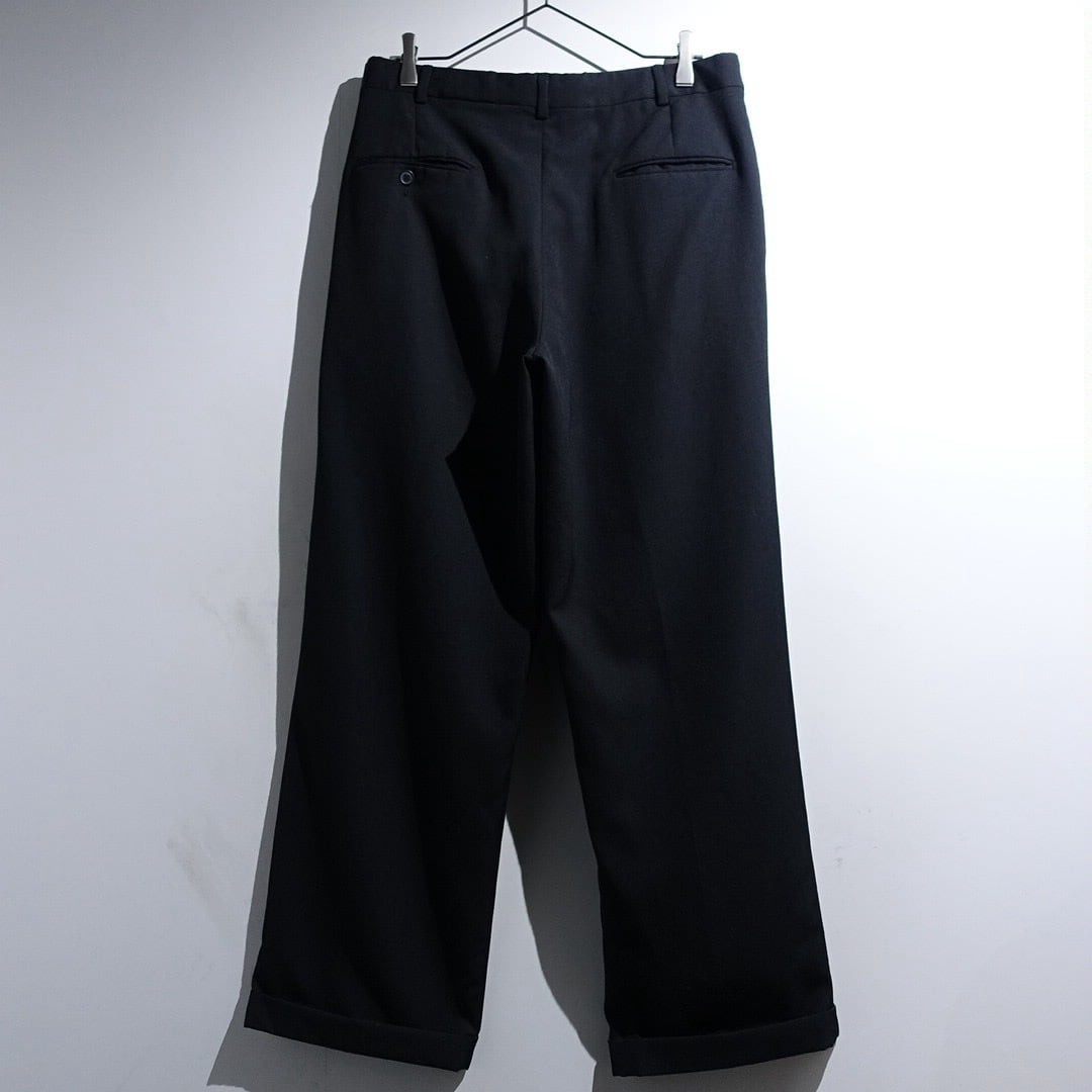 90s "CITY STREETS" Black Wool 3-Tuck Wide Straight Slacks