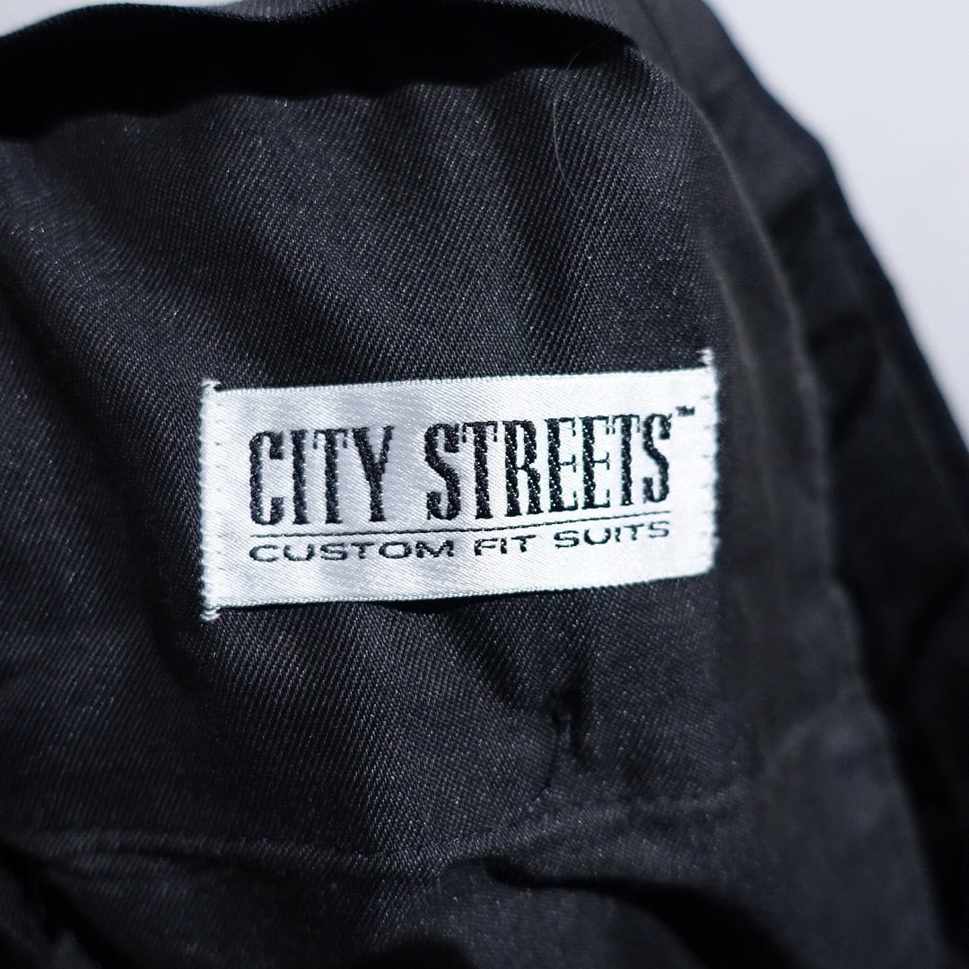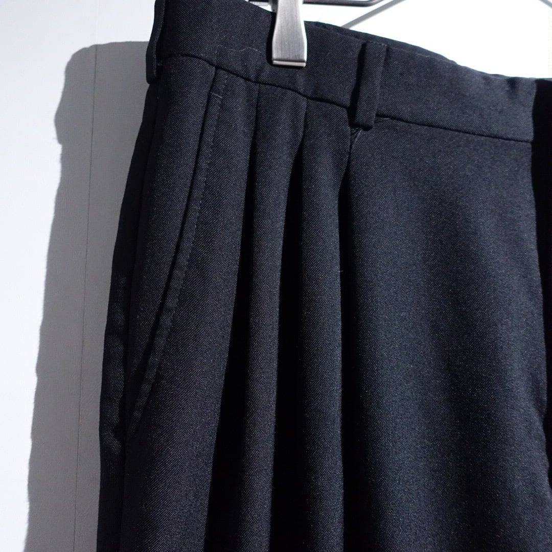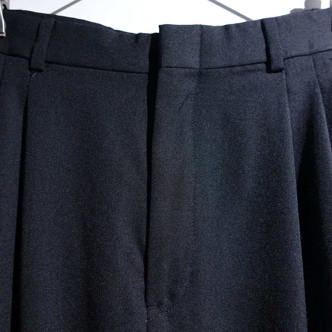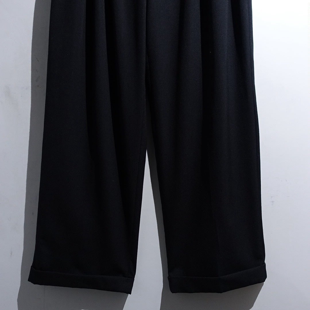 90s "CITY STREETS" Black Wool 3-Tuck Wide Straight Slacks