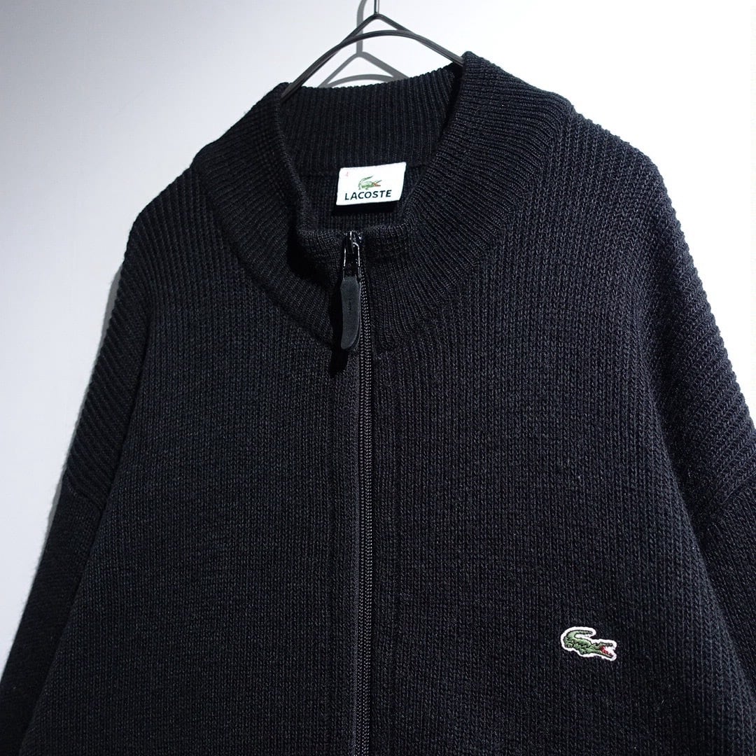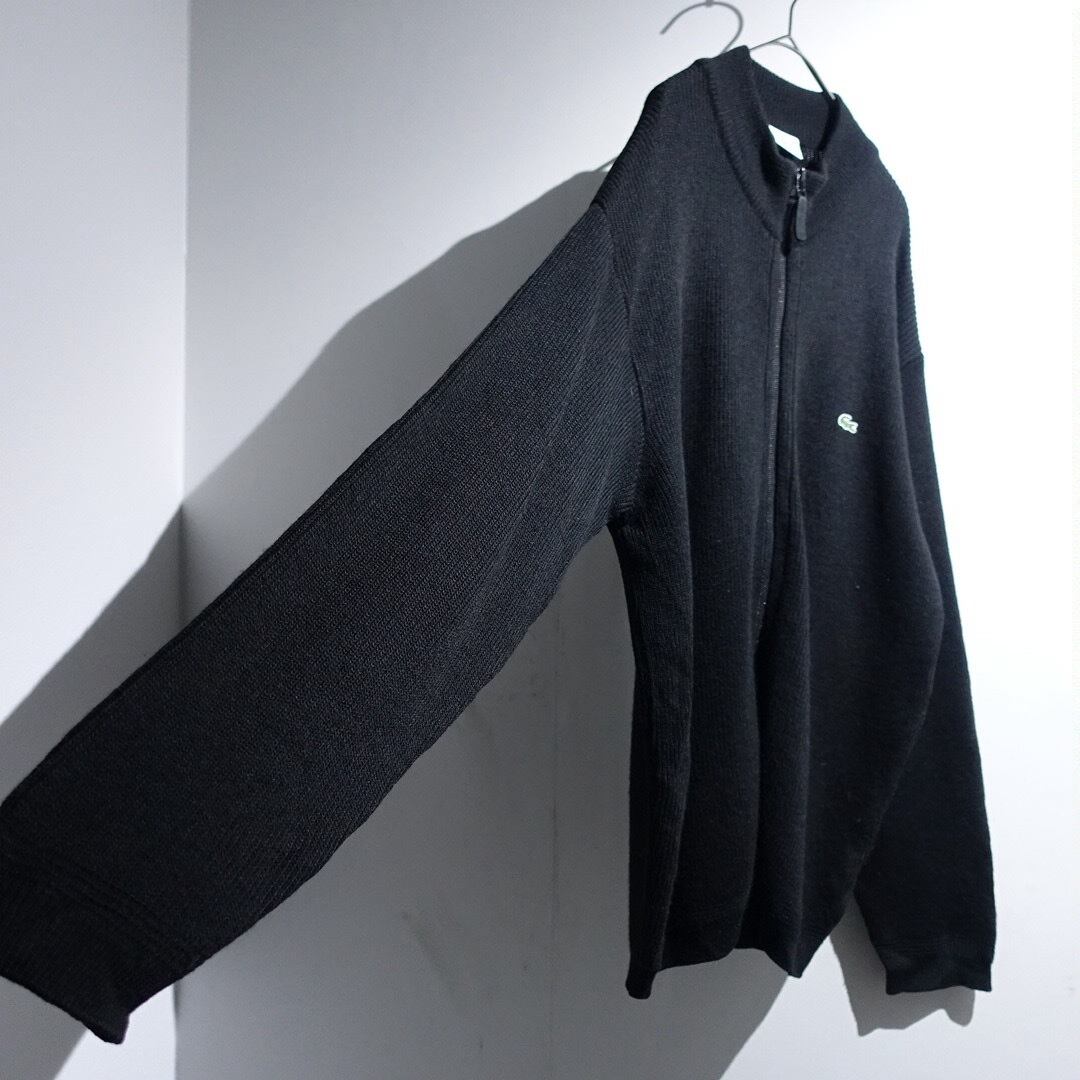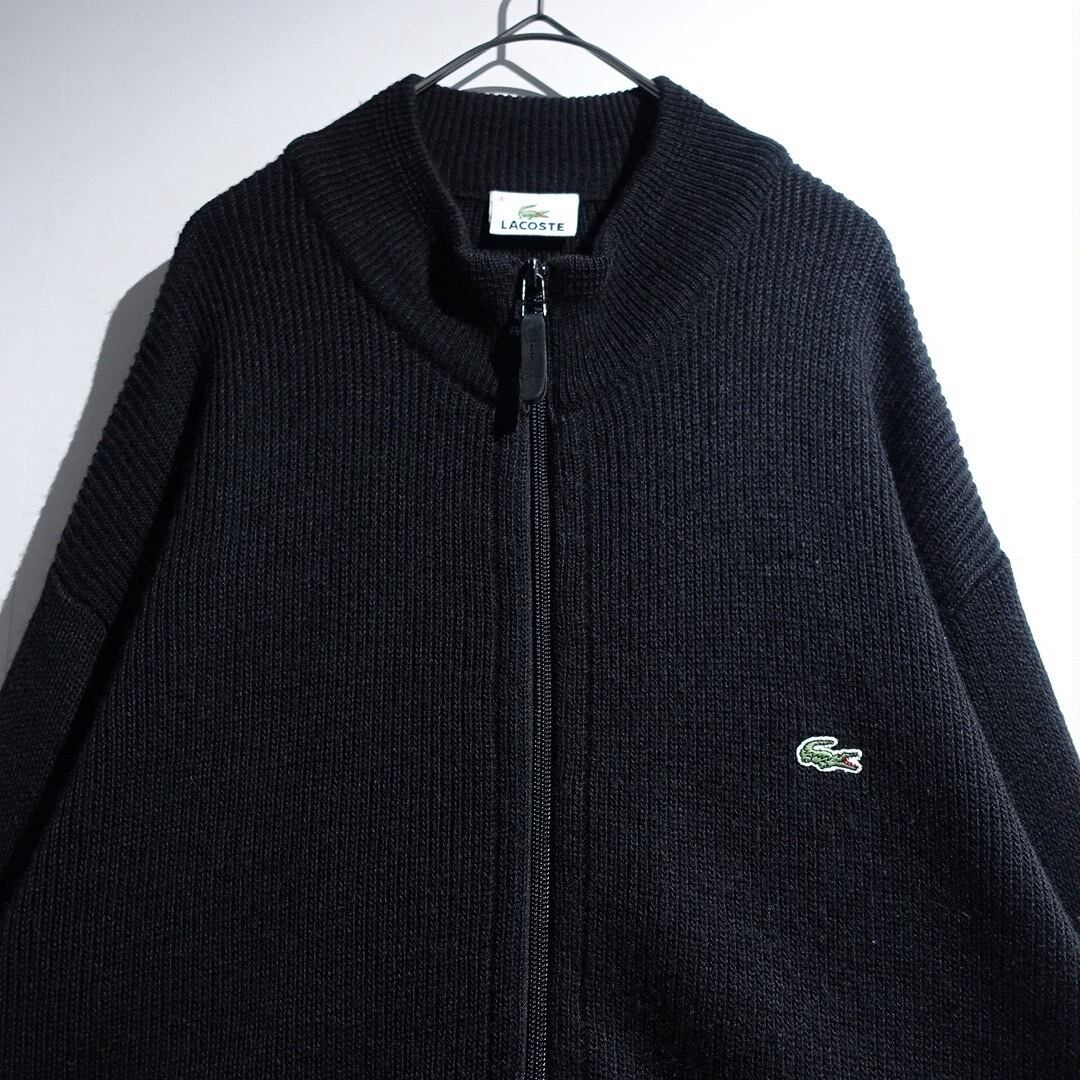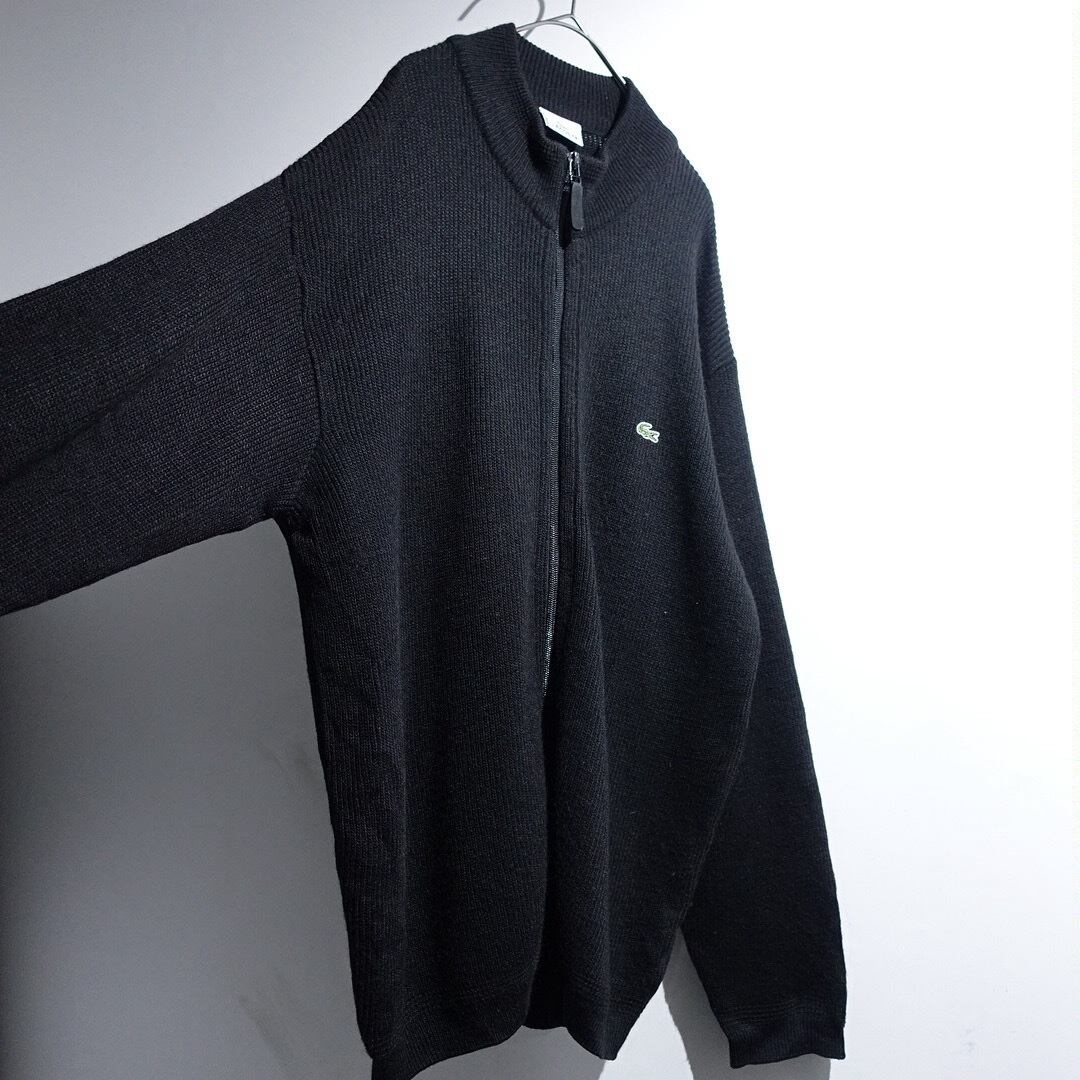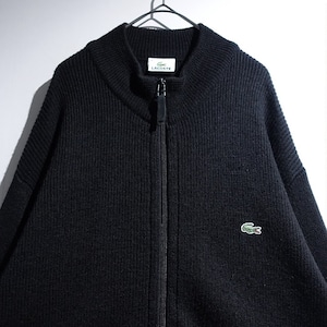 "LACOSTE" Black Logo Design Double-Zip Driver's Knit