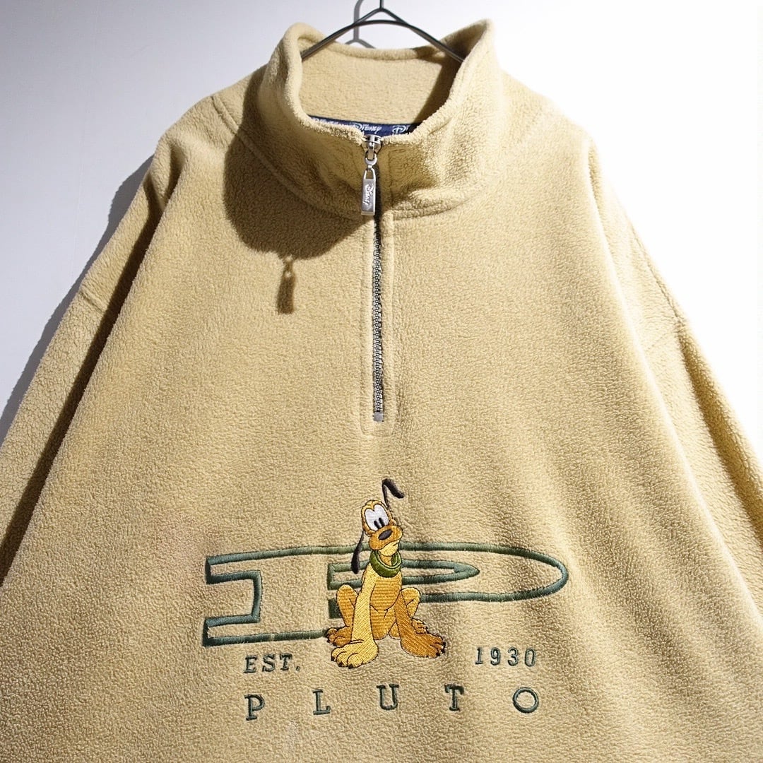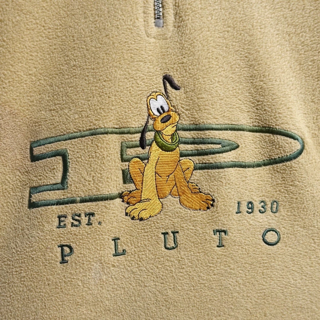 90s "Disney" Yellow Goofy Embroidery Design Half-Zip Fleece