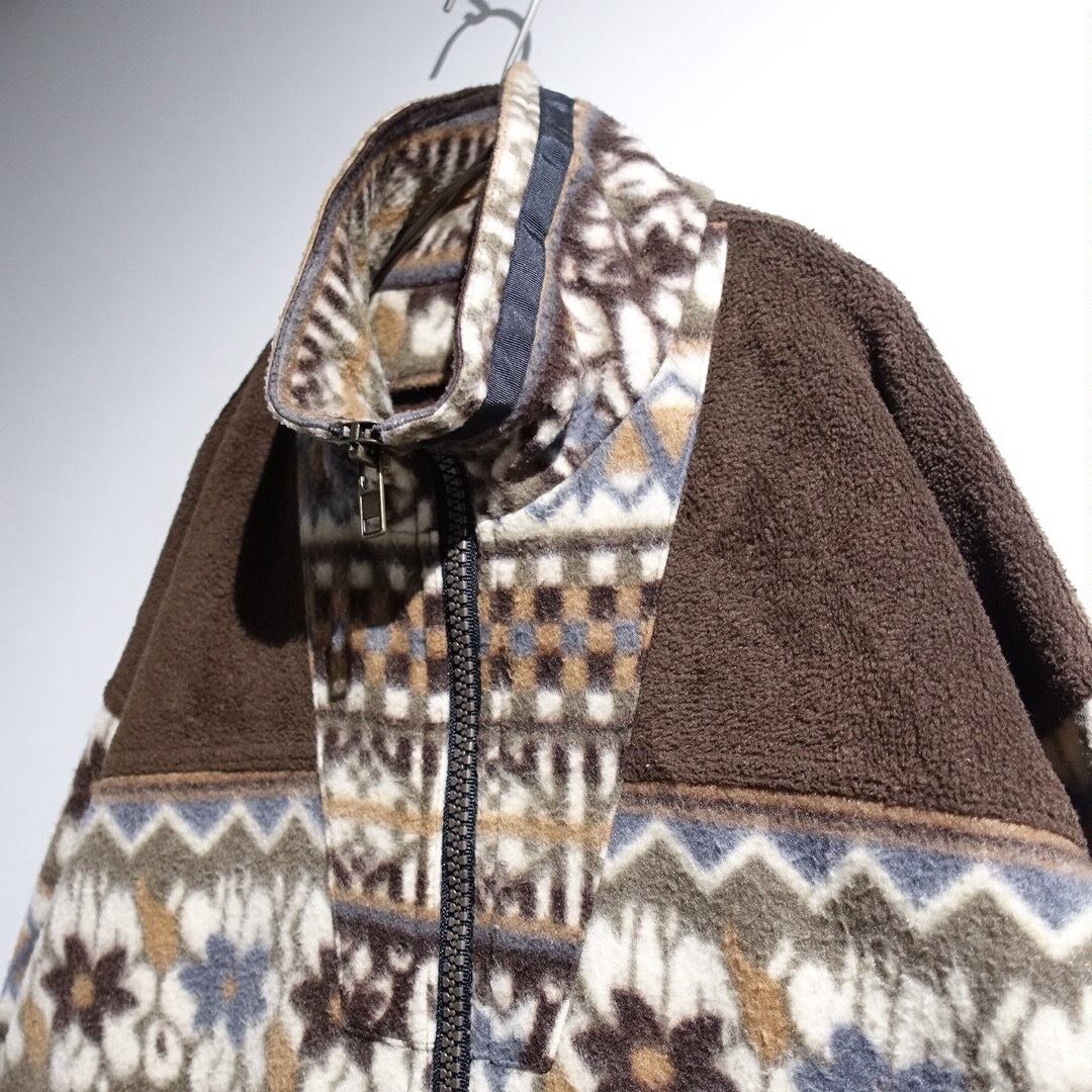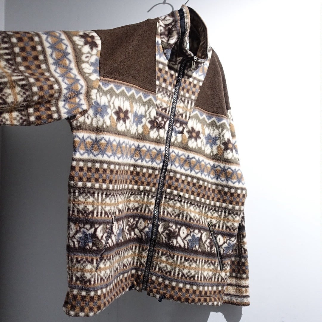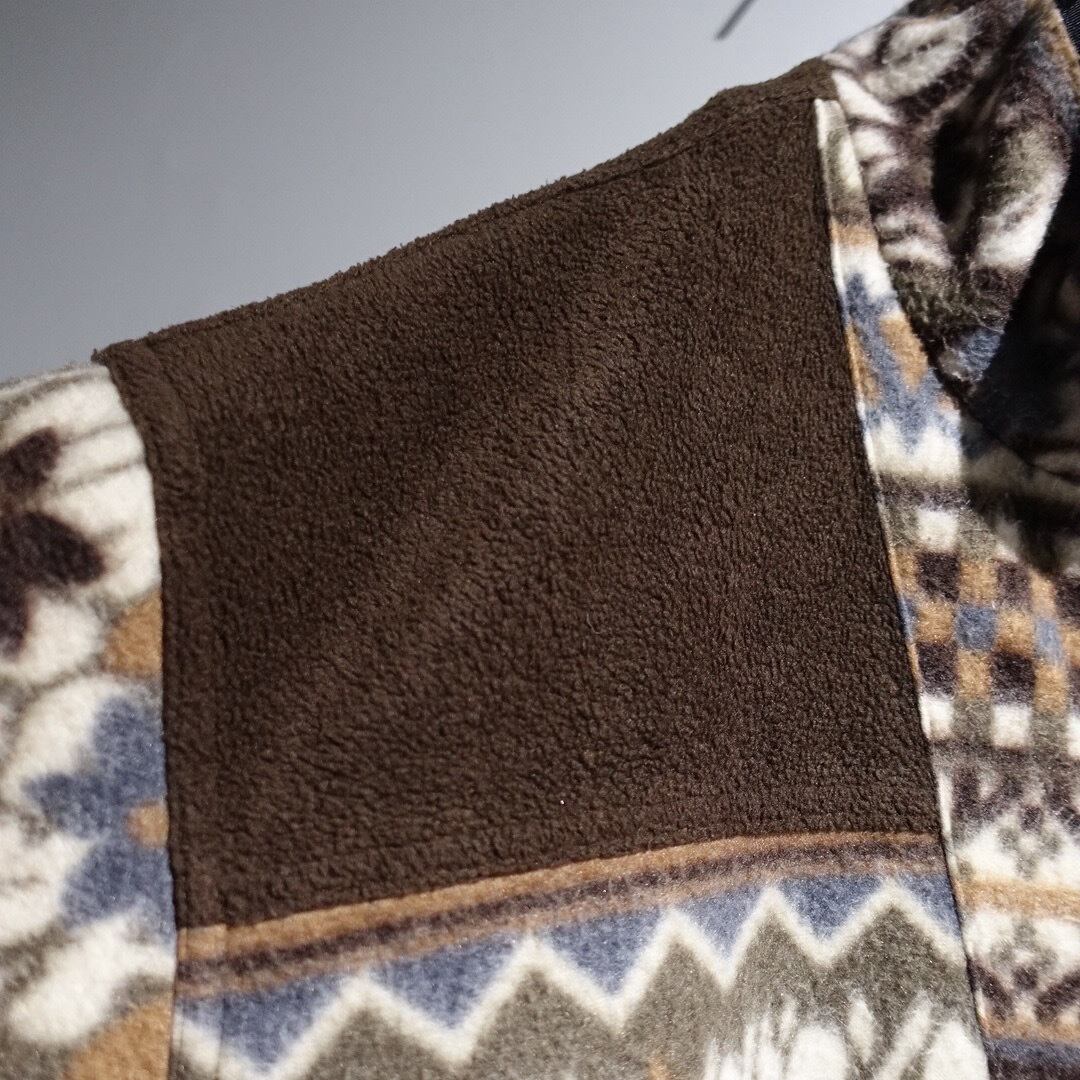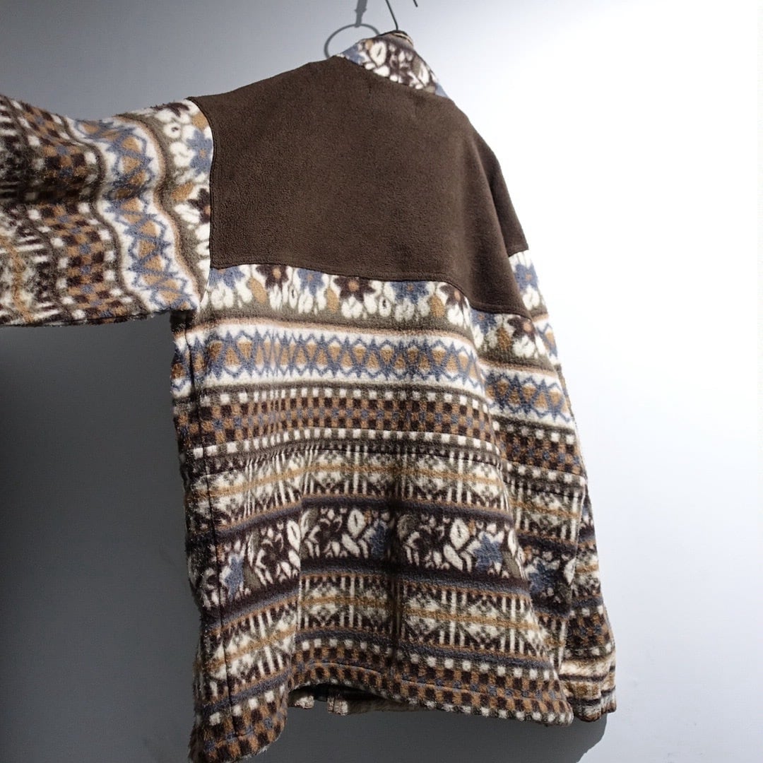 90s Multicolor Flower & Geometric Pattern Switching Design Fleece Jacket