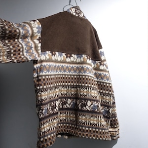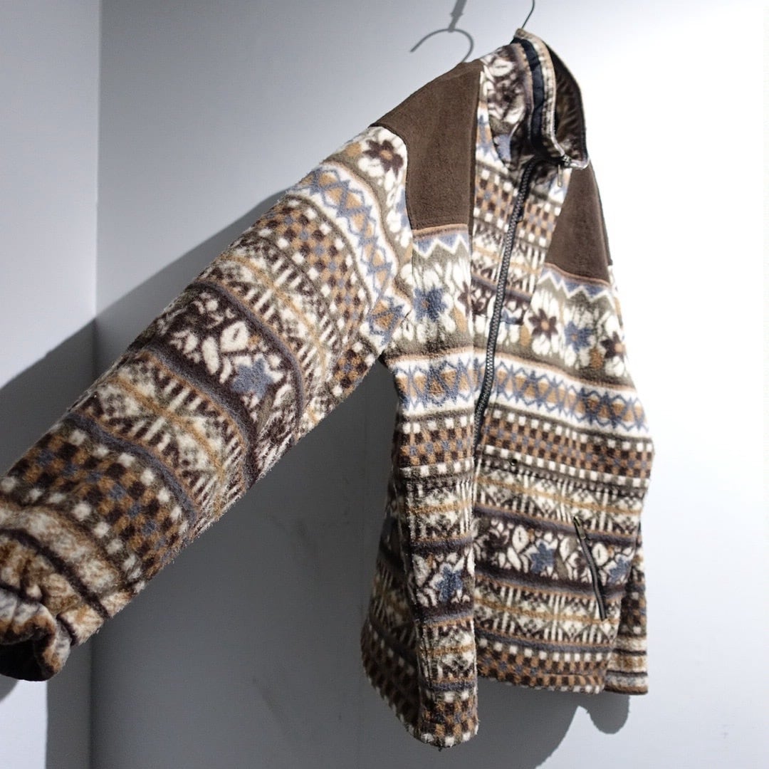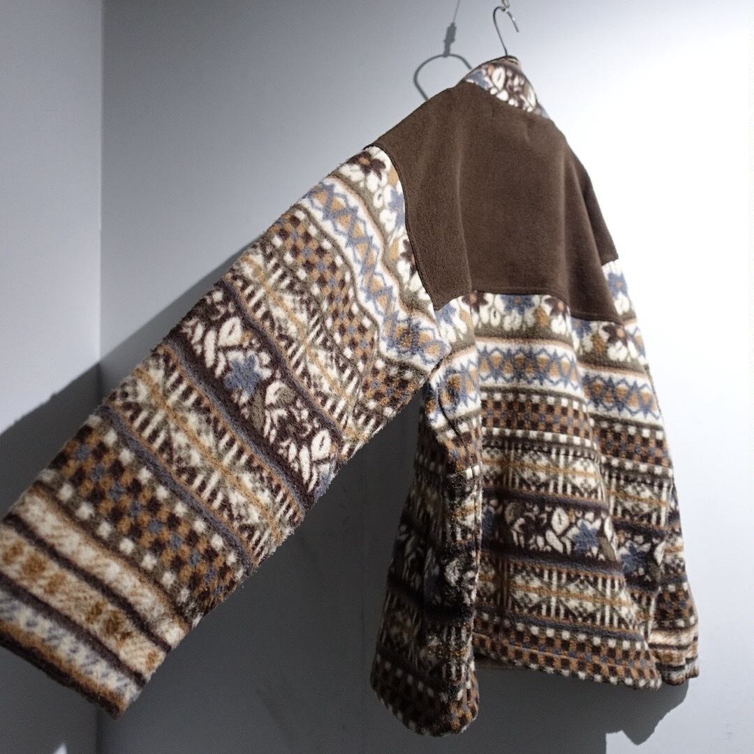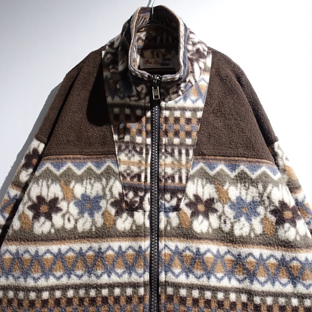 90s Multicolor Flower & Geometric Pattern Switching Design Fleece Jacket