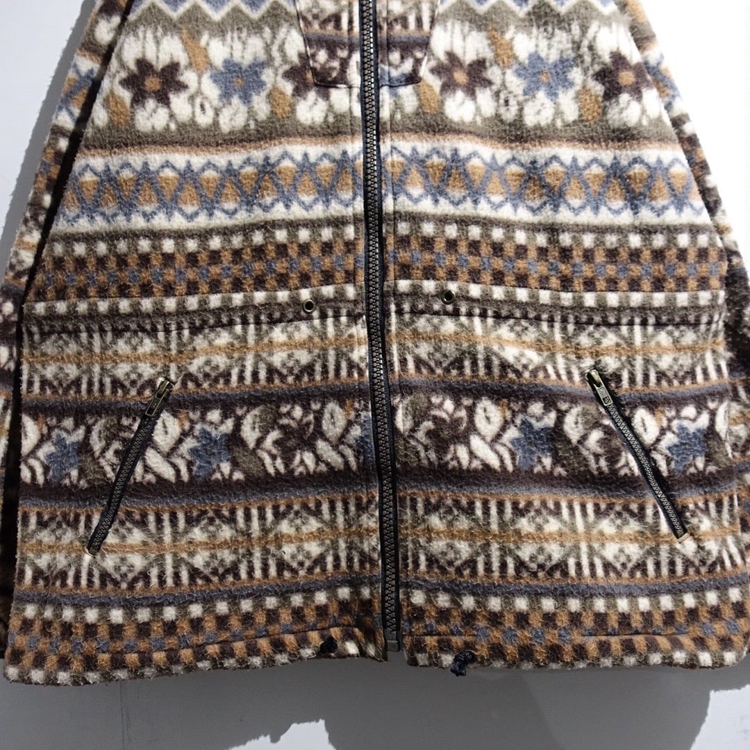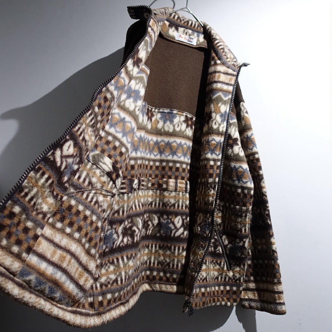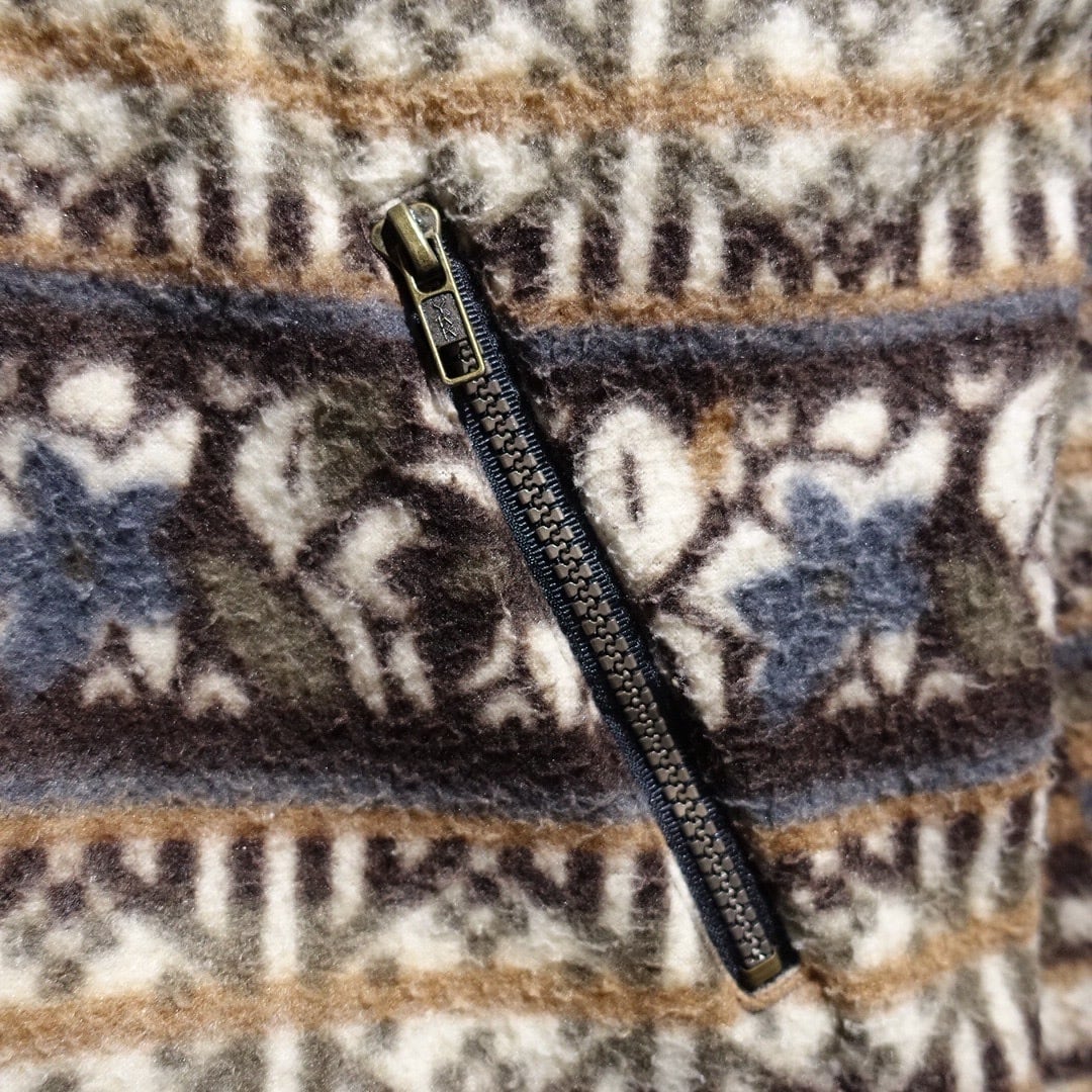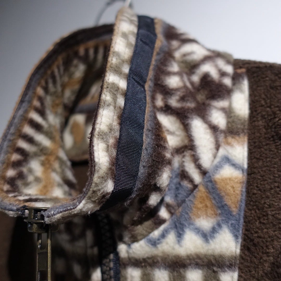 90s Multicolor Flower & Geometric Pattern Switching Design Fleece Jacket