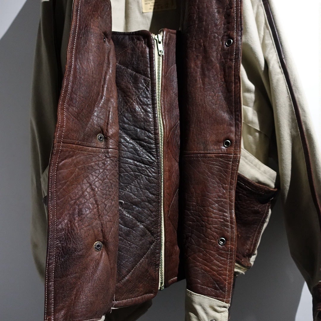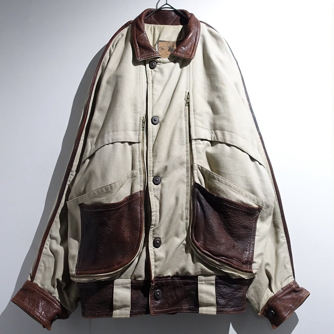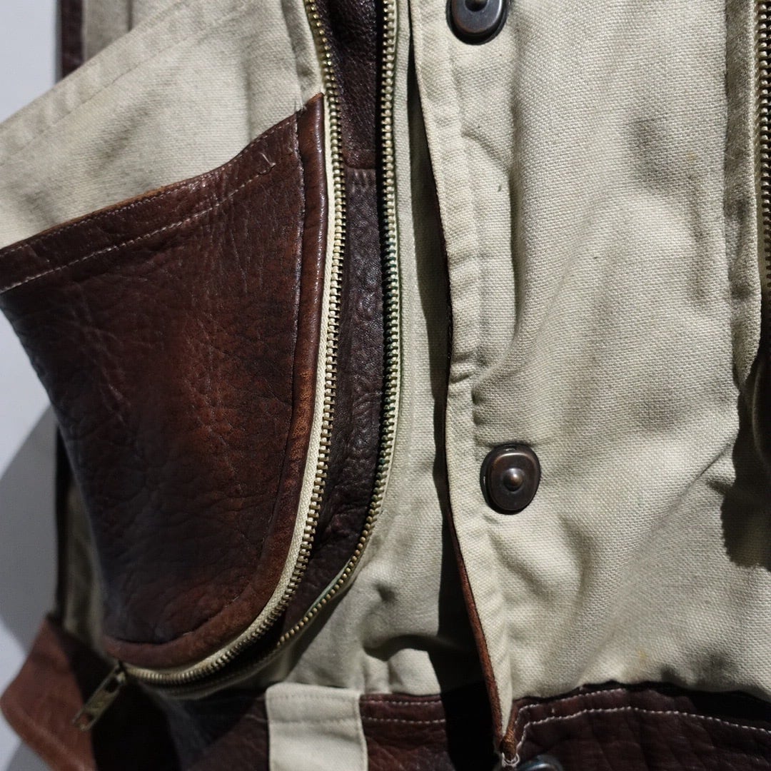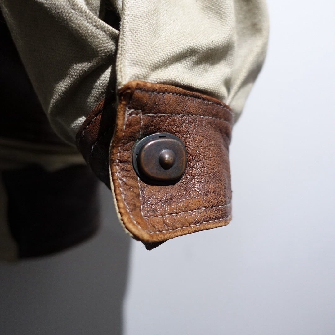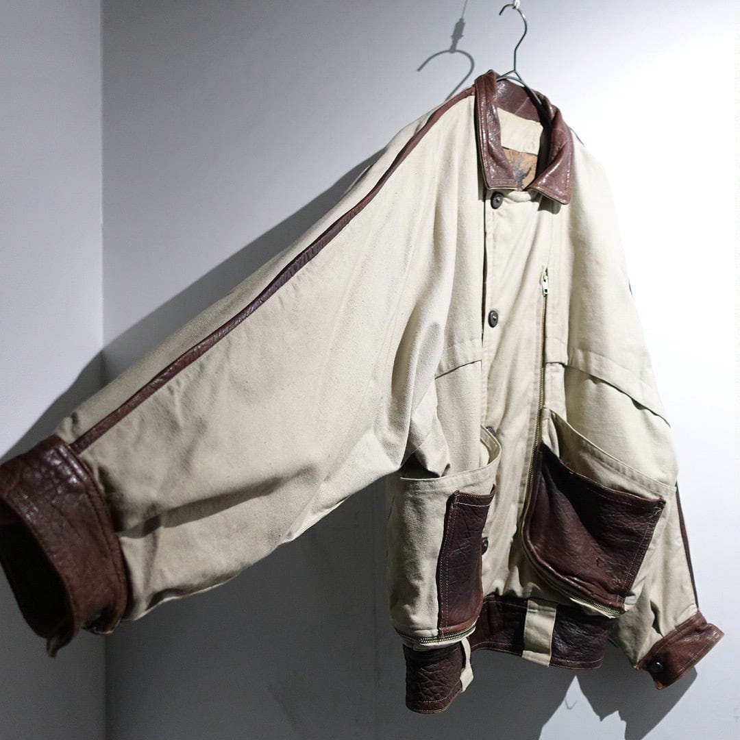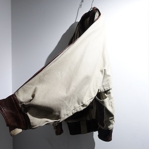 EURO Ivory x Brown Leather Switching Multi-Pocket Design Blouson