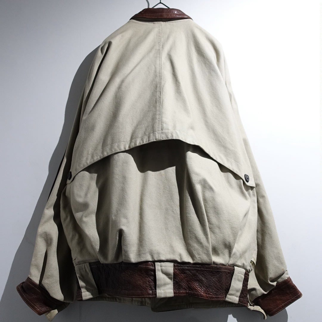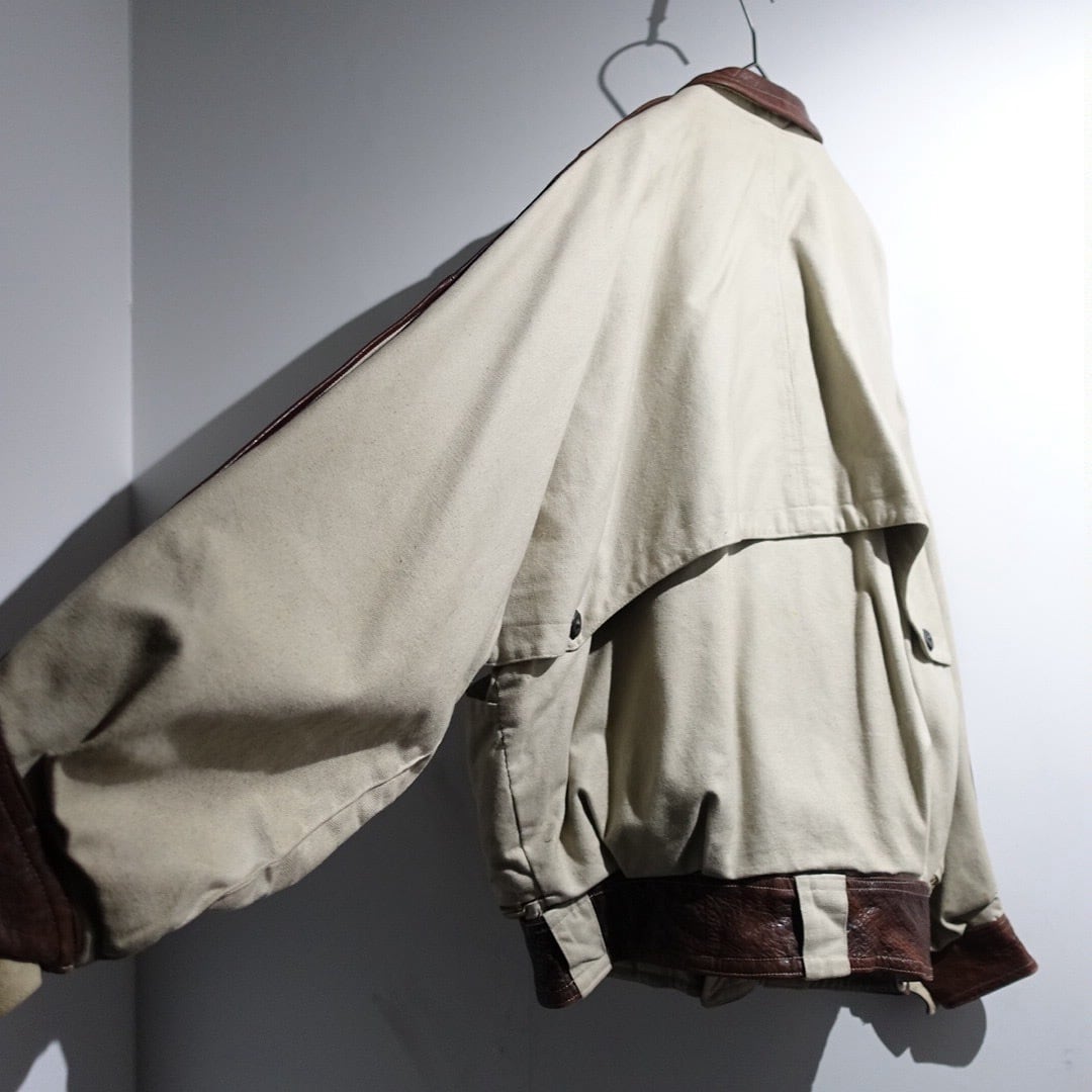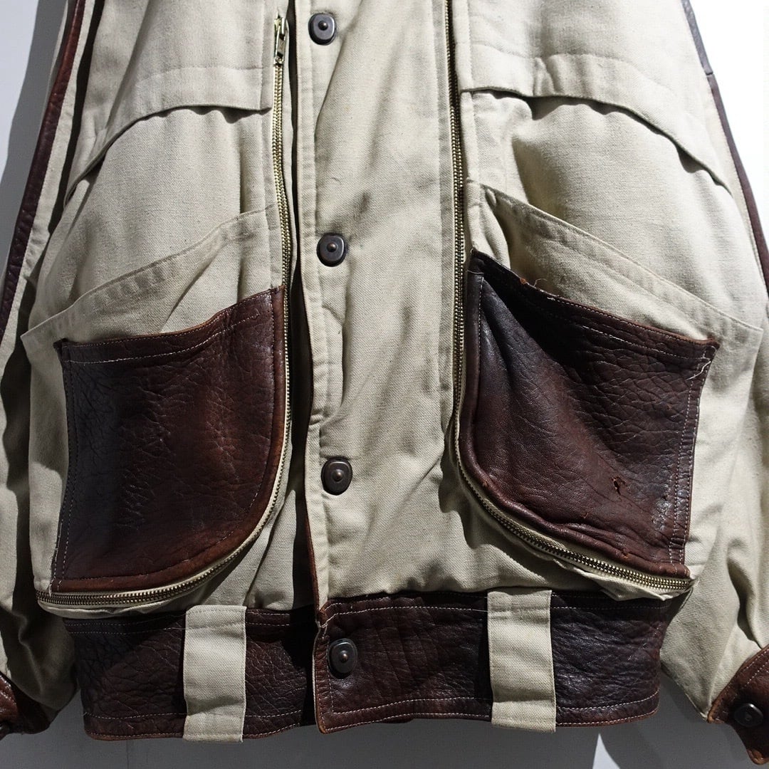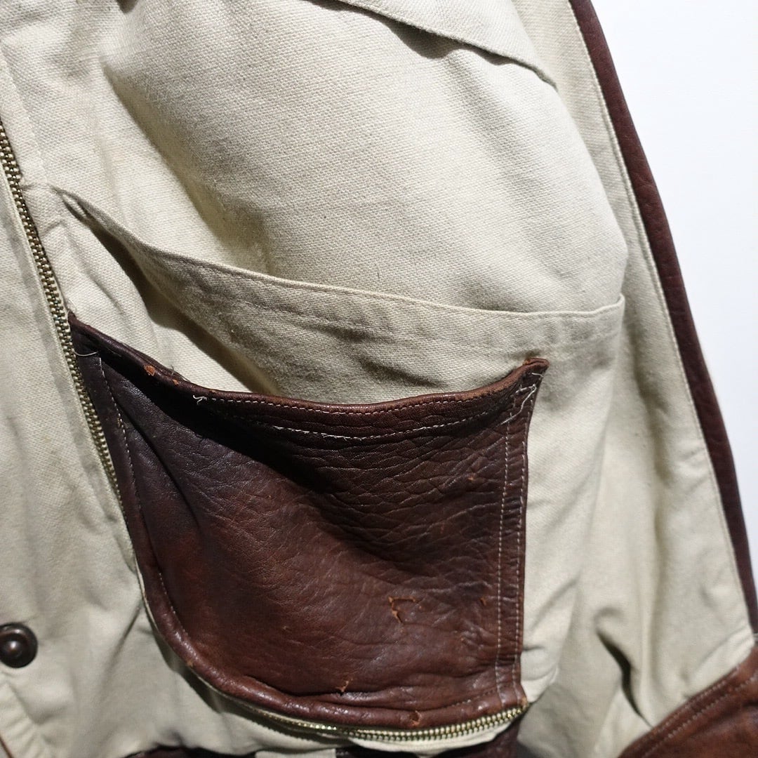 EURO Ivory x Brown Leather Switching Multi-Pocket Design Blouson