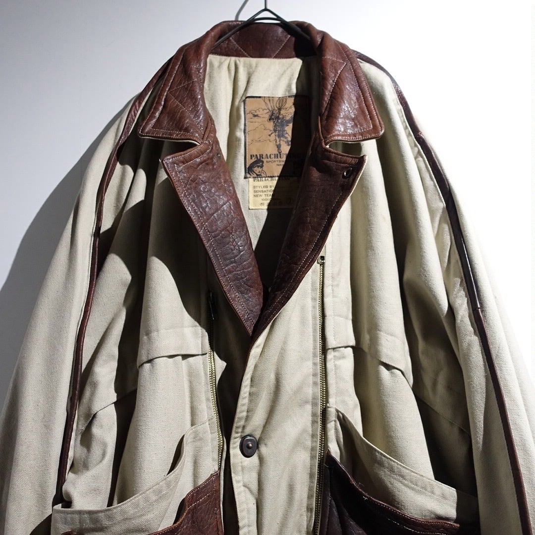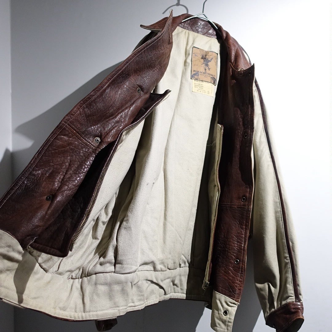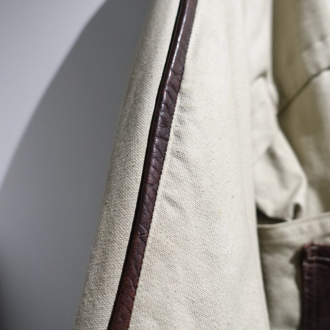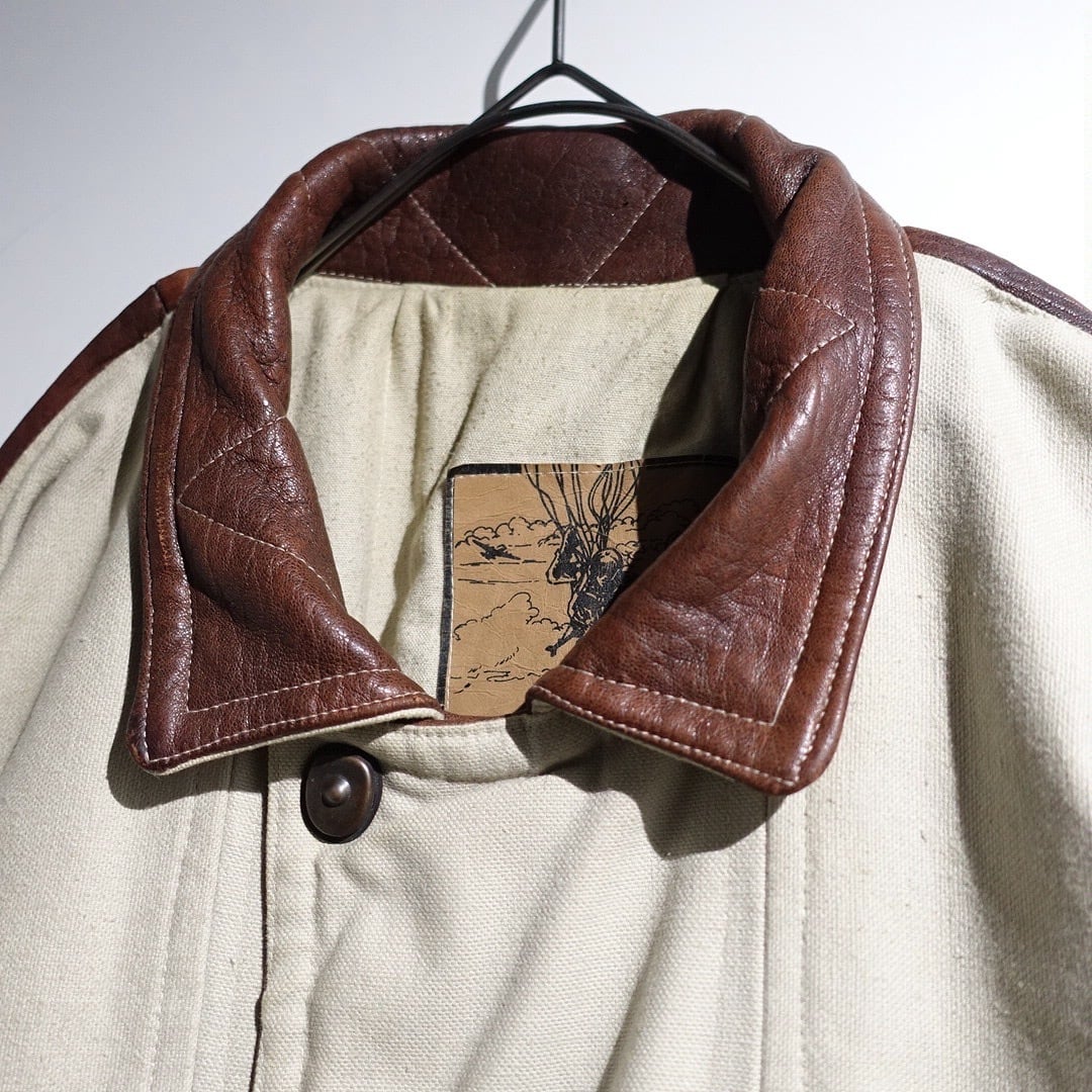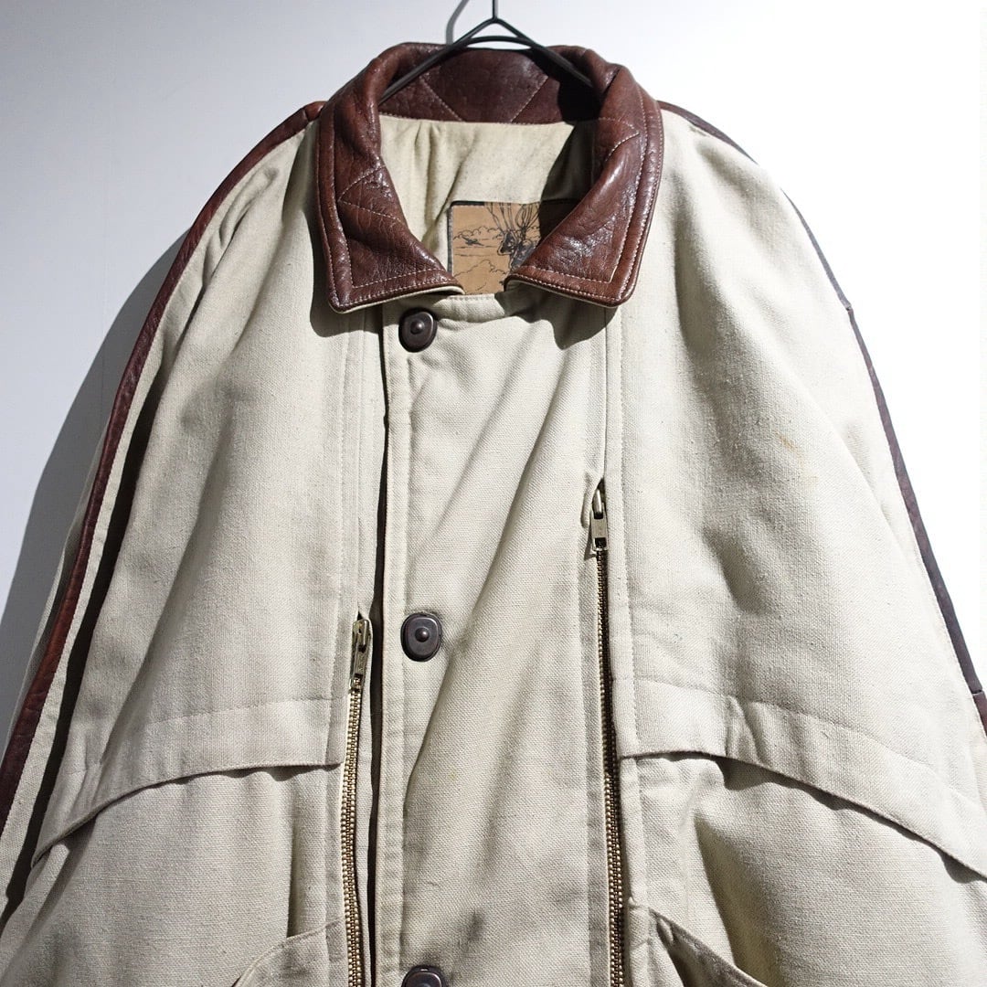 EURO Ivory x Brown Leather Switching Multi-Pocket Design Blouson