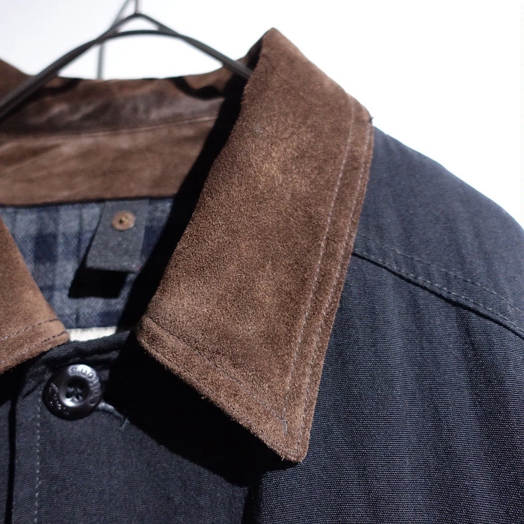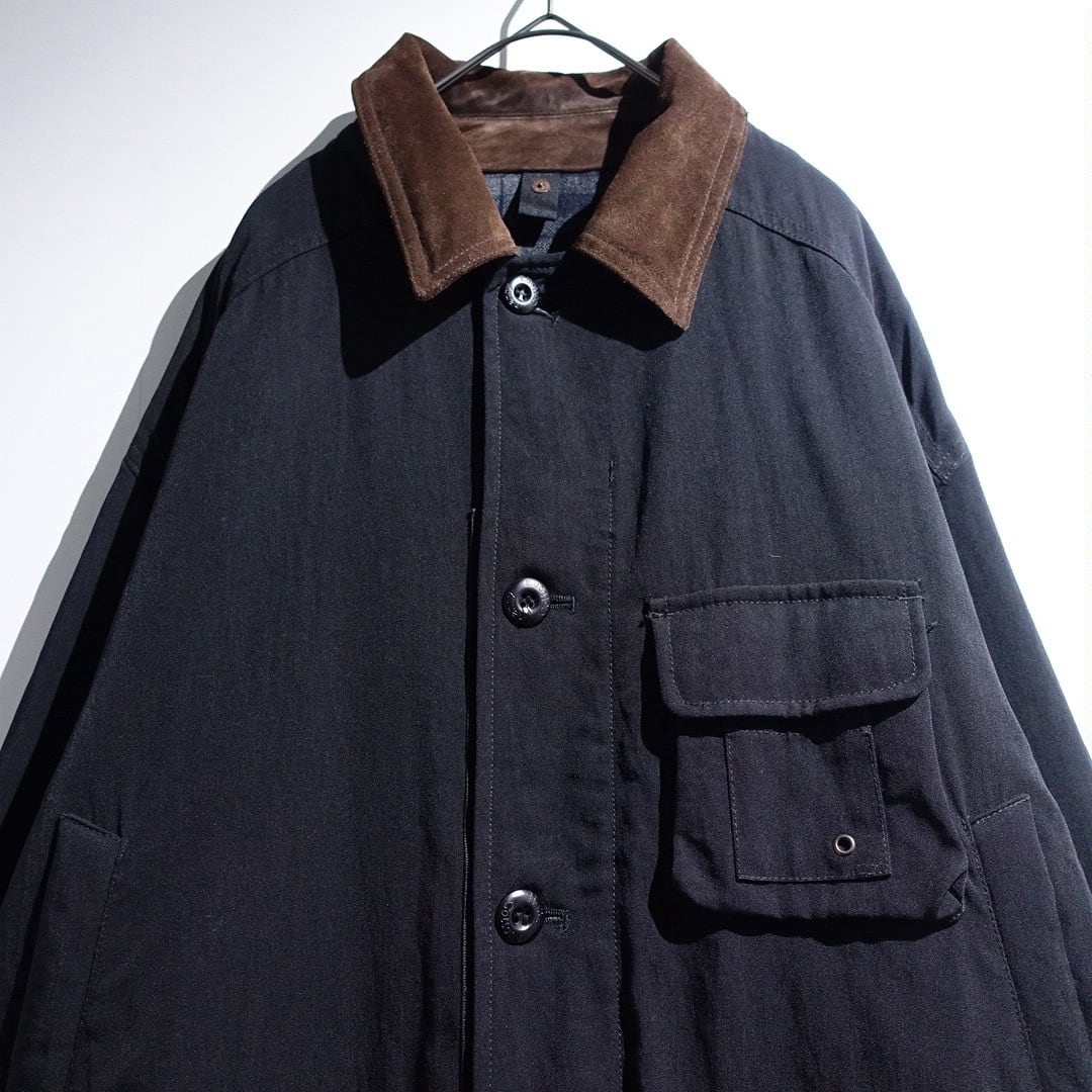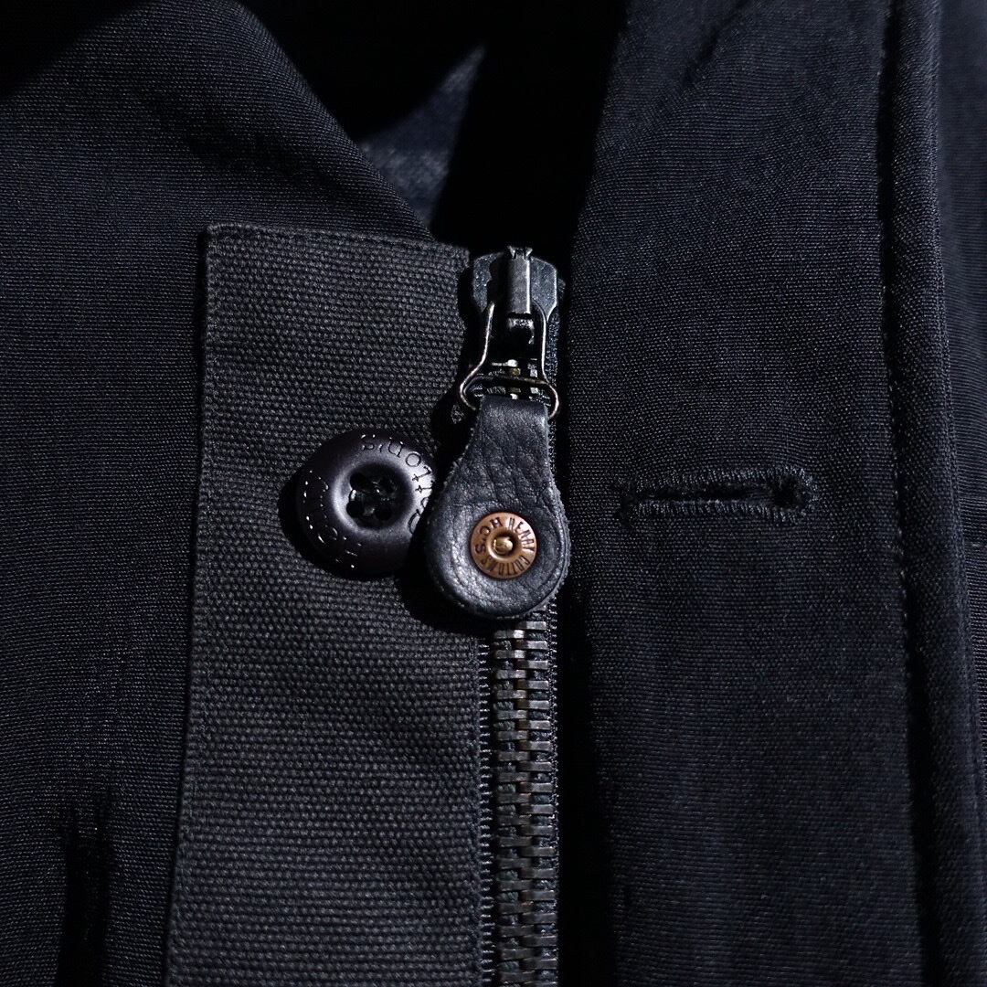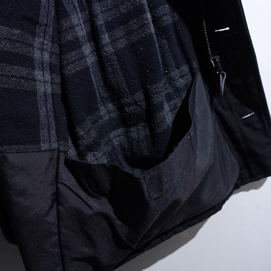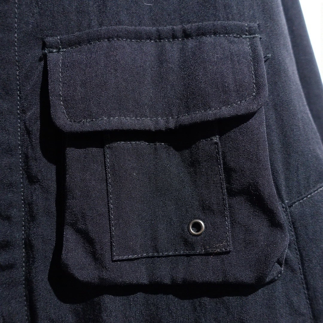 EURO Black Nylon Leather Collar Switching Multi-Pocket Design Jacket
