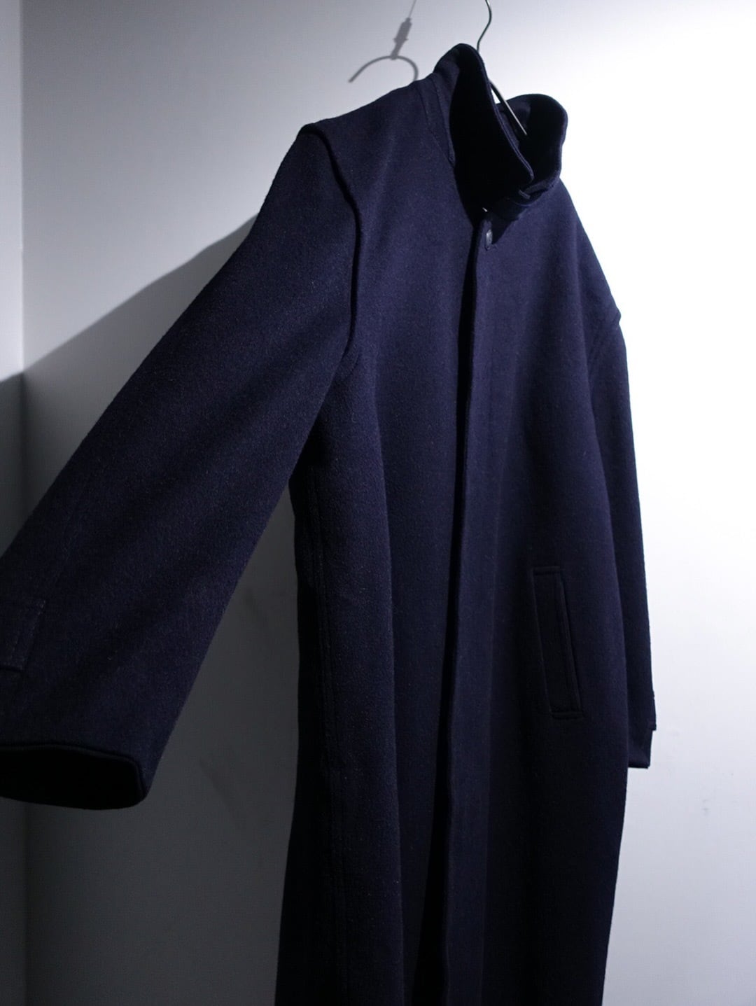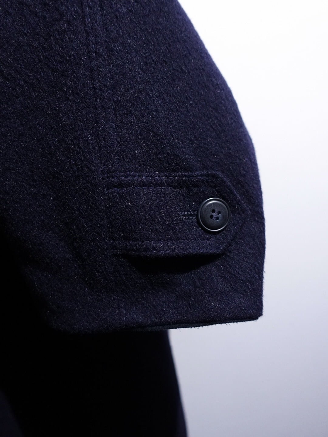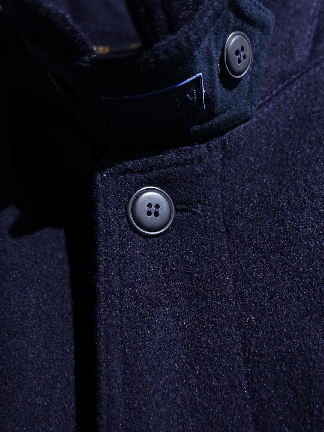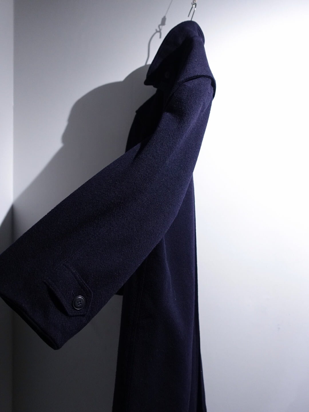 EURO Navy Alpaca & Wool Long Loden Coat with Chin Strap