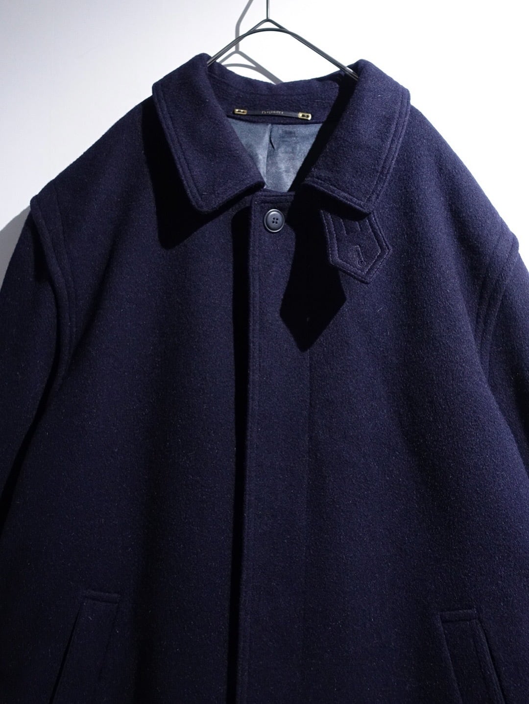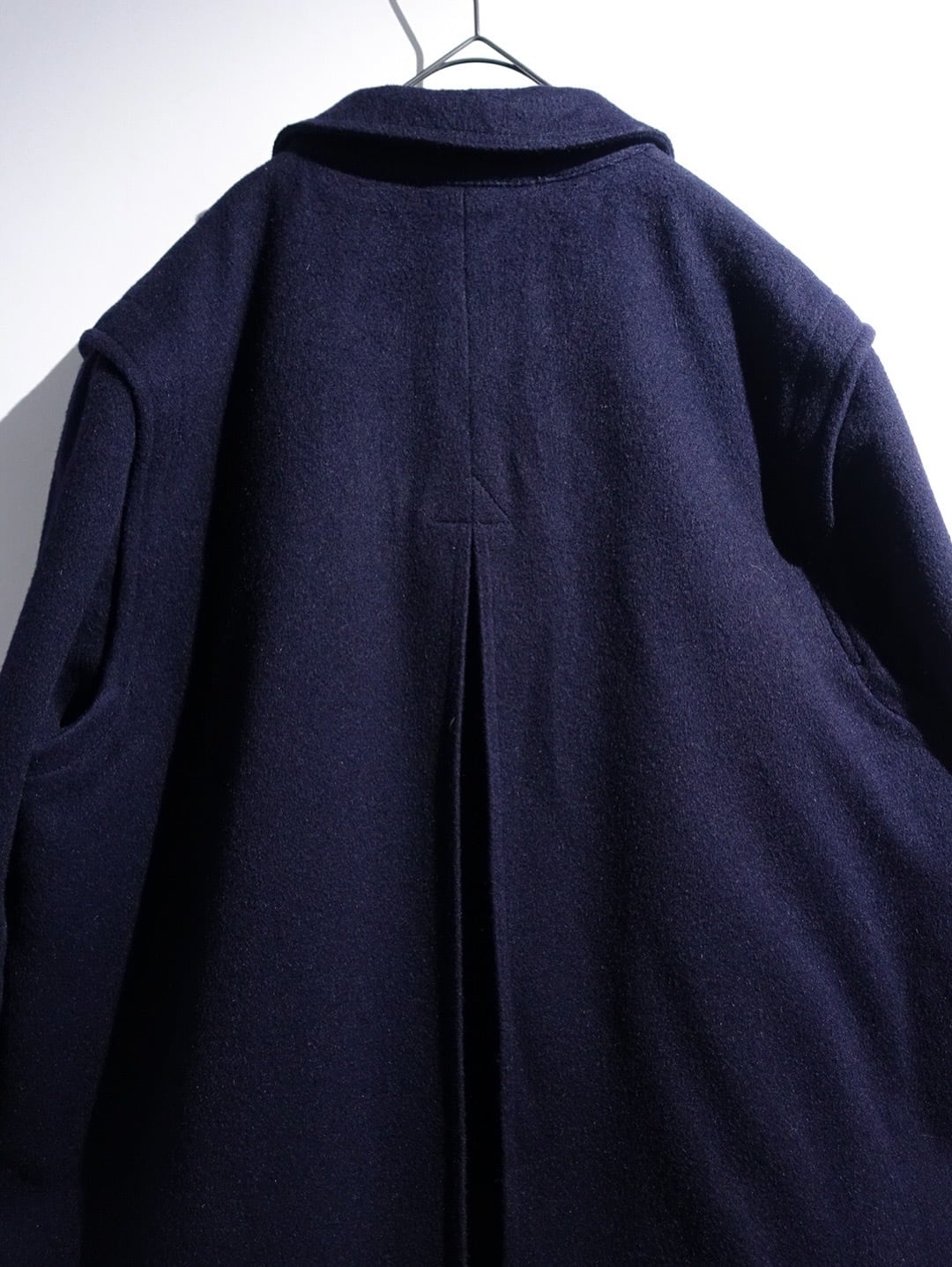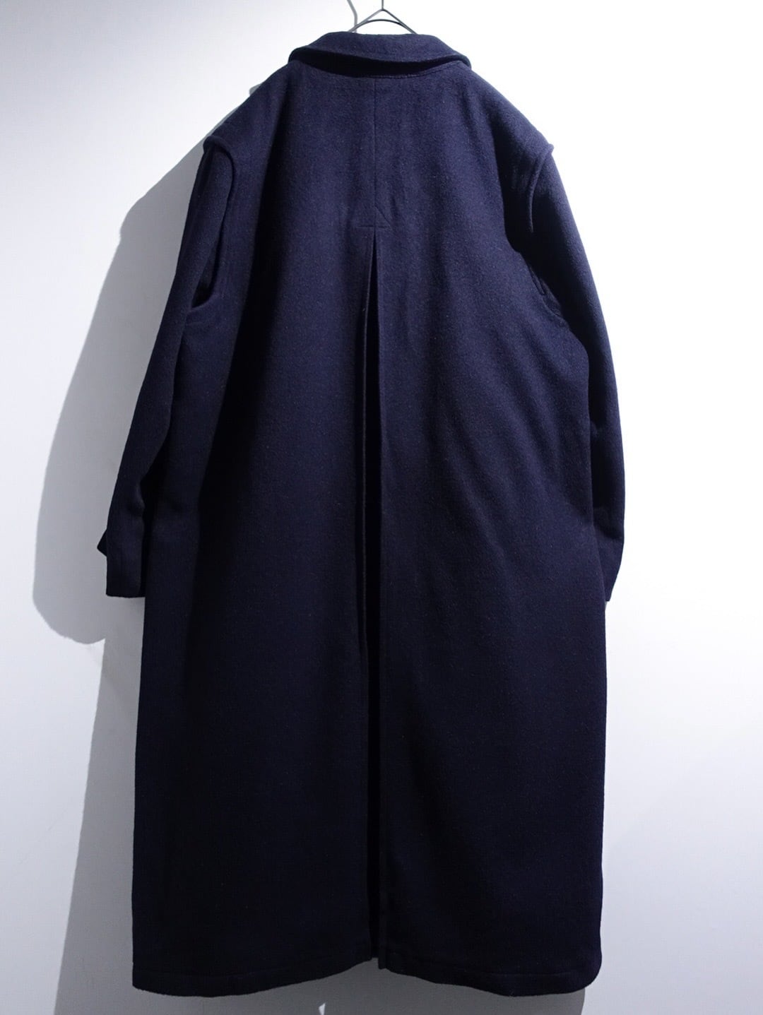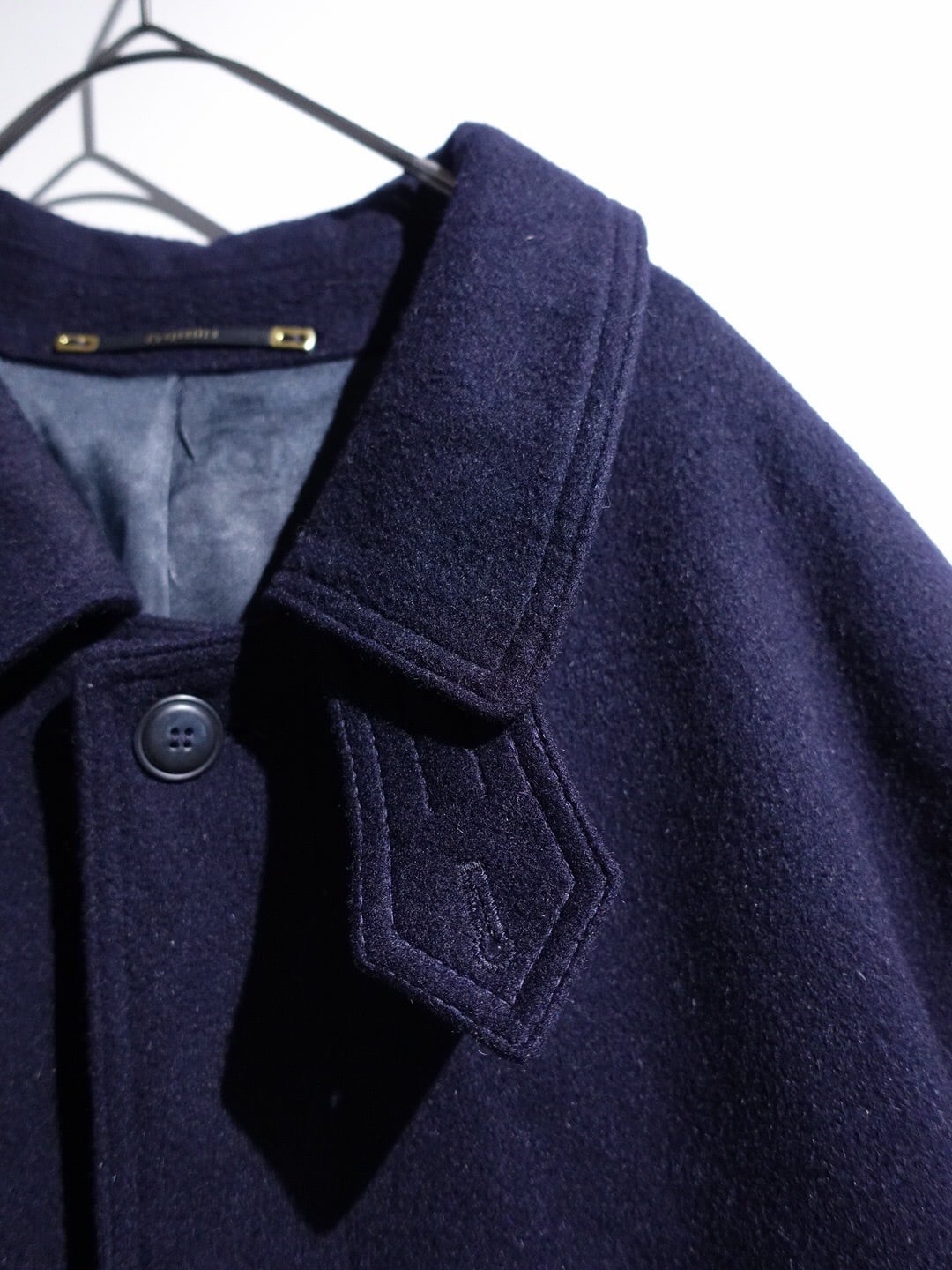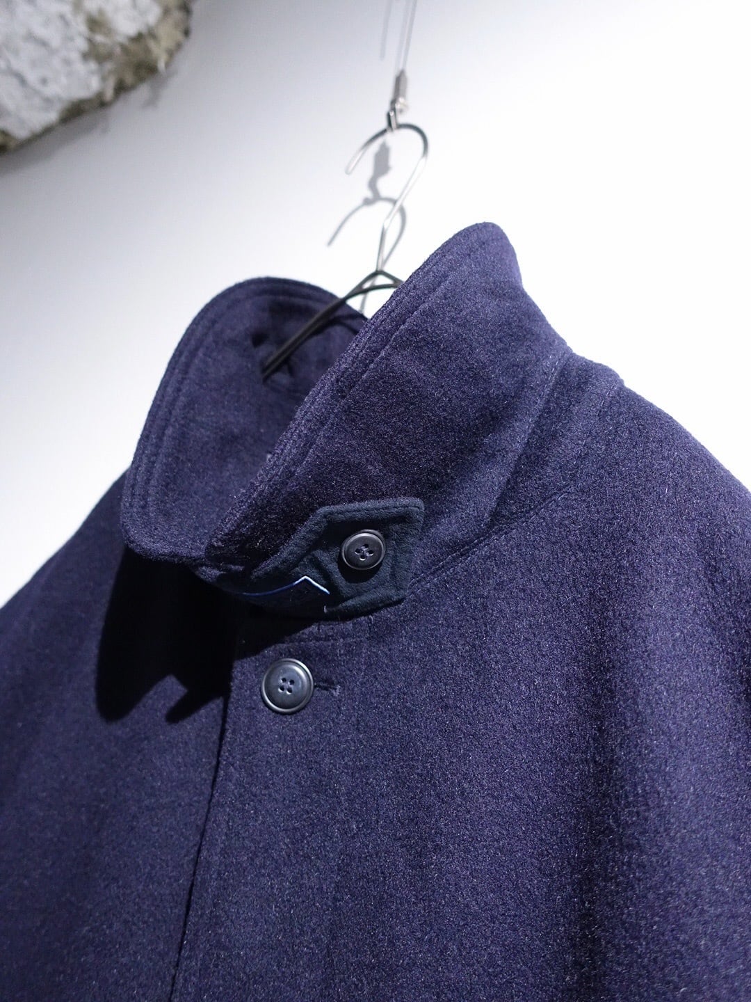EURO Navy Alpaca & Wool Long Loden Coat with Chin Strap