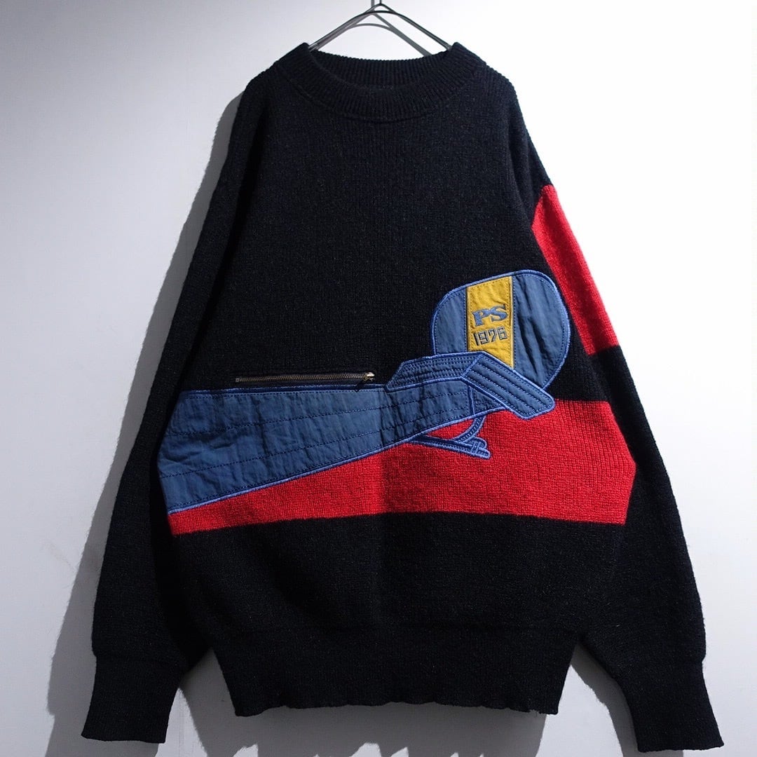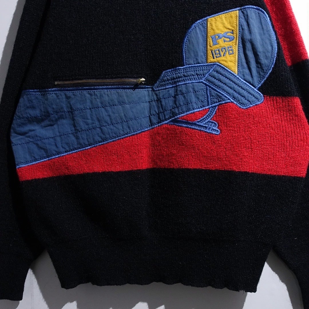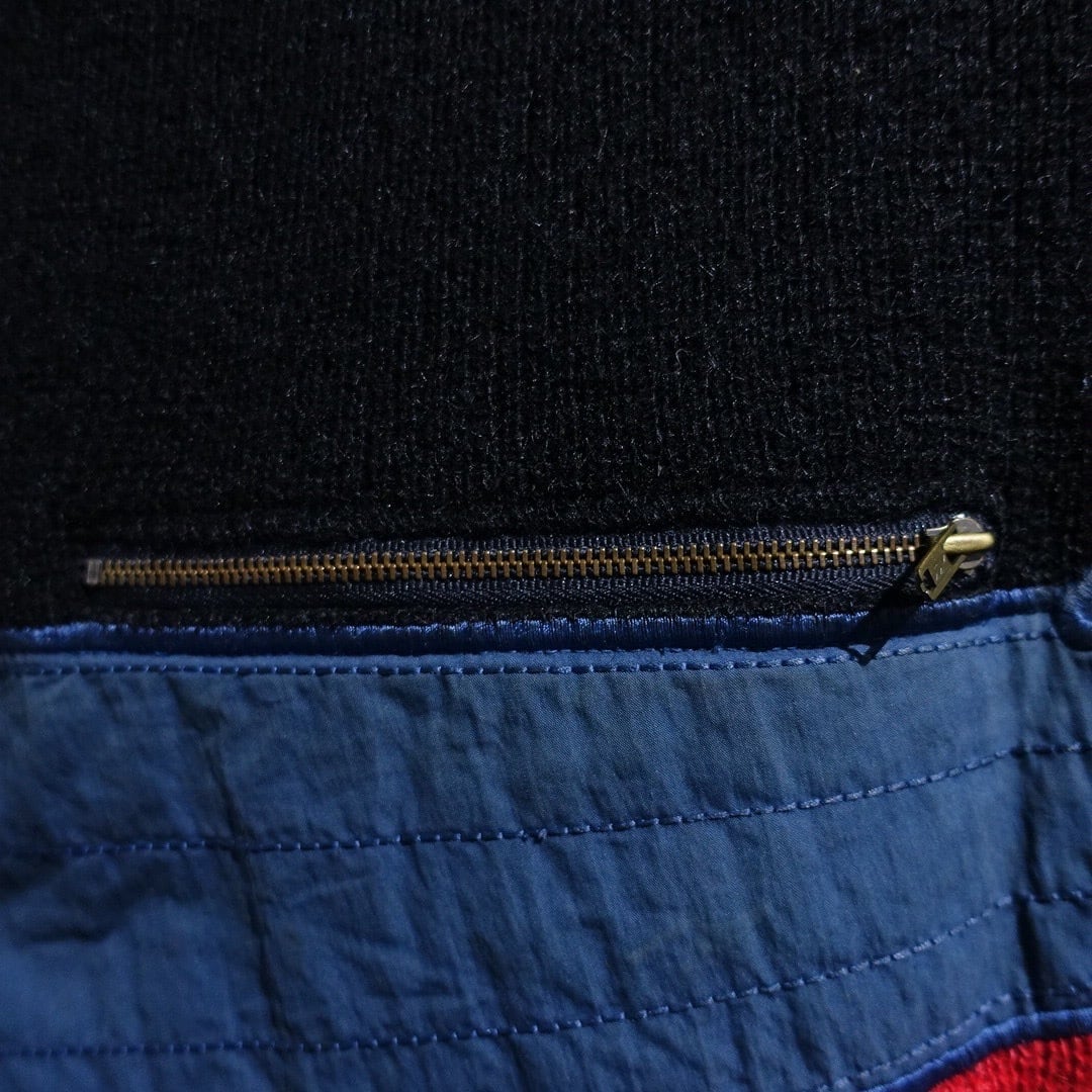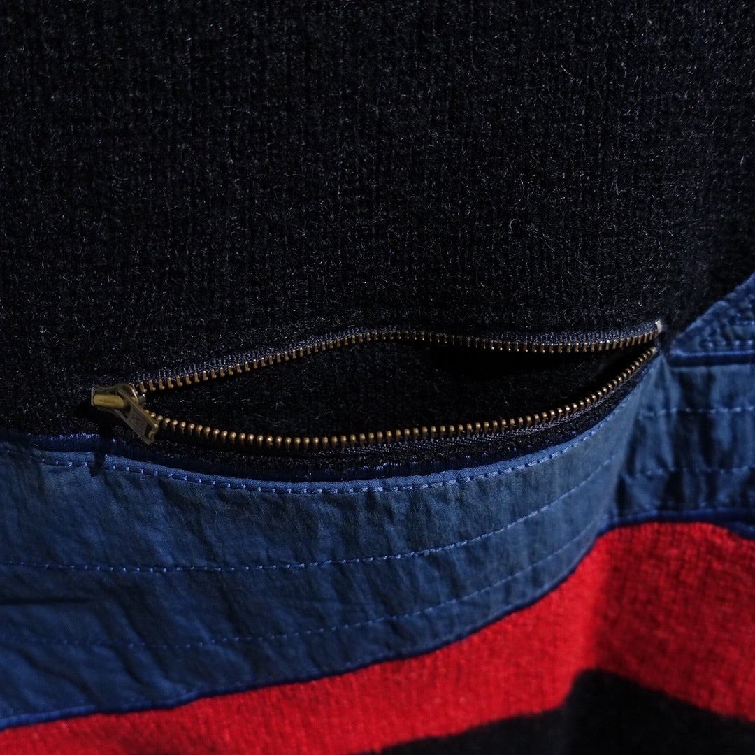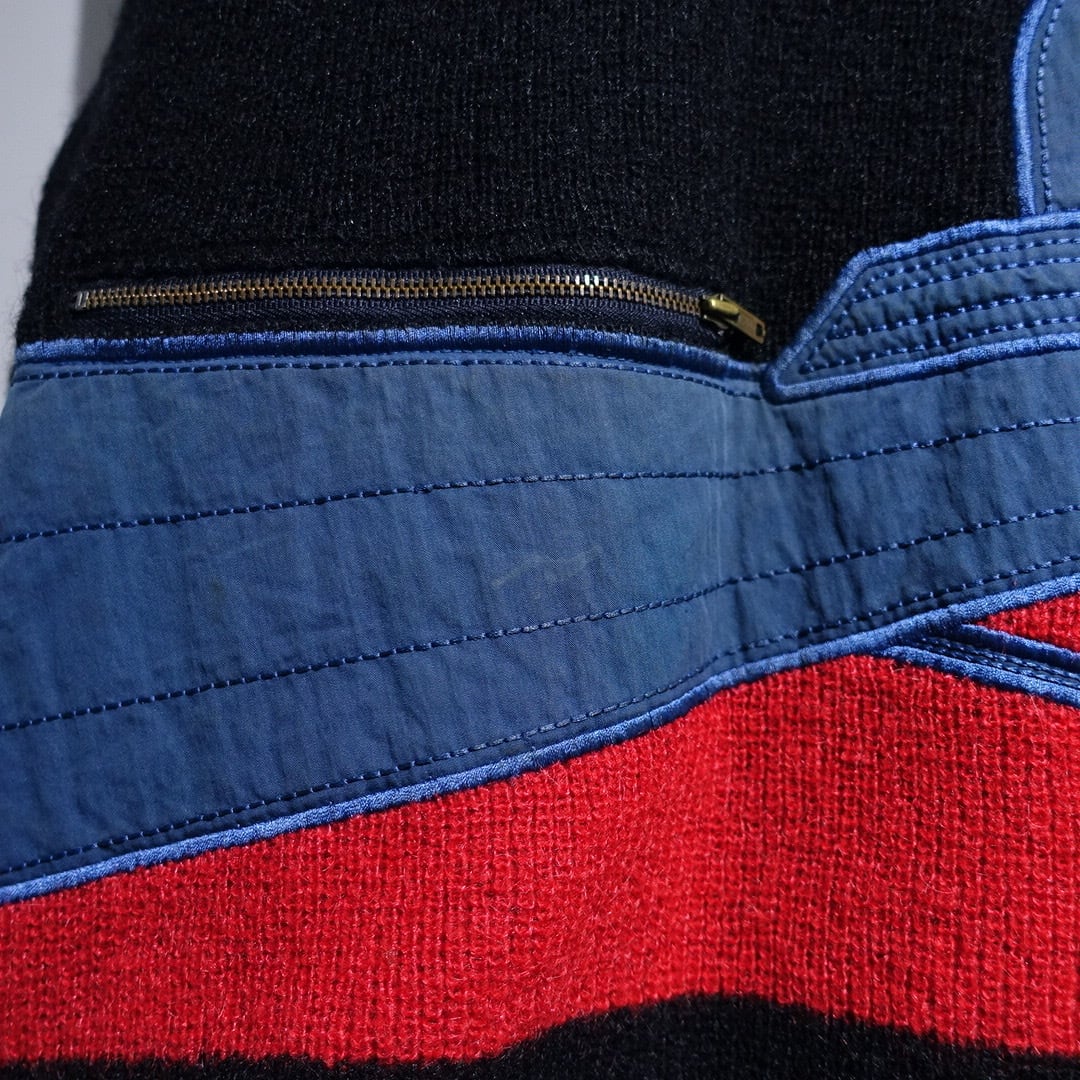 70s Black Mixed-Material Switching & Zip Poket Design Knit