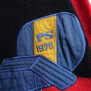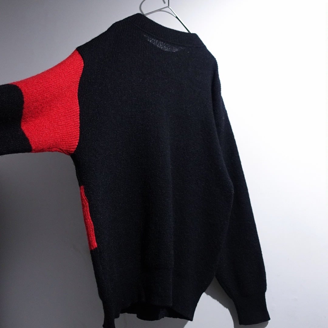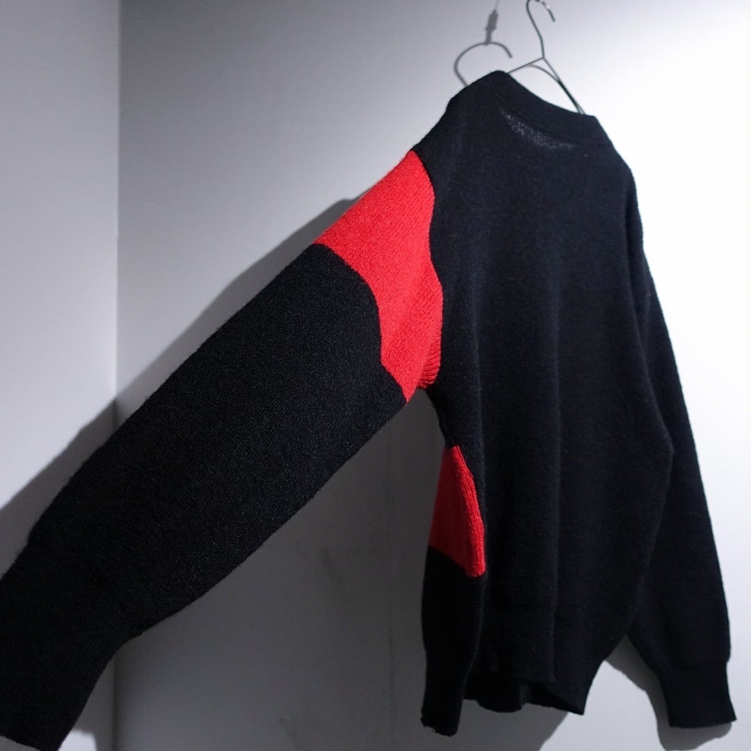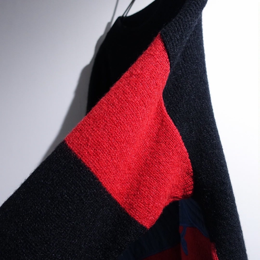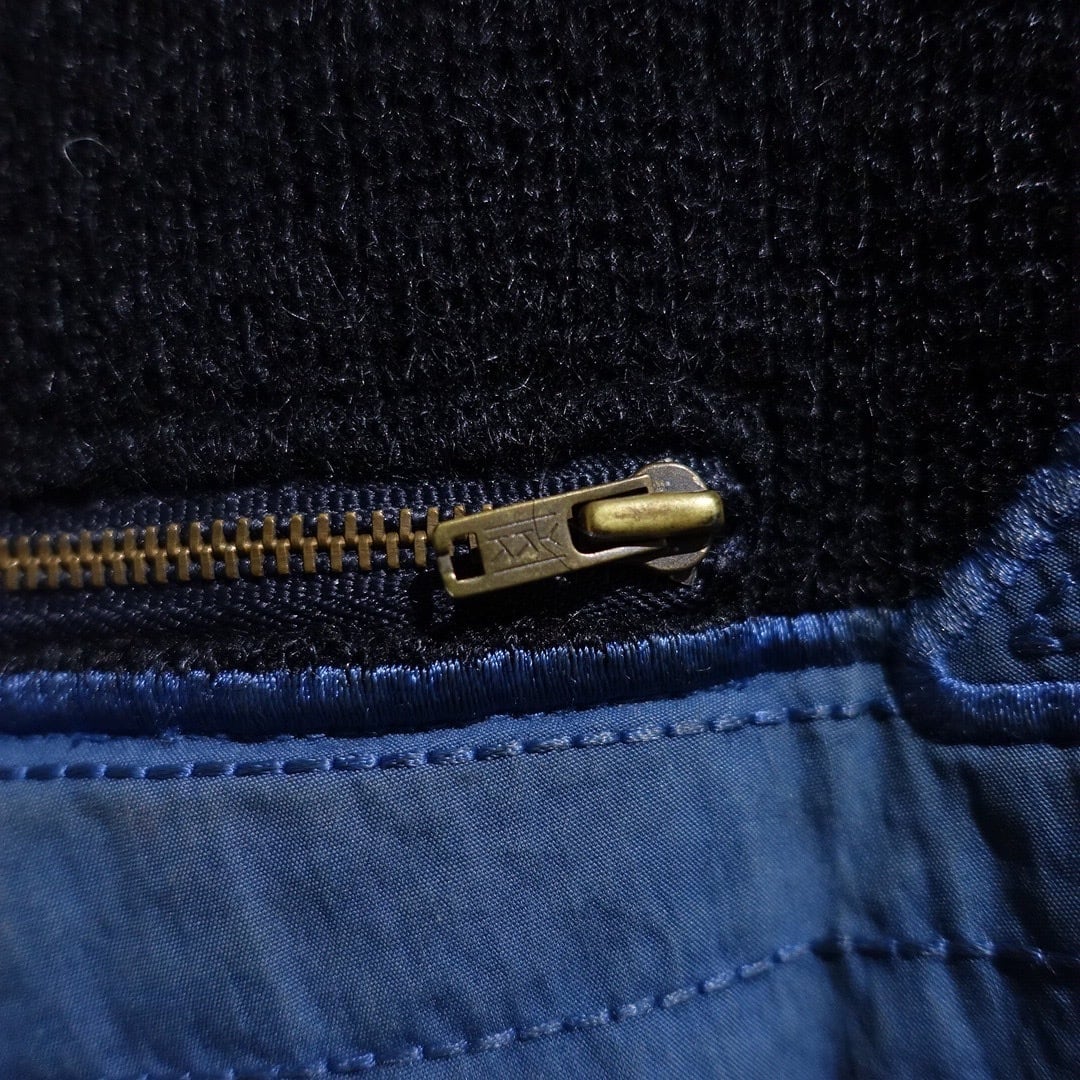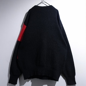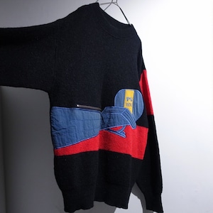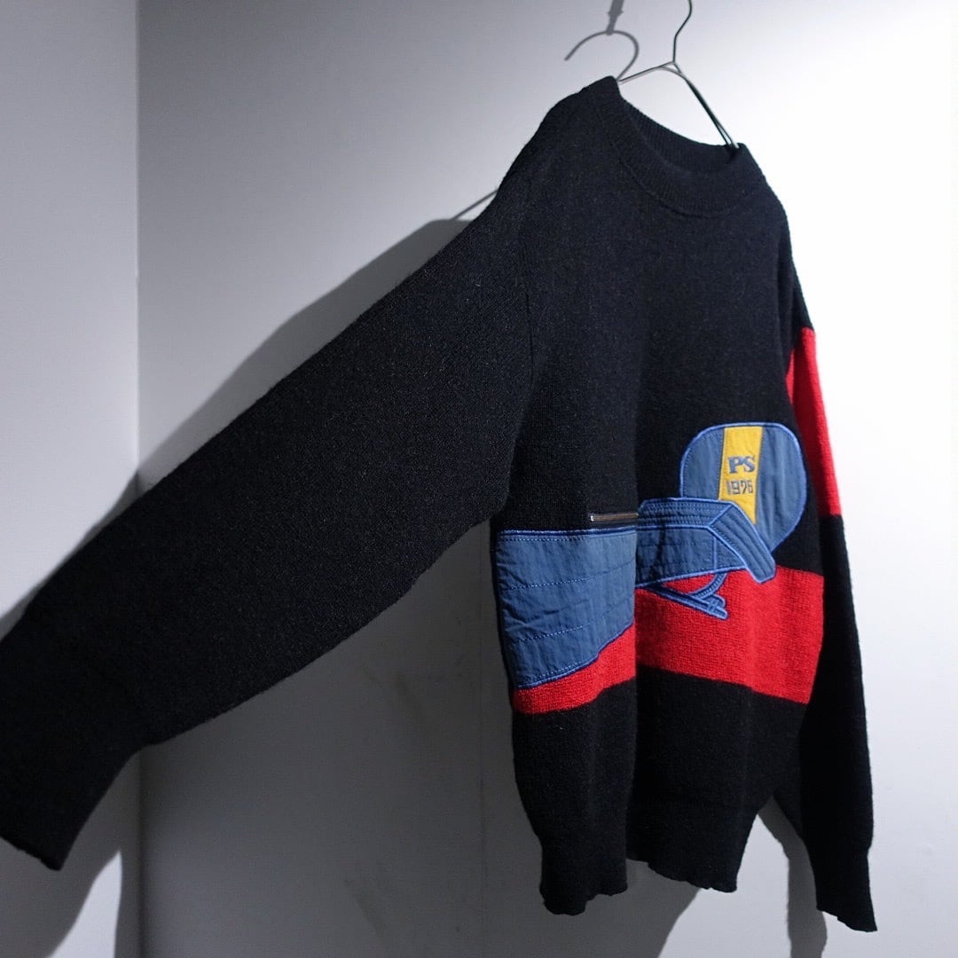 70s Black Mixed-Material Switching & Zip Poket Design Knit