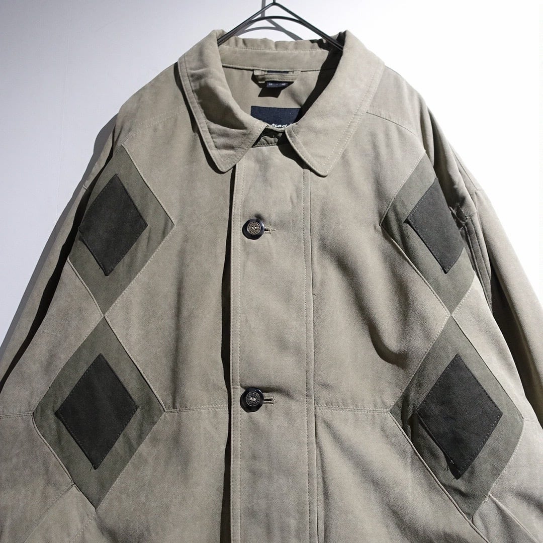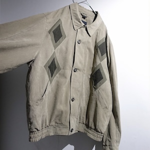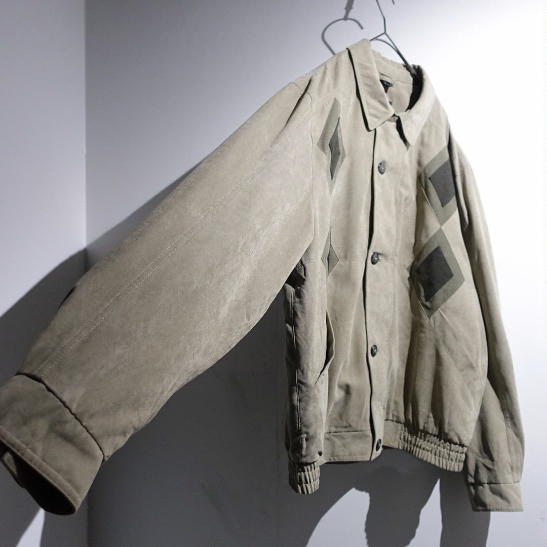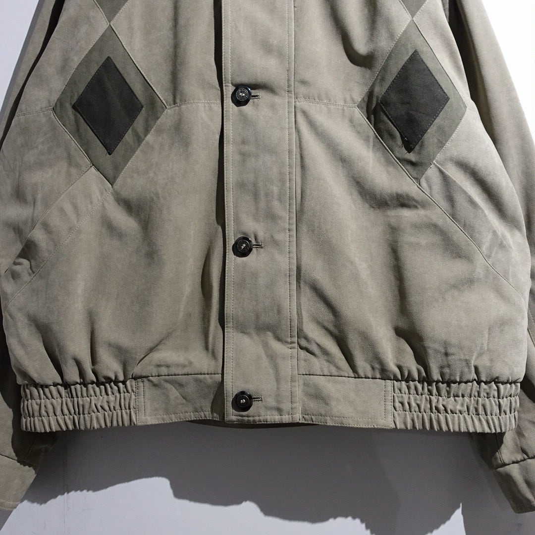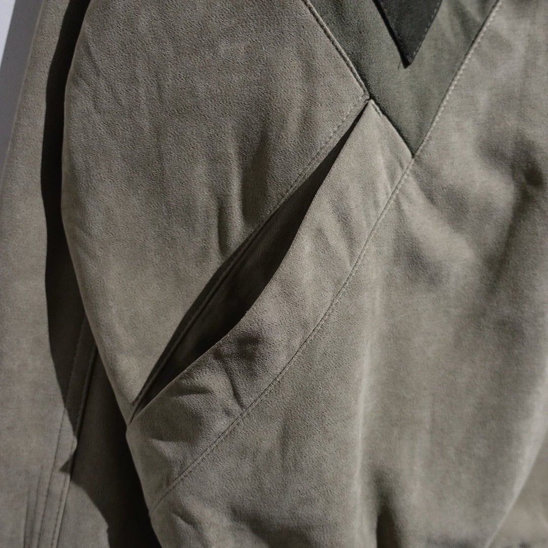 EURO Grayish Khaki Diamond Switching Design Faux Suede Blouson