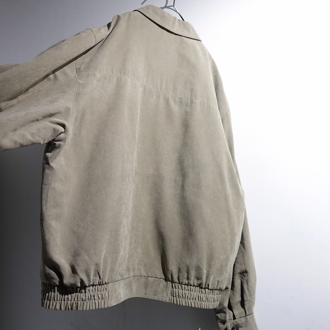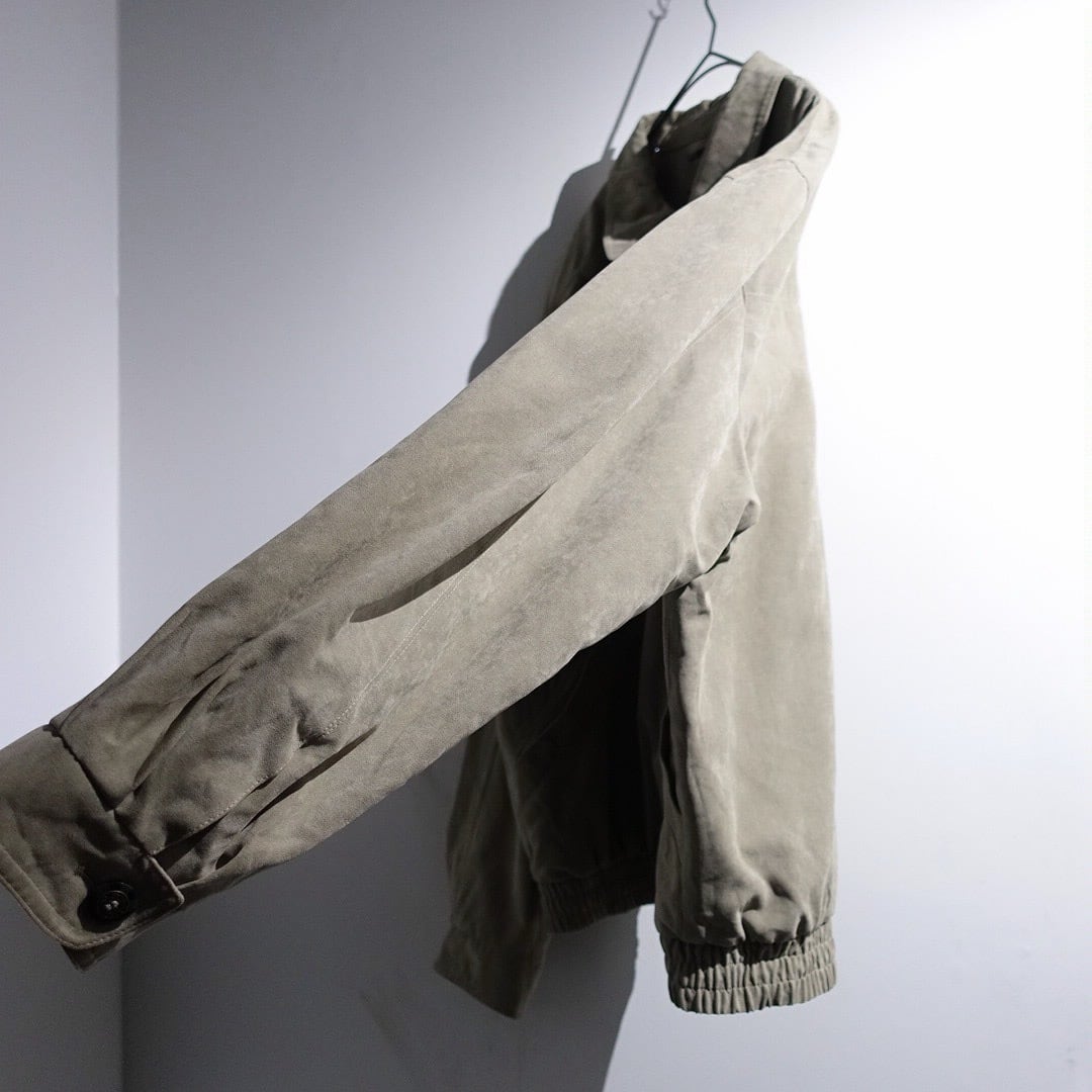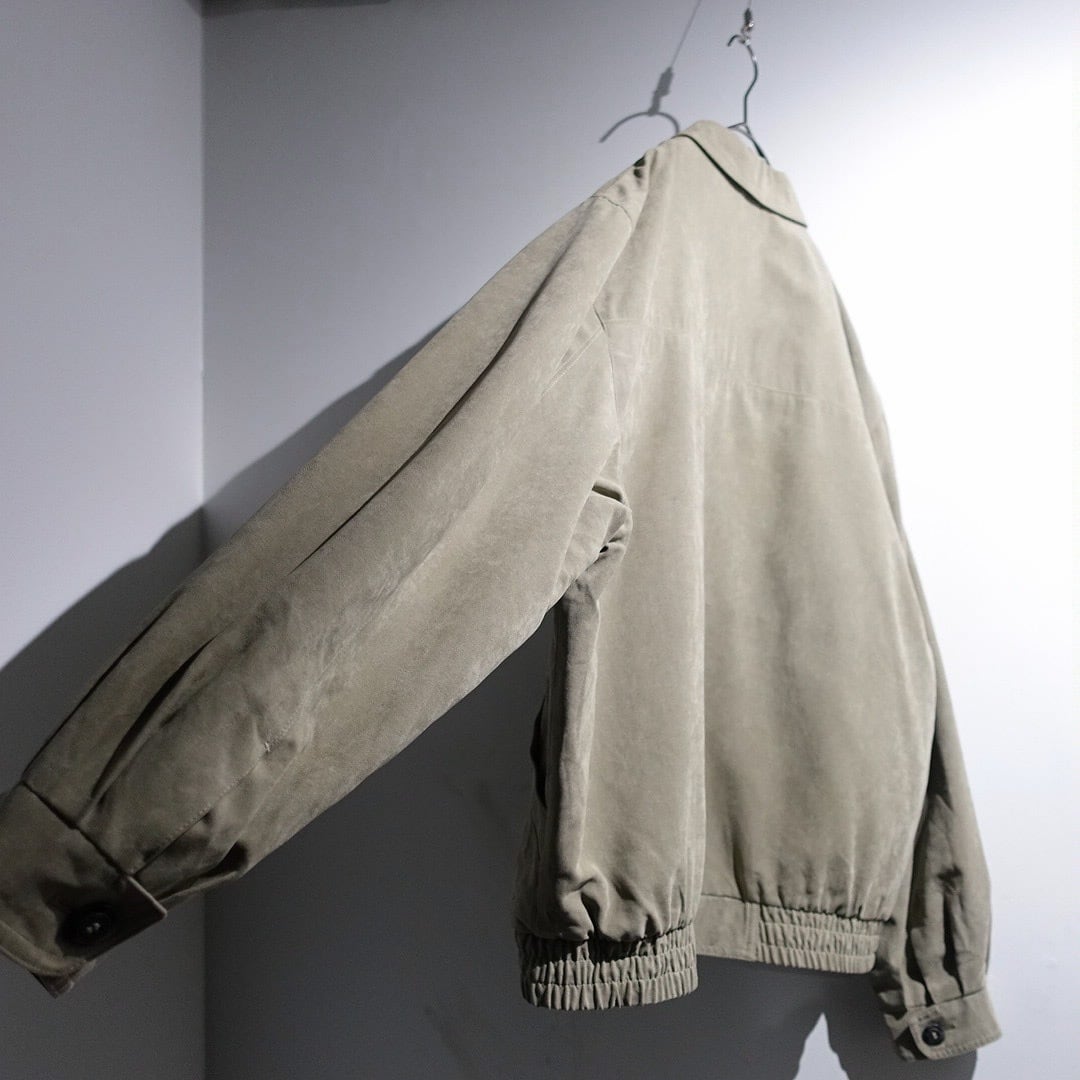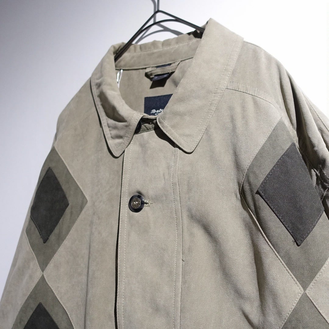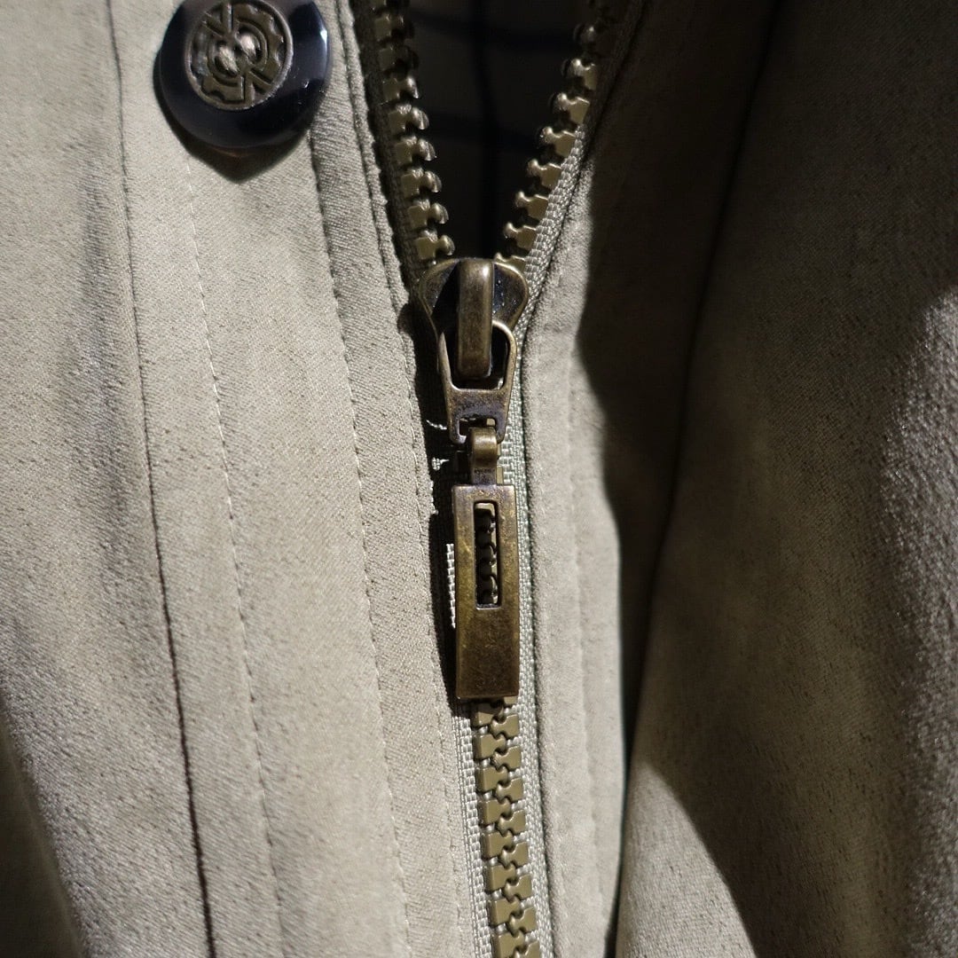 EURO Grayish Khaki Diamond Switching Design Faux Suede Blouson