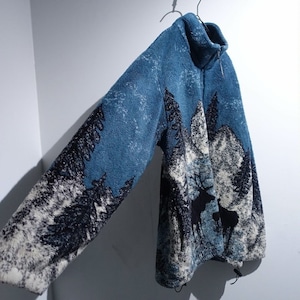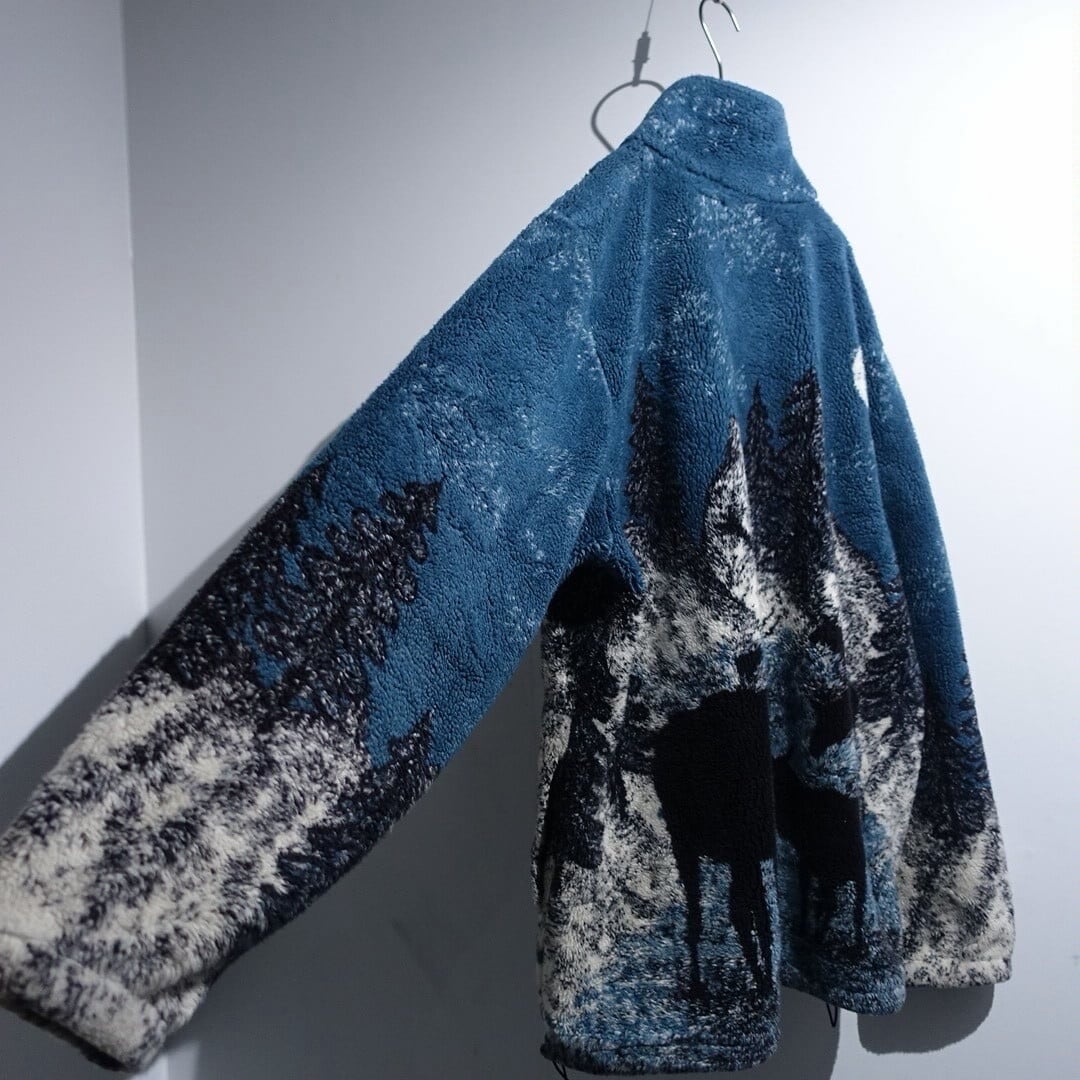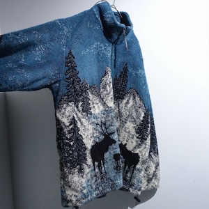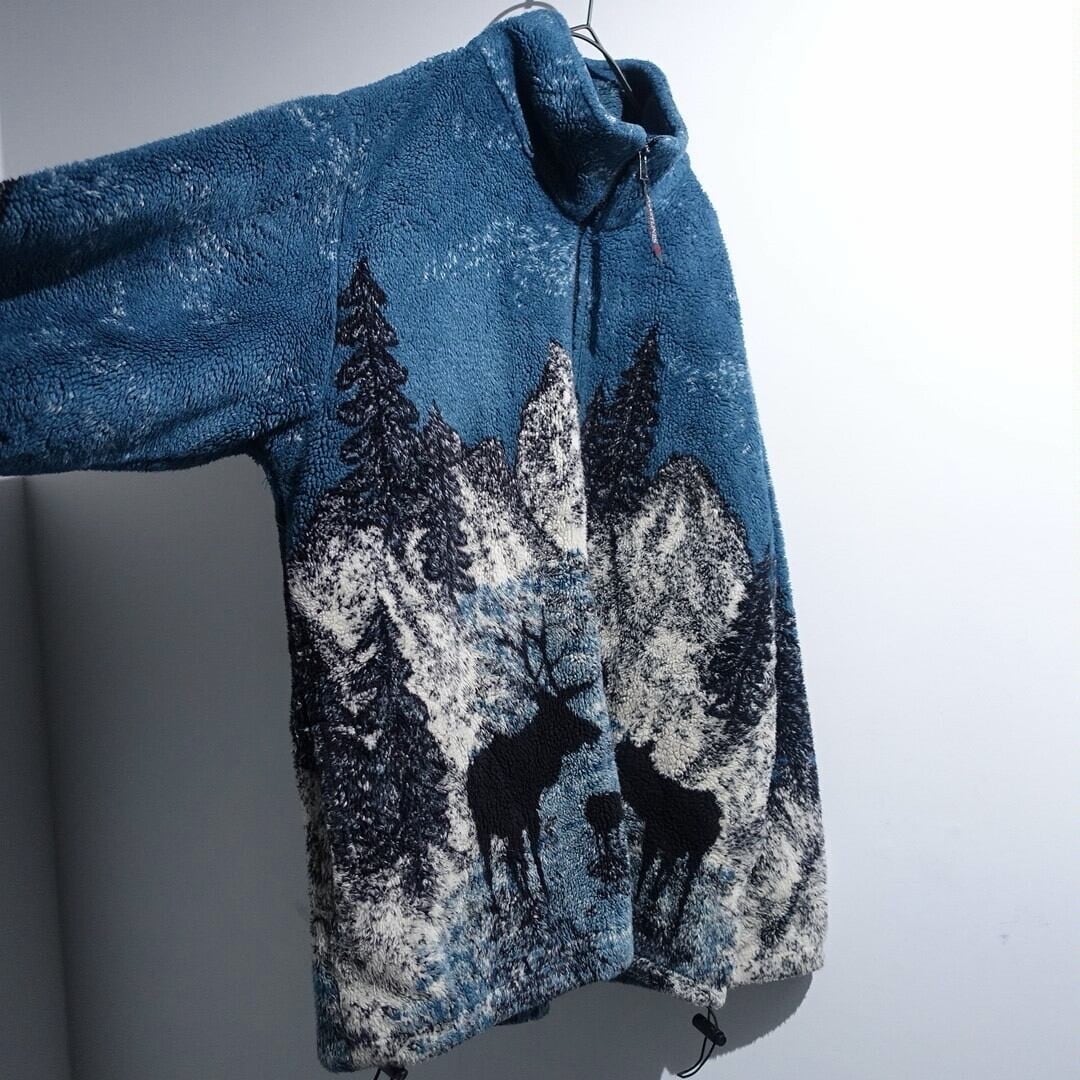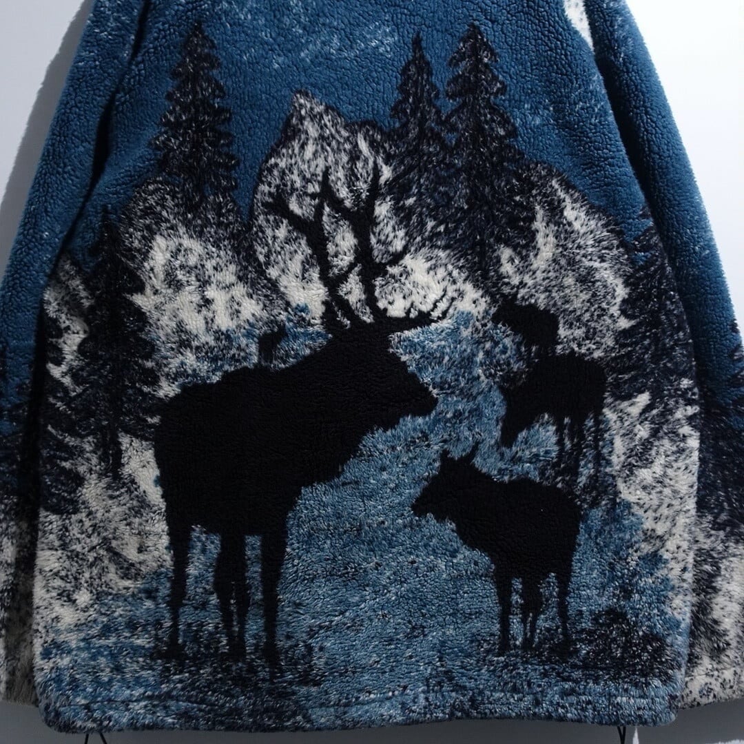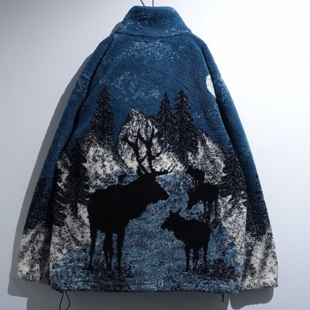 Multicolor Moose Animal Landscape Design Fleece Jacket