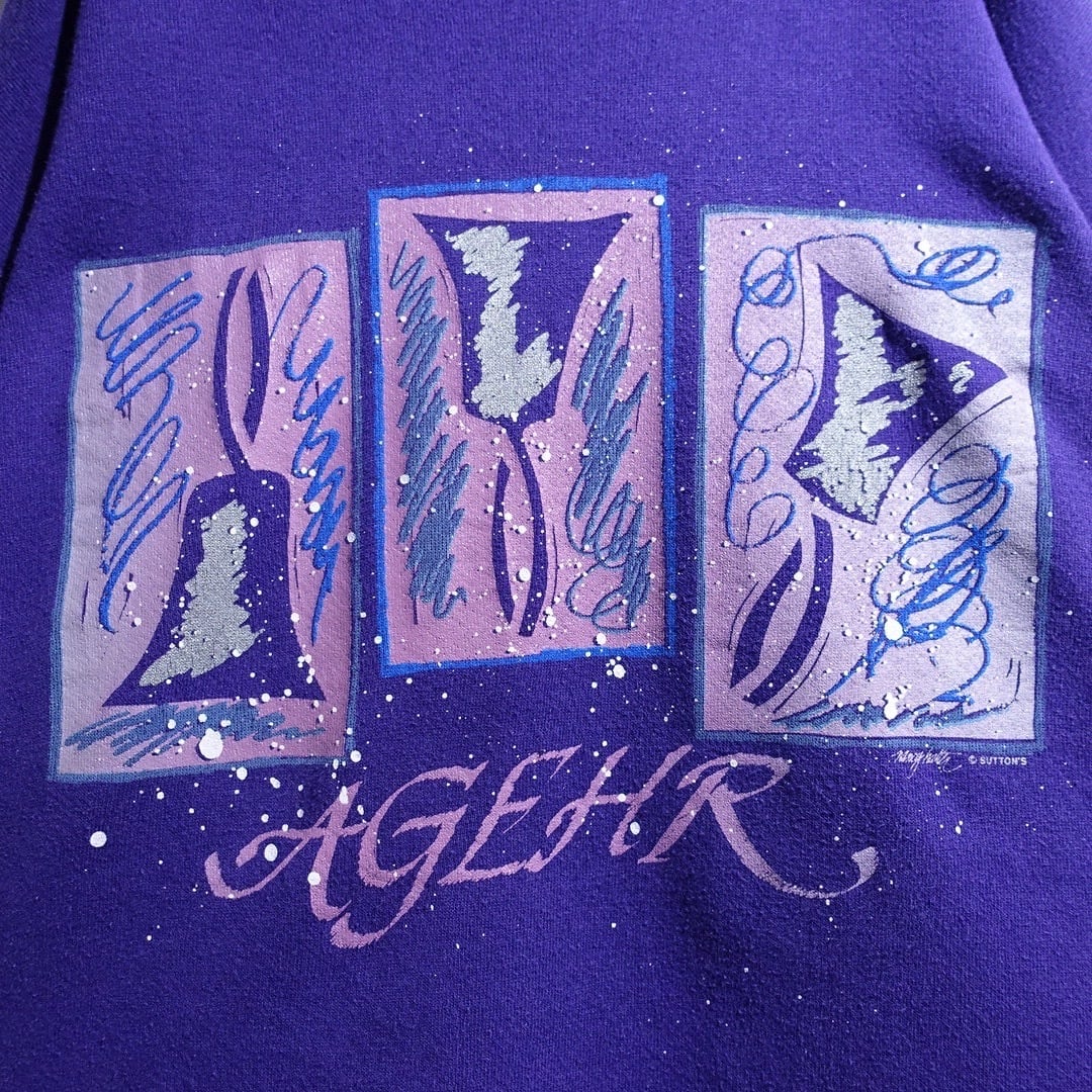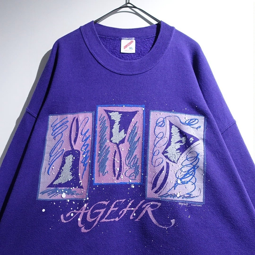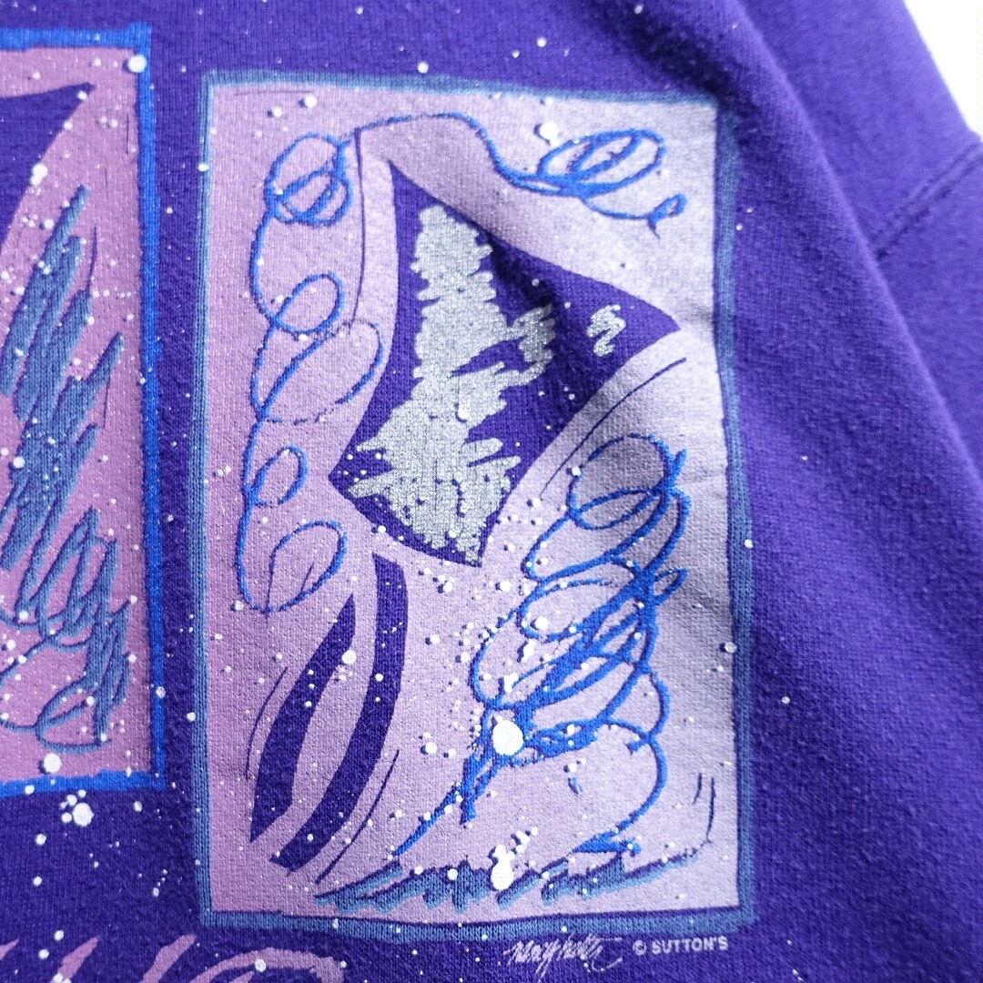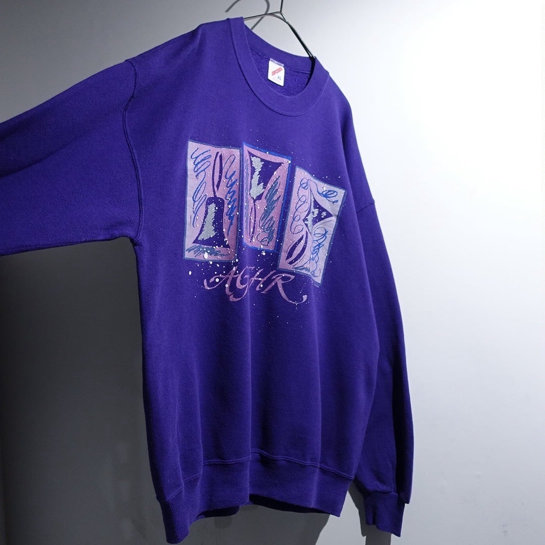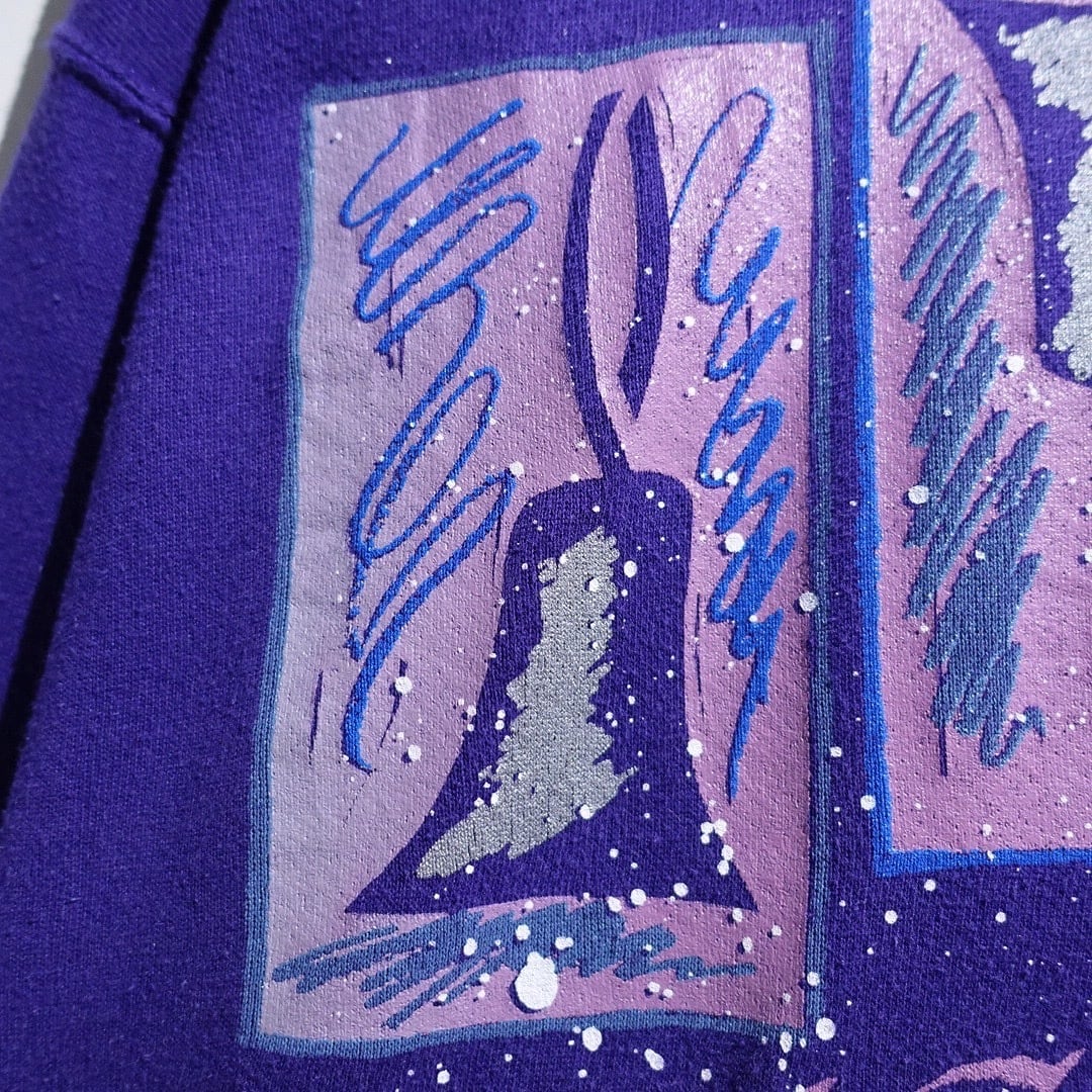 90s "JERZEES" Purple Snow Bell Artistic Print Design Sweat