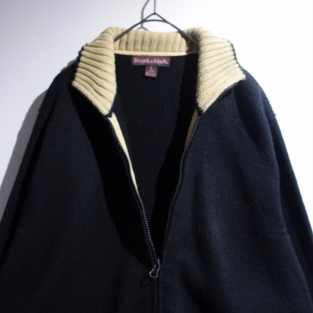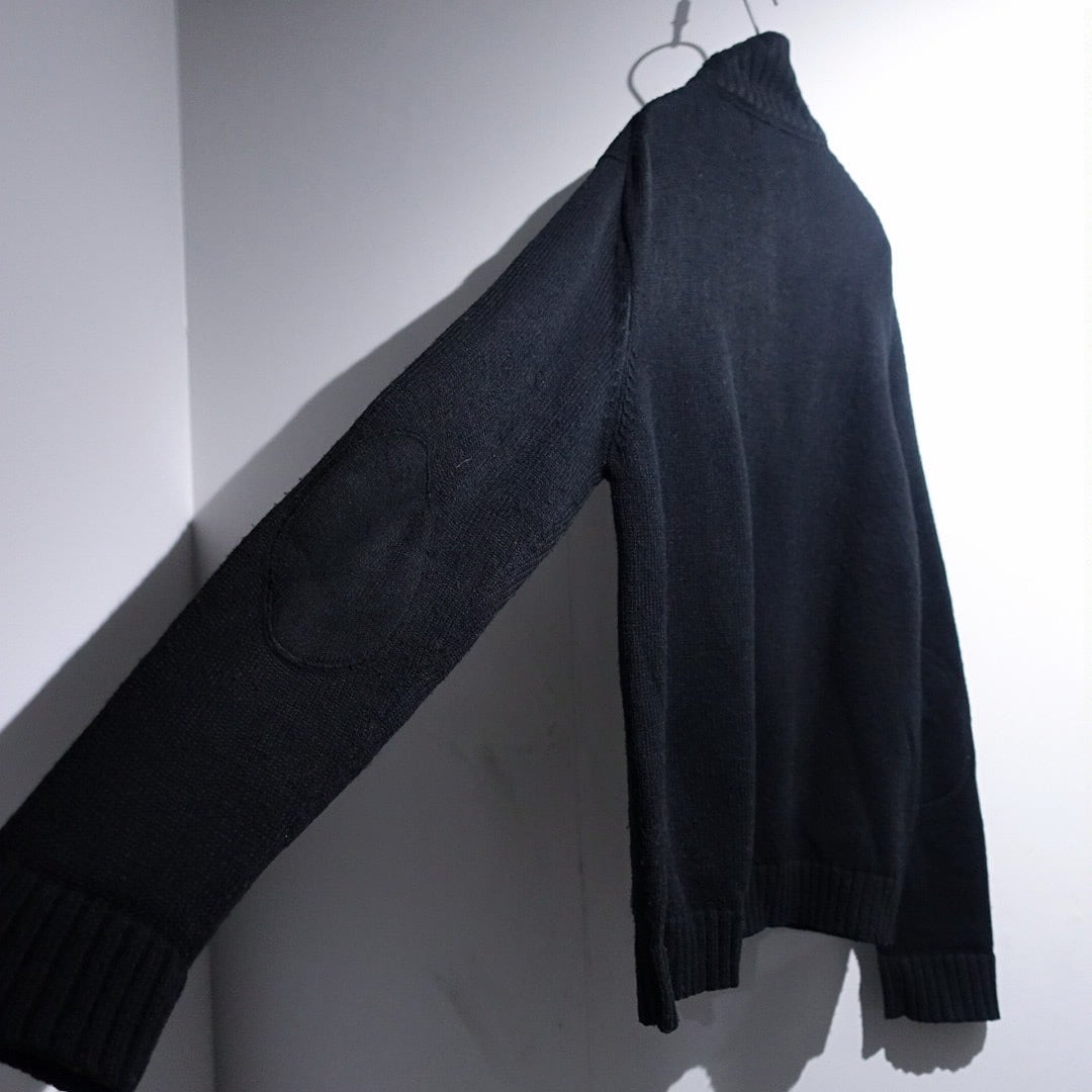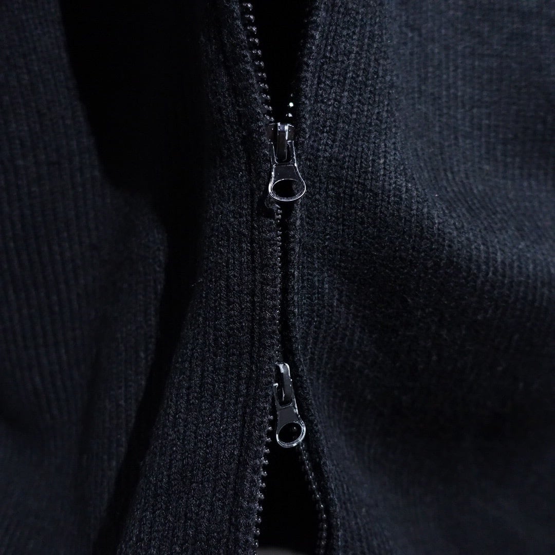 Black Elbow Patch Design Double-Zip Driver's Knit
