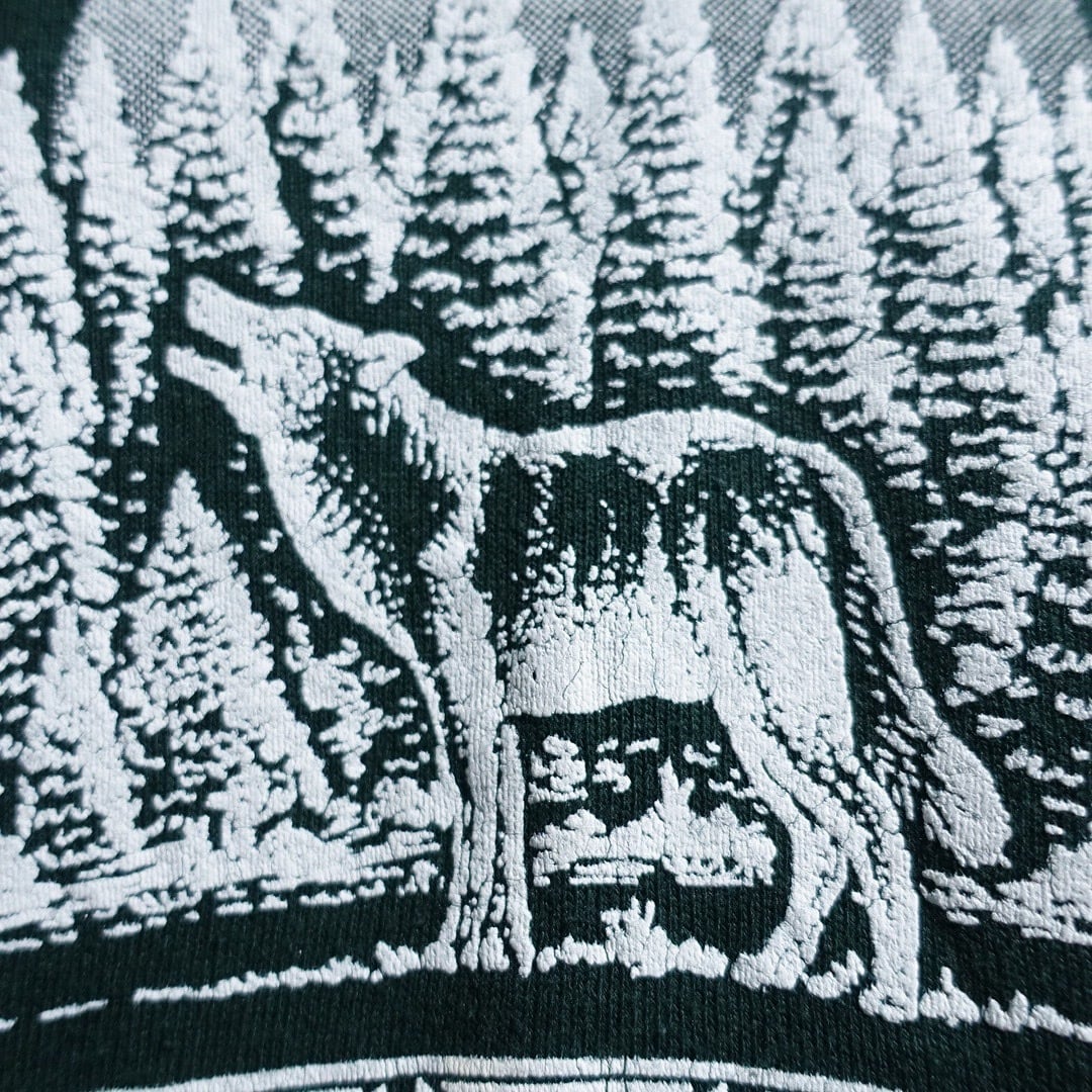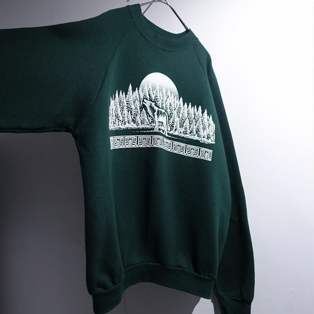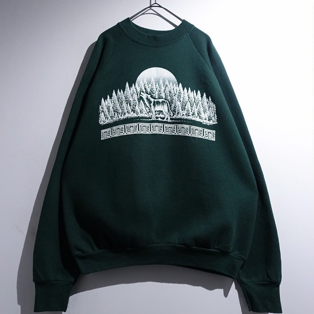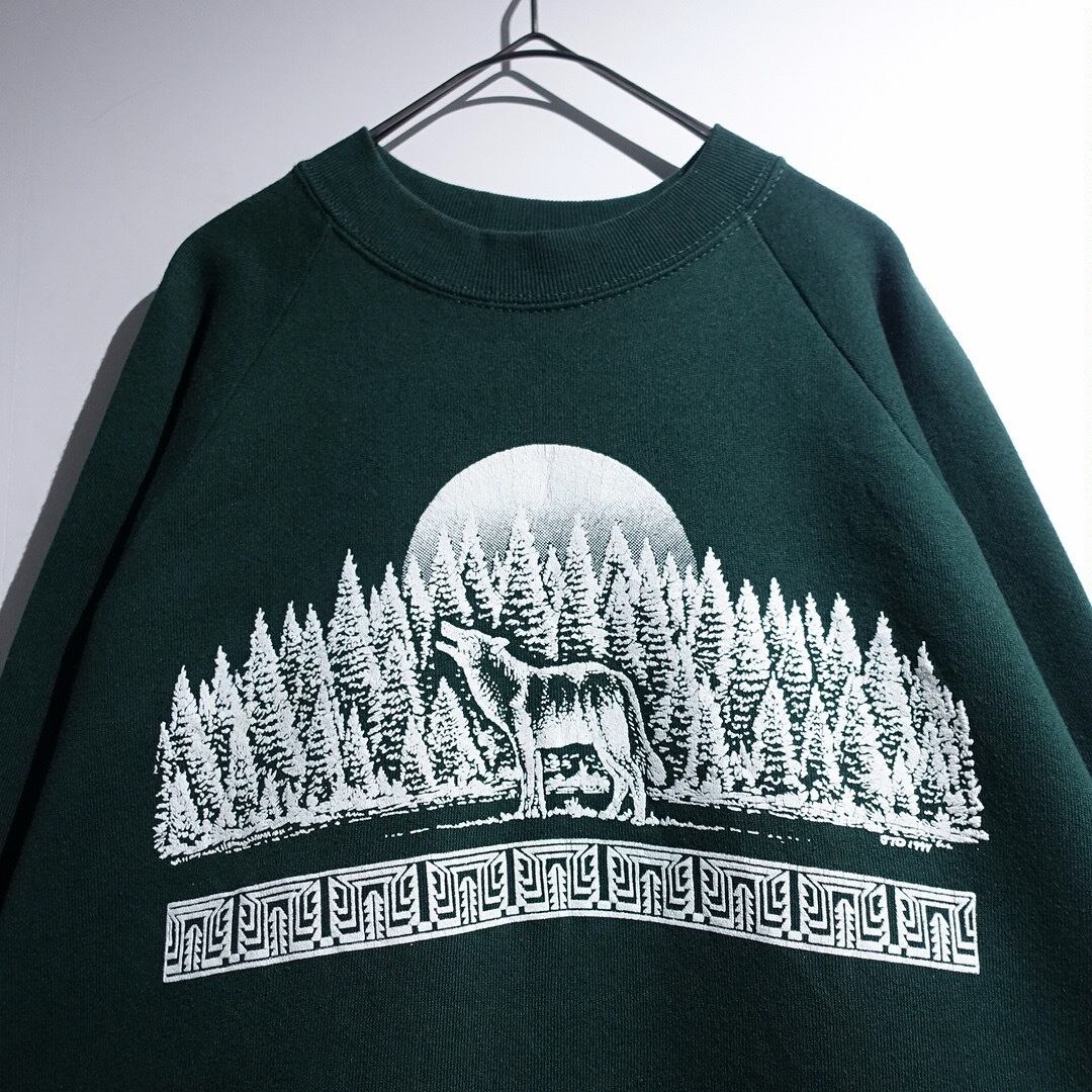 90s "FRUIT OF THE LOOM" Green Wolf Artistic Puff Print Design Sweat