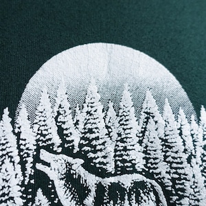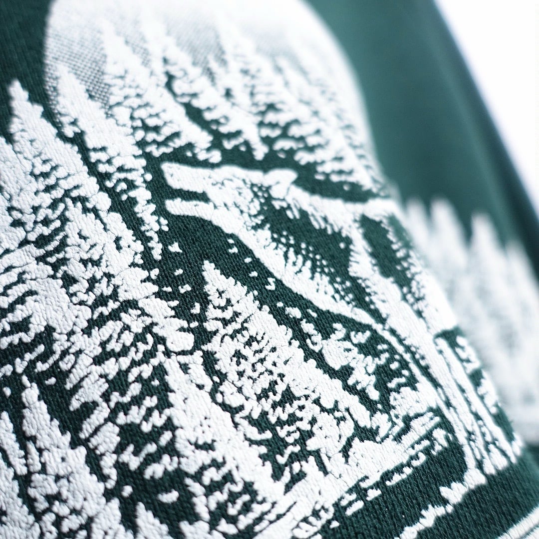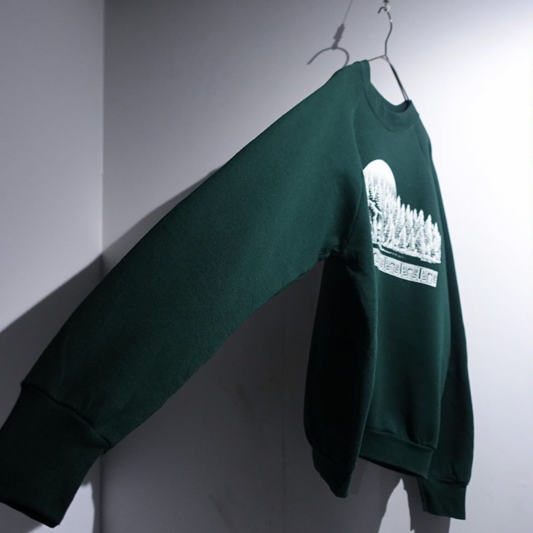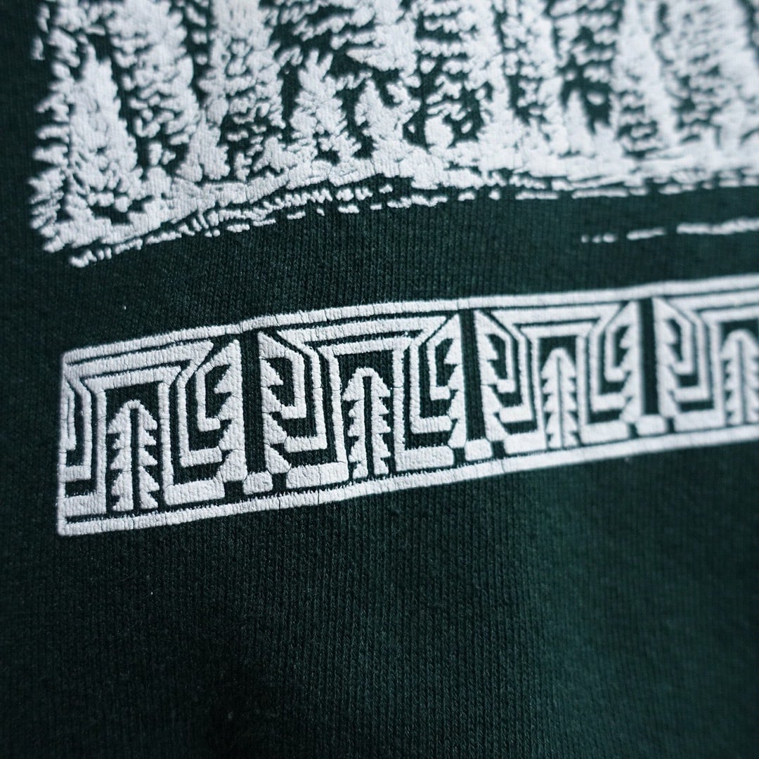 90s "FRUIT OF THE LOOM" Green Wolf Artistic Puff Print Design Sweat