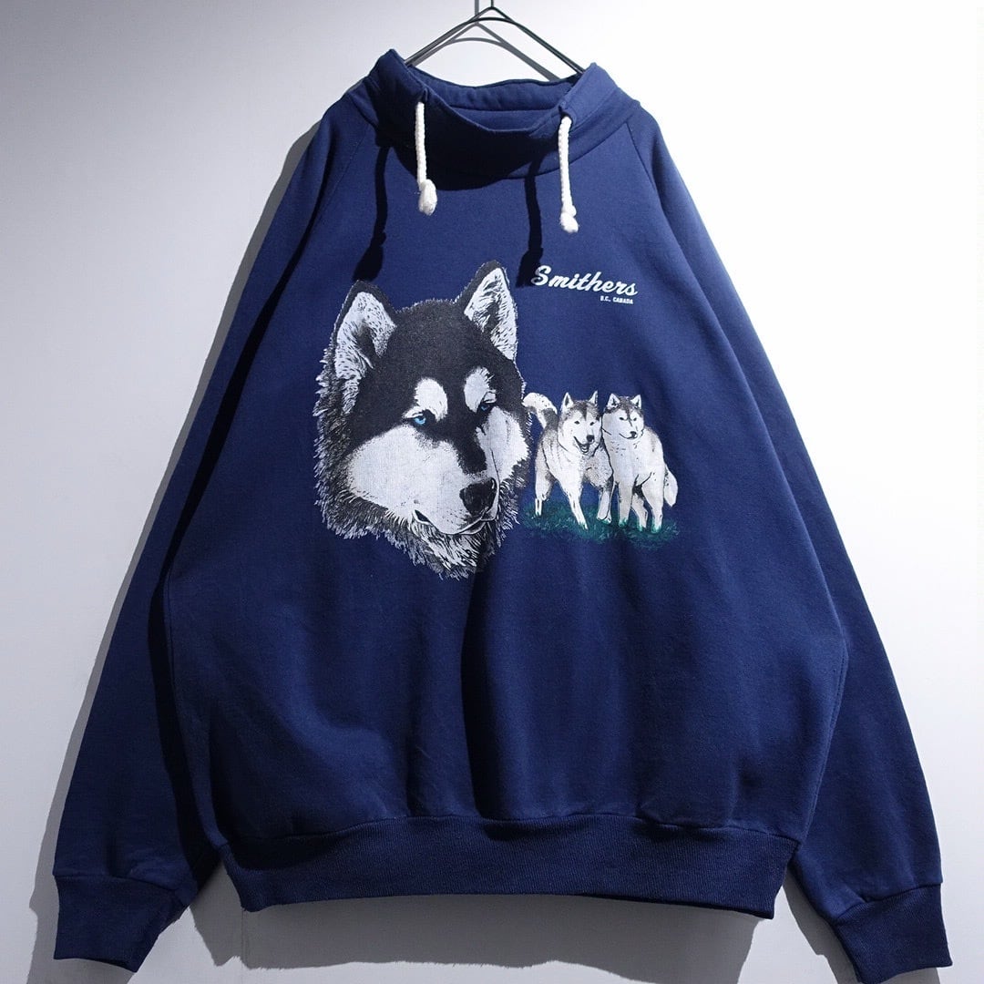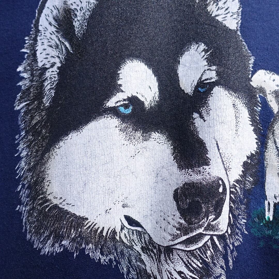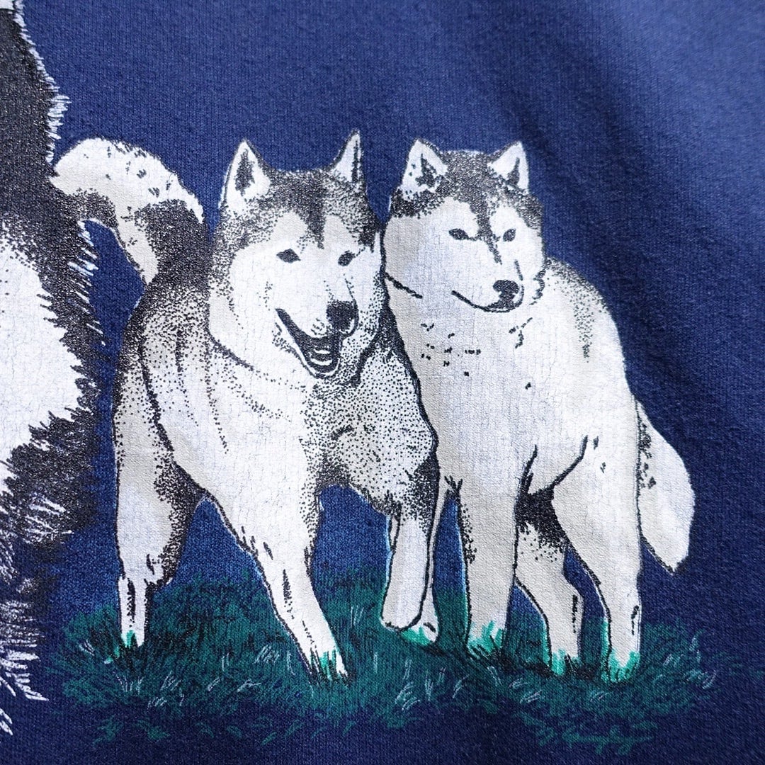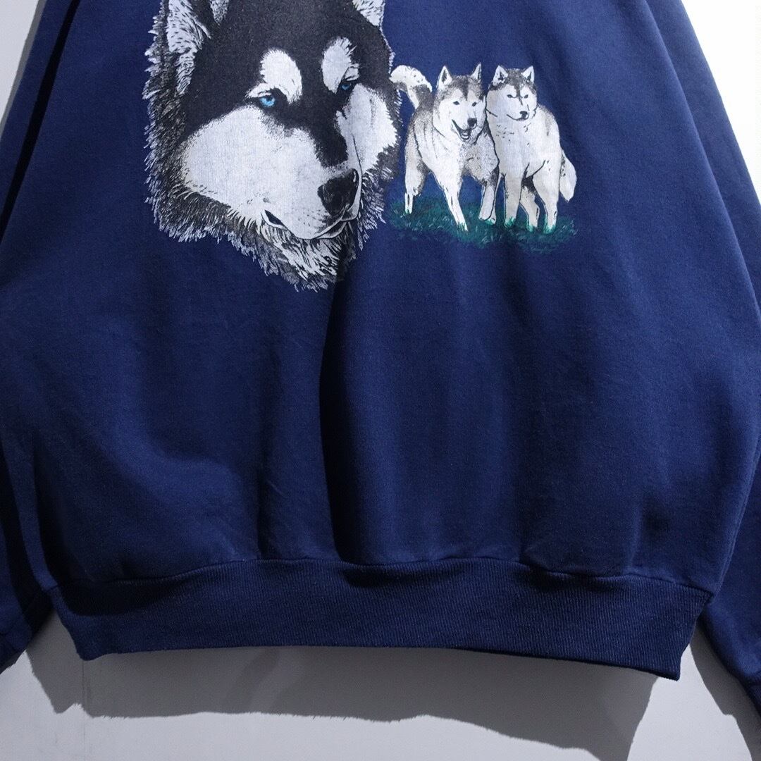 90s Blue Husky Print Design Animal Sweat