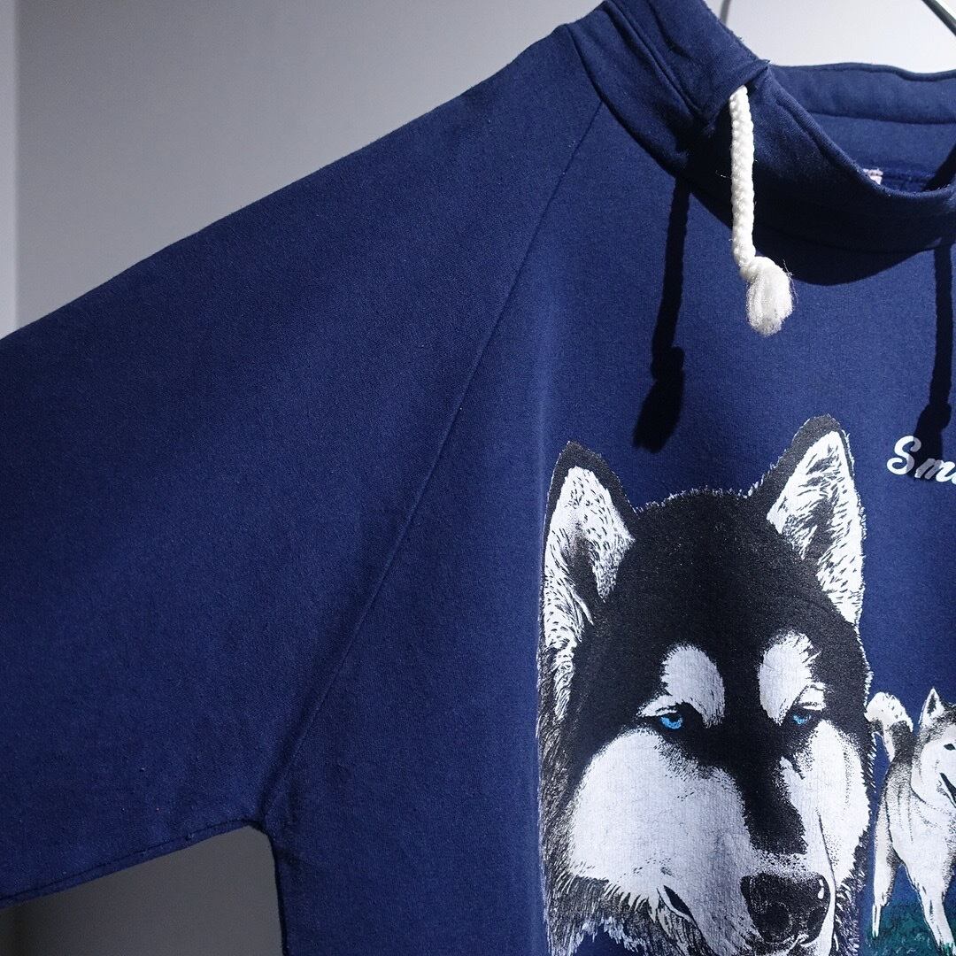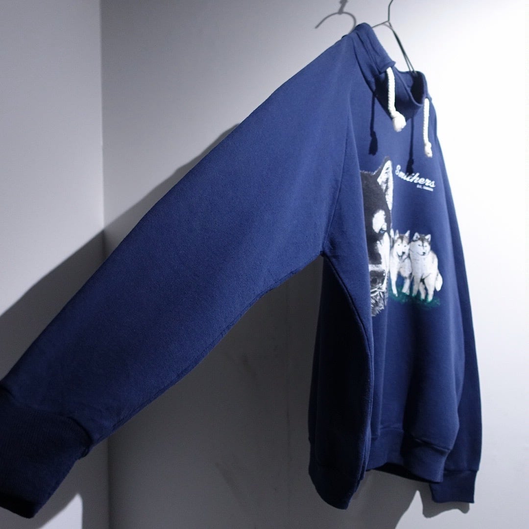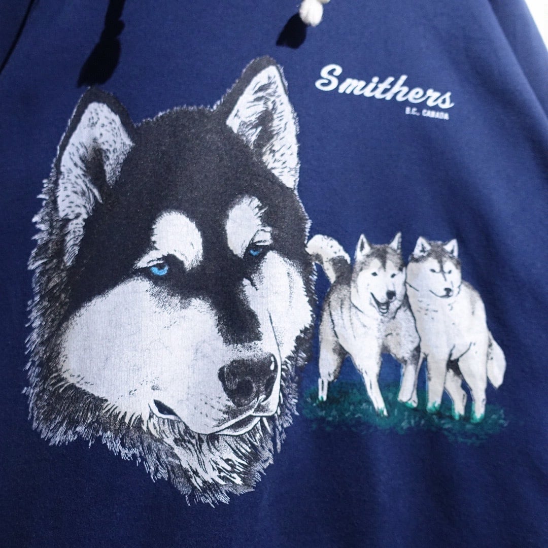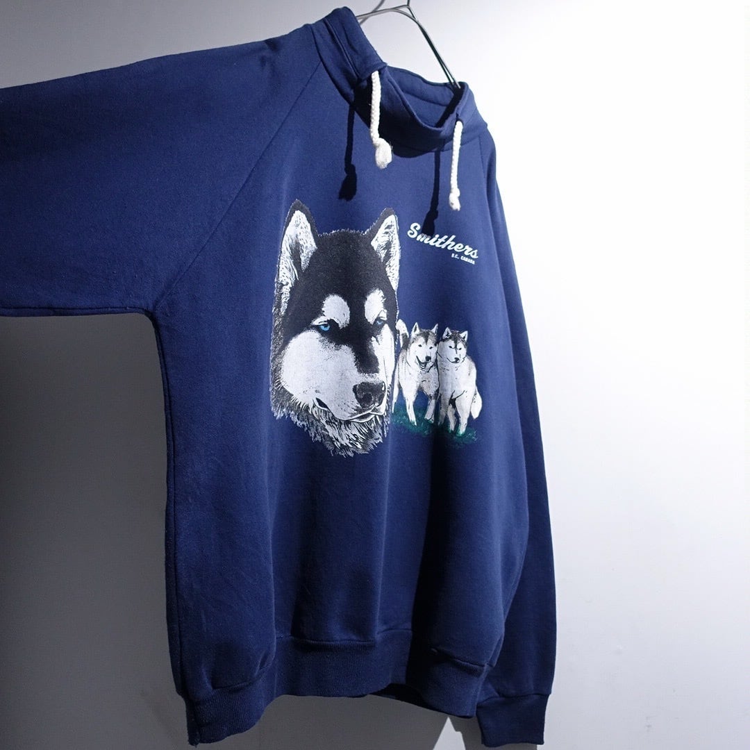 90s Blue Husky Print Design Animal Sweat