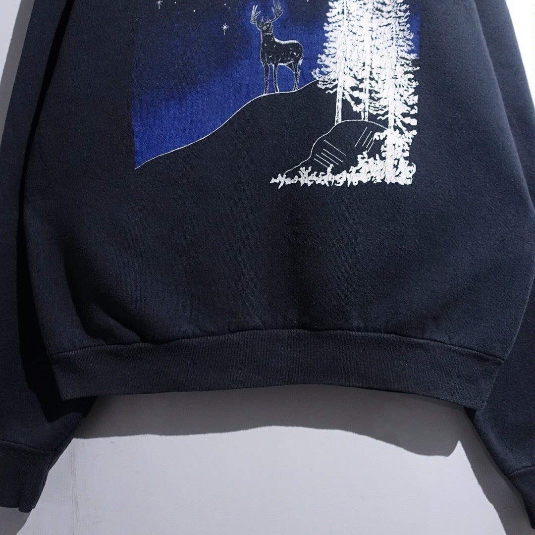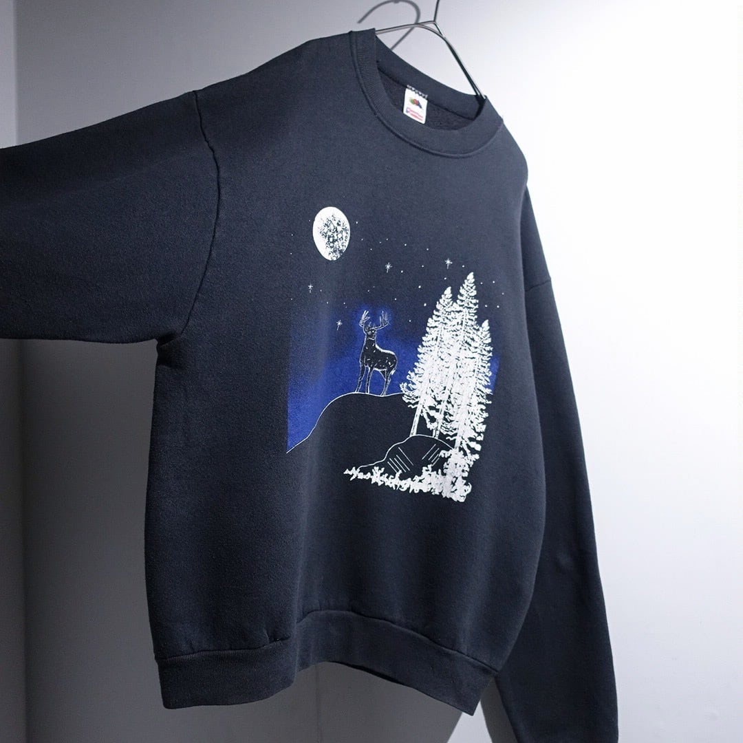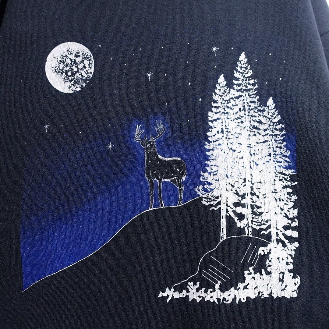 90s "FRUIT OF THE LOOM" Black Deer Night Scene Artistic Print Sweat