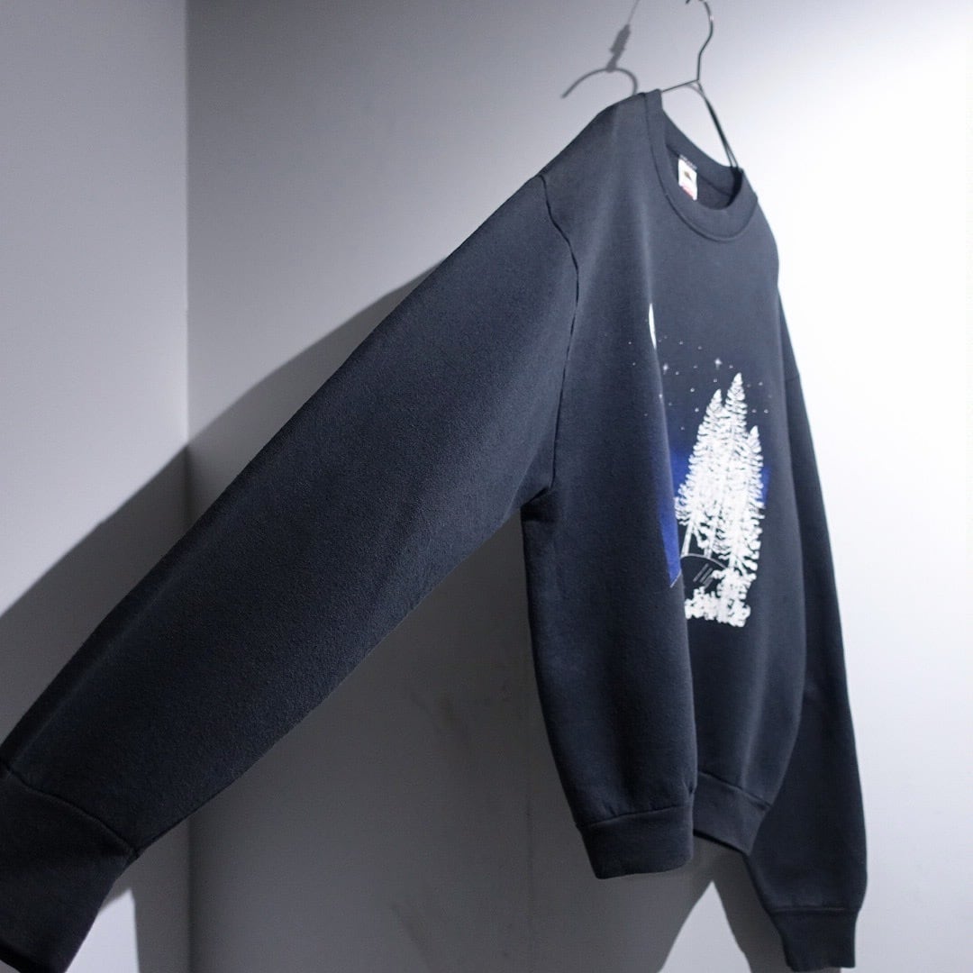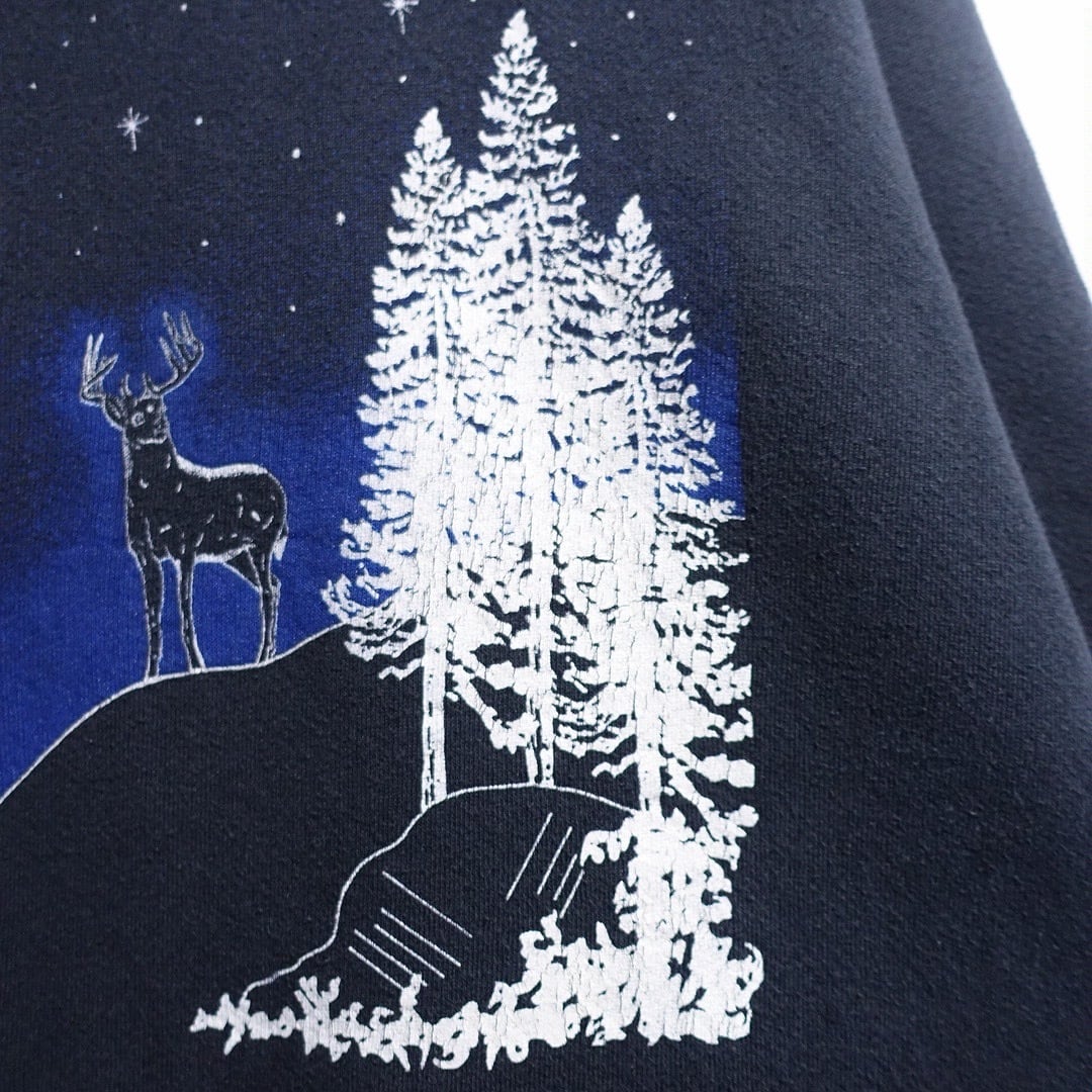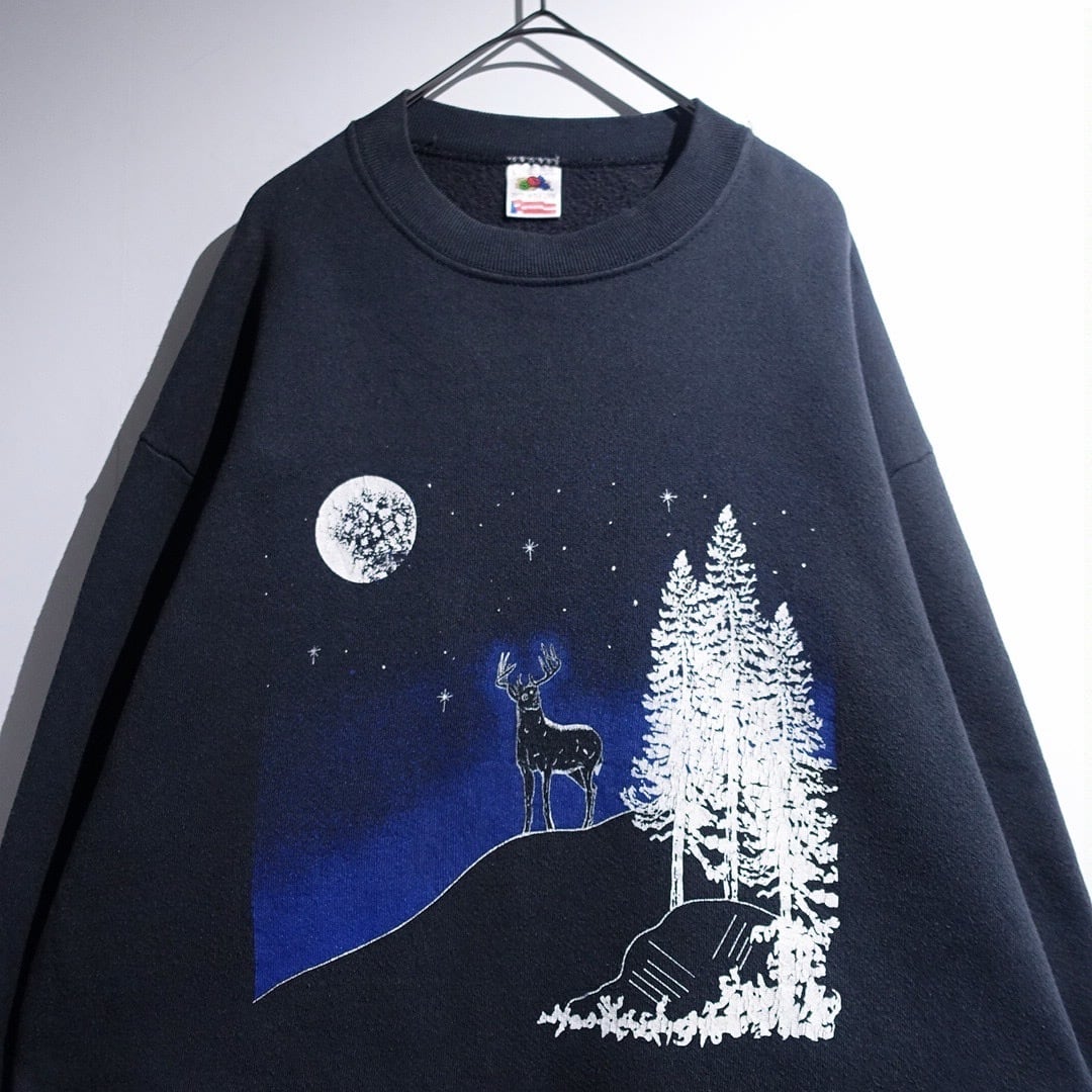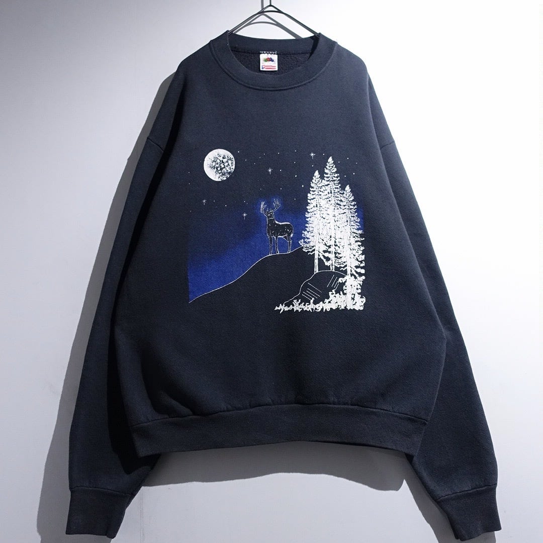 90s "FRUIT OF THE LOOM" Black Deer Night Scene Artistic Print Sweat