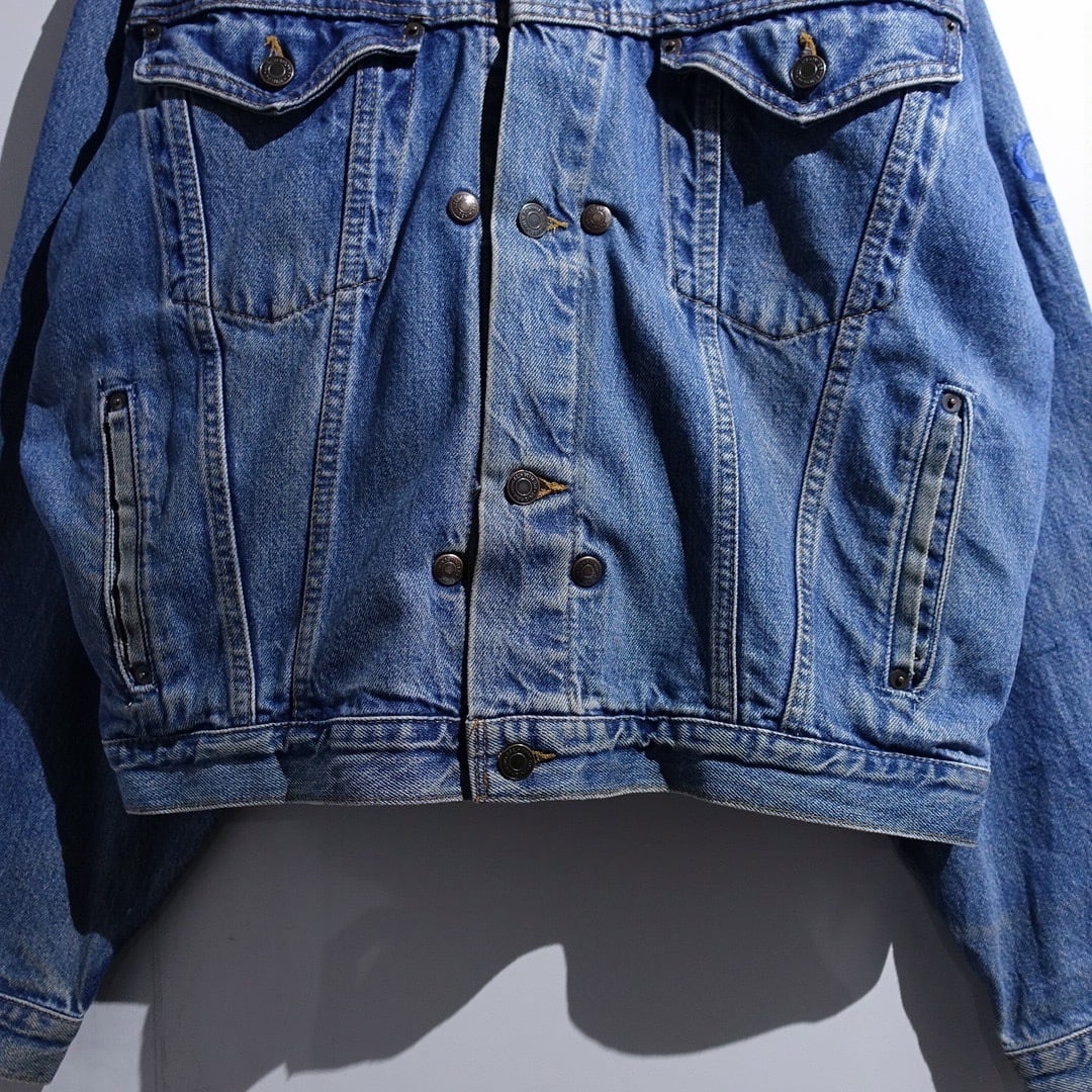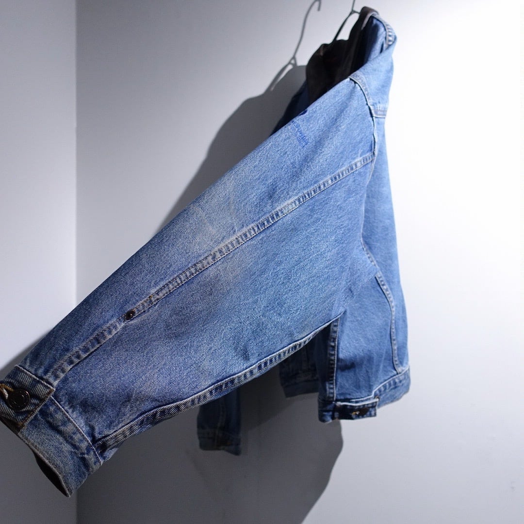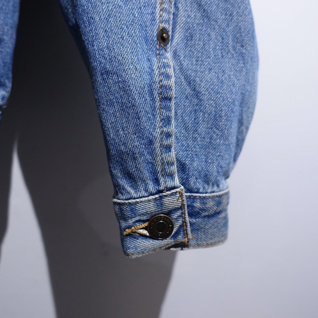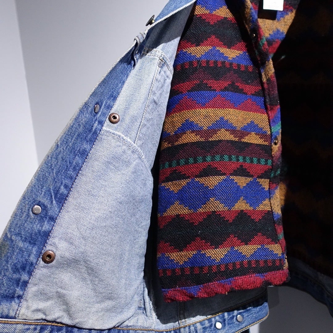 "iD" Denim Leather Collar Switching Design Trucker Jacket with Liner