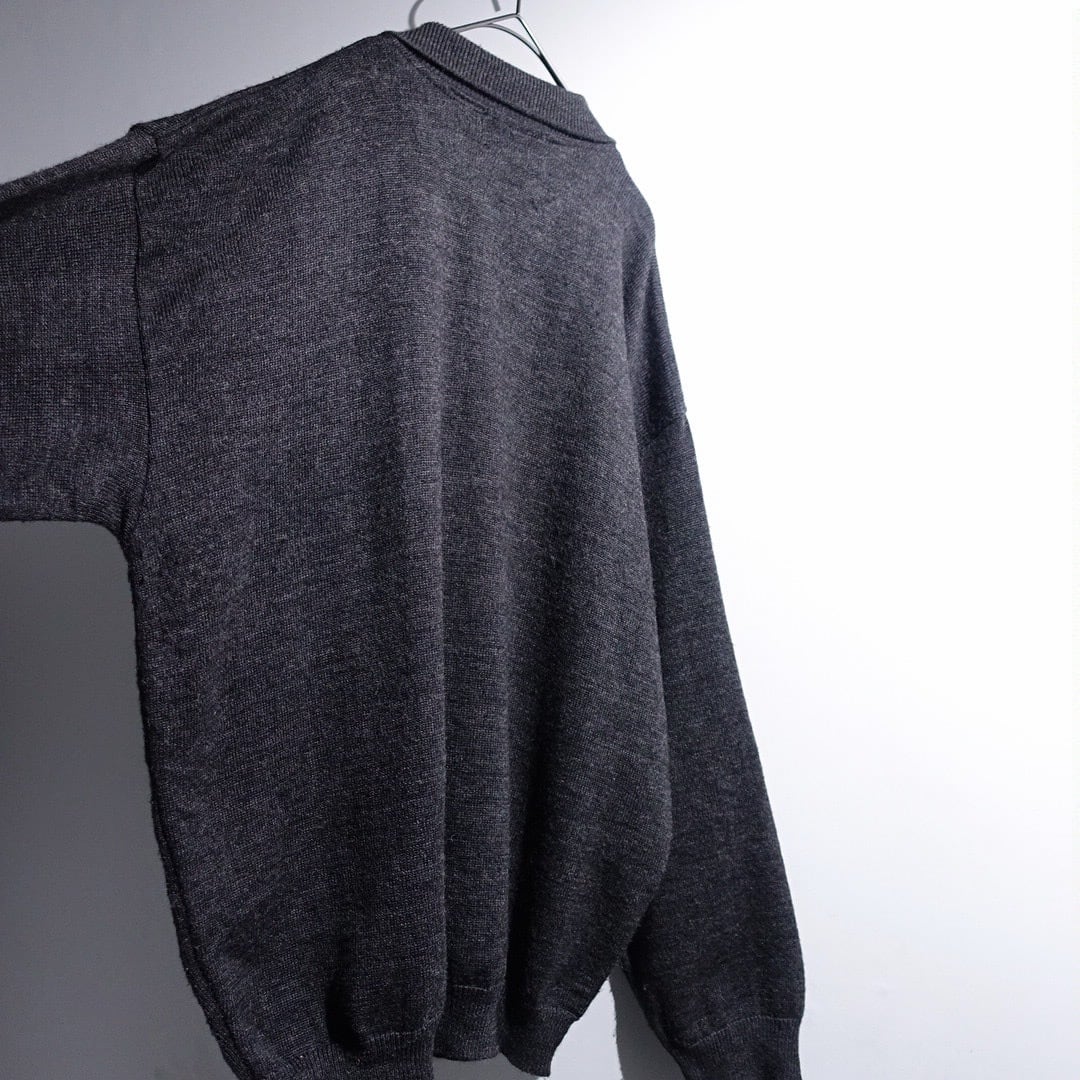 90s Charcoal Gray Cotton Wool Acrylic Knit Polo