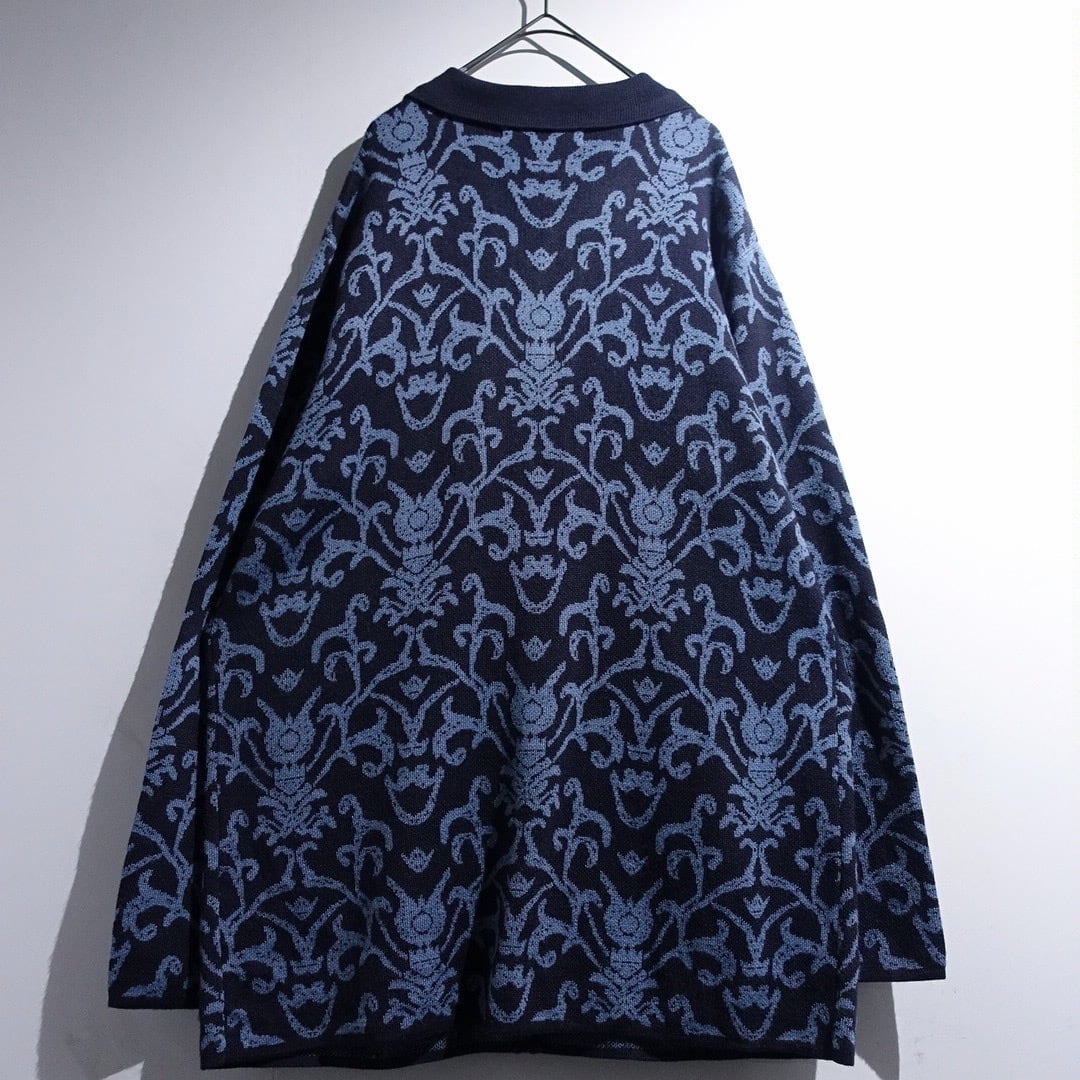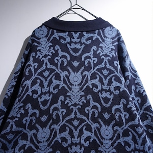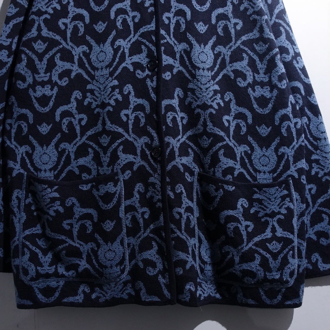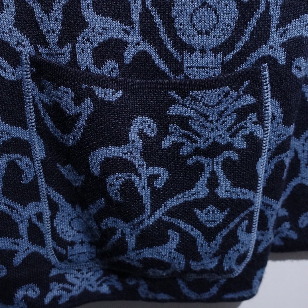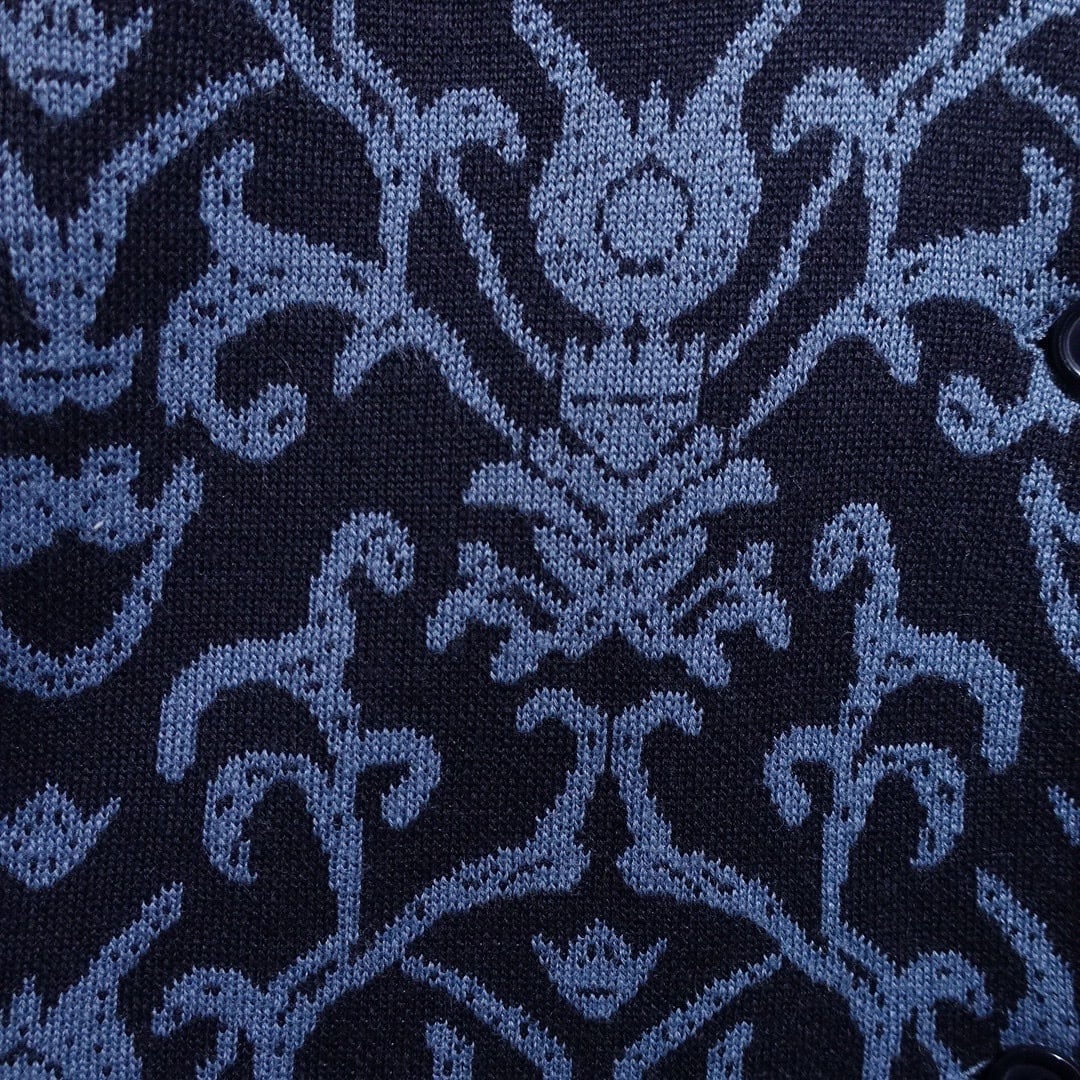 Navy Damask Pattern Design Knit Jacket