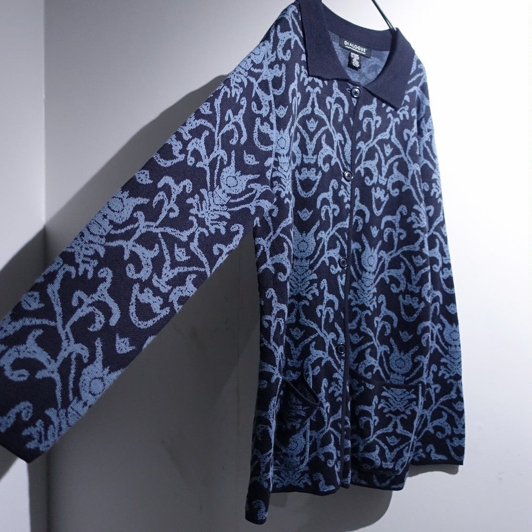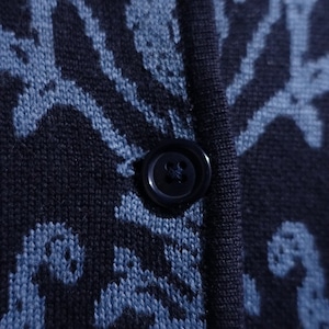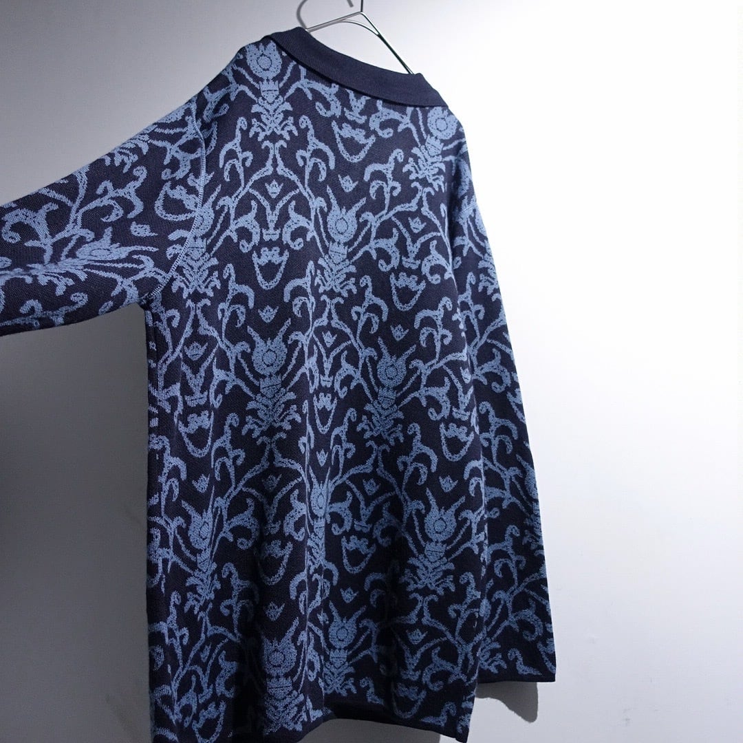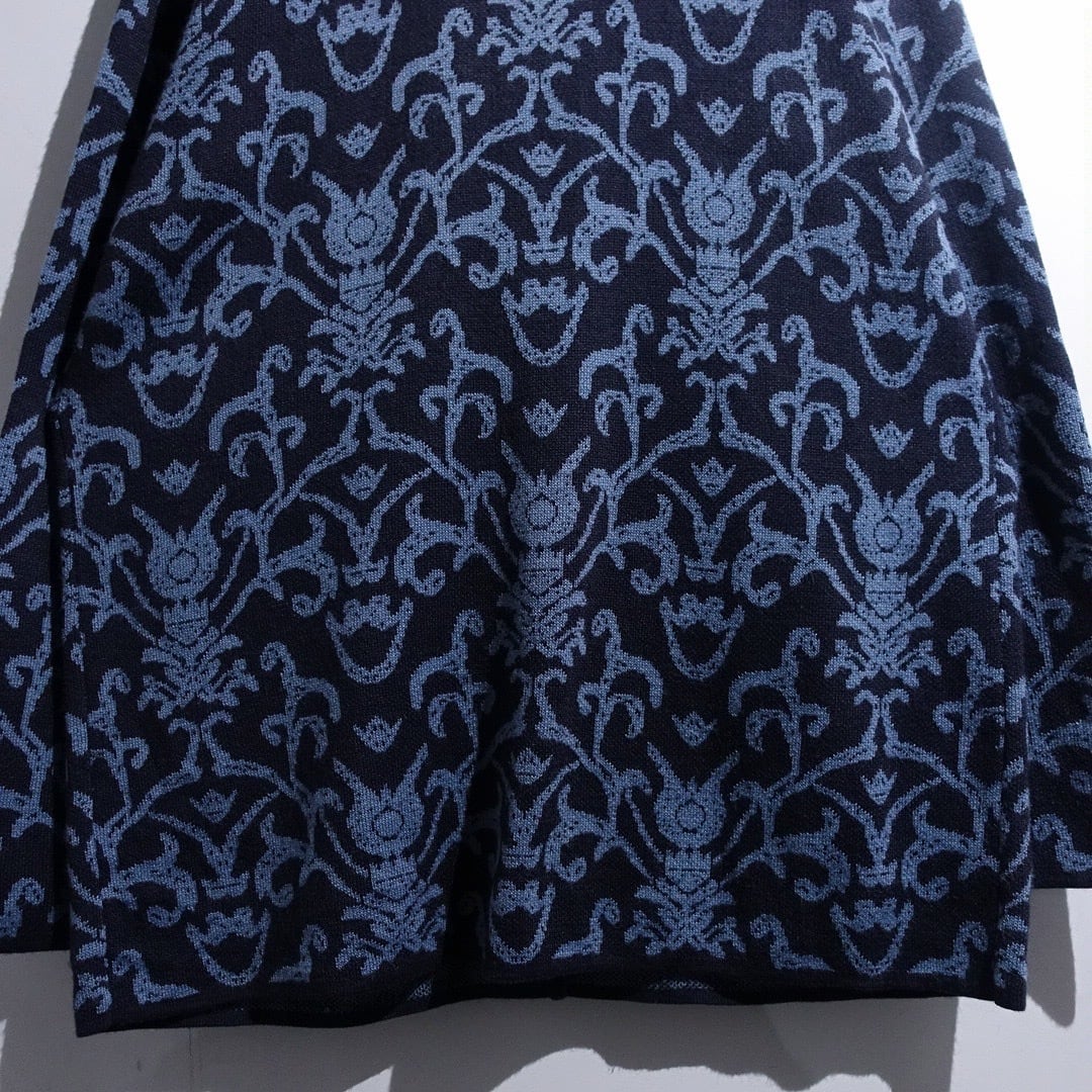 Navy Damask Pattern Design Knit Jacket