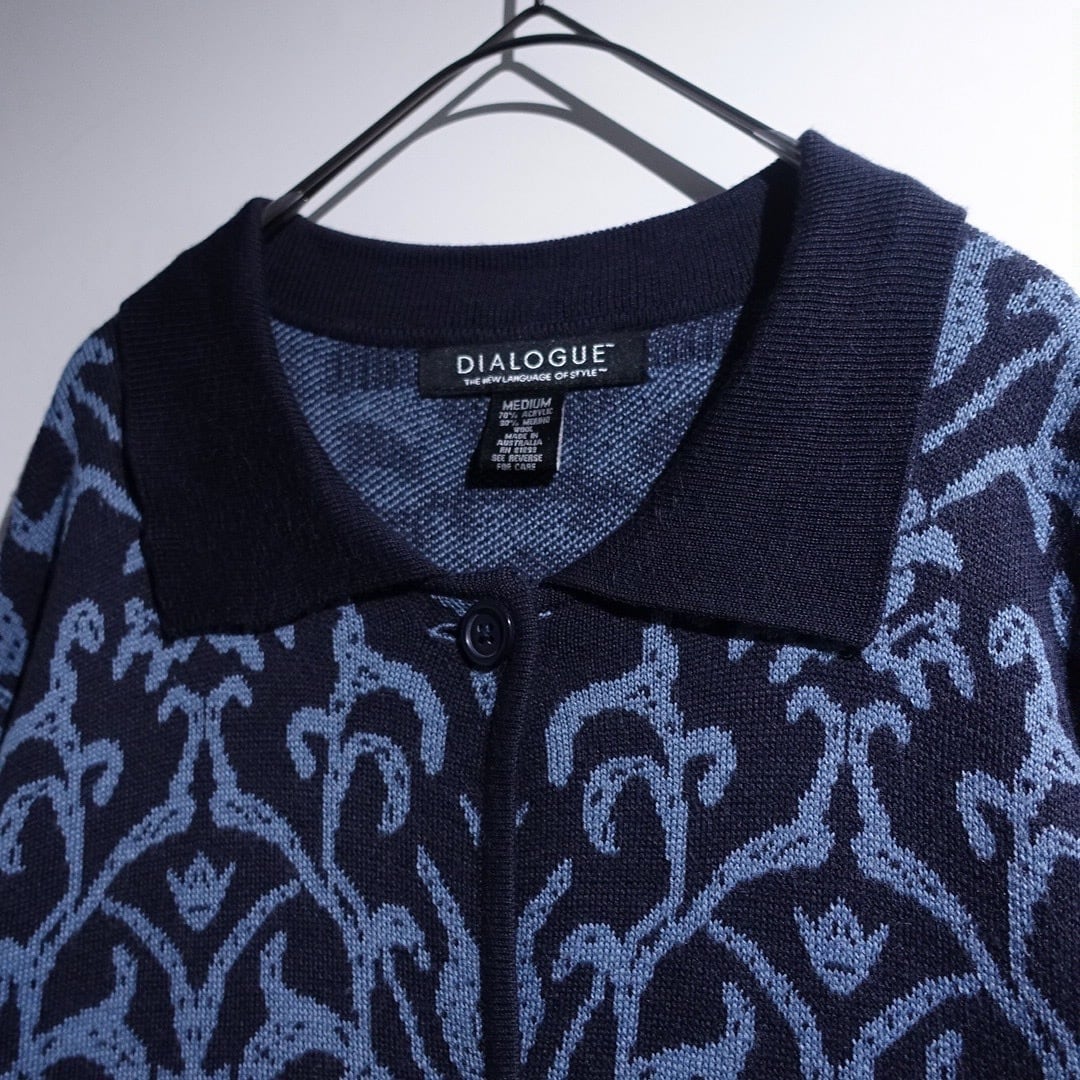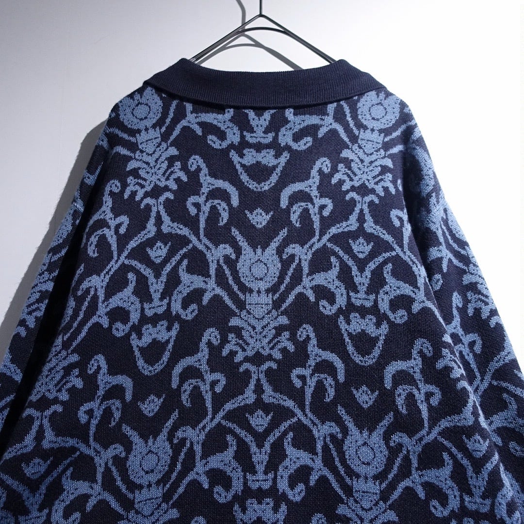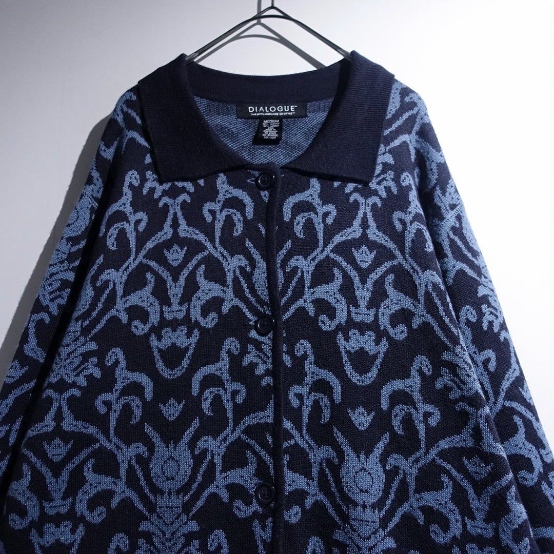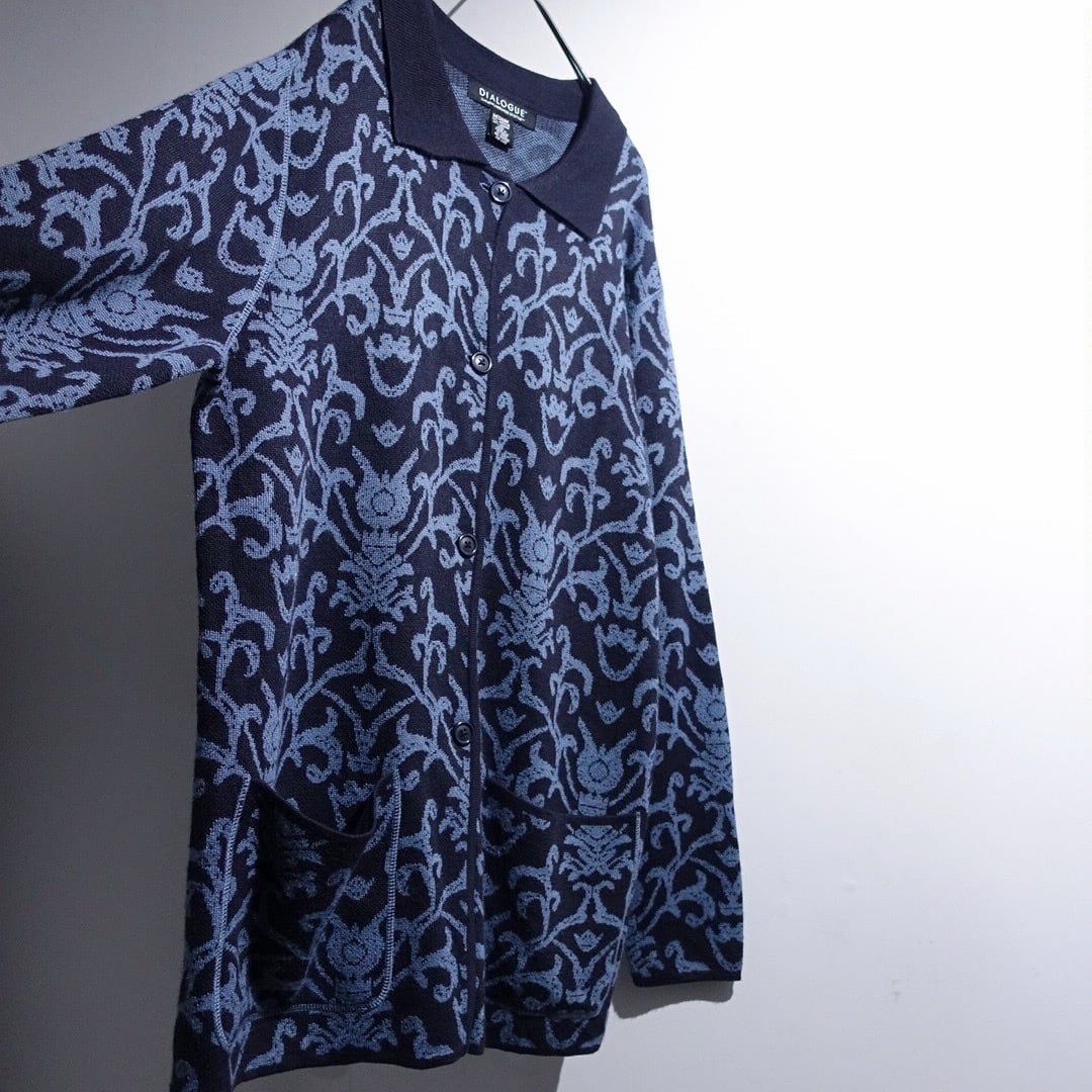 Navy Damask Pattern Design Knit Jacket