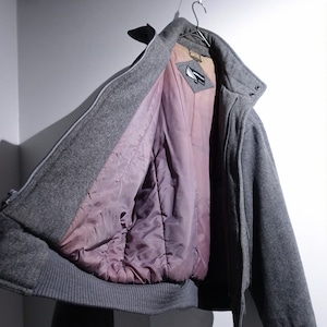 90s "MEMBERS ONLY" Gray Wool Padded High-Neck Blouson