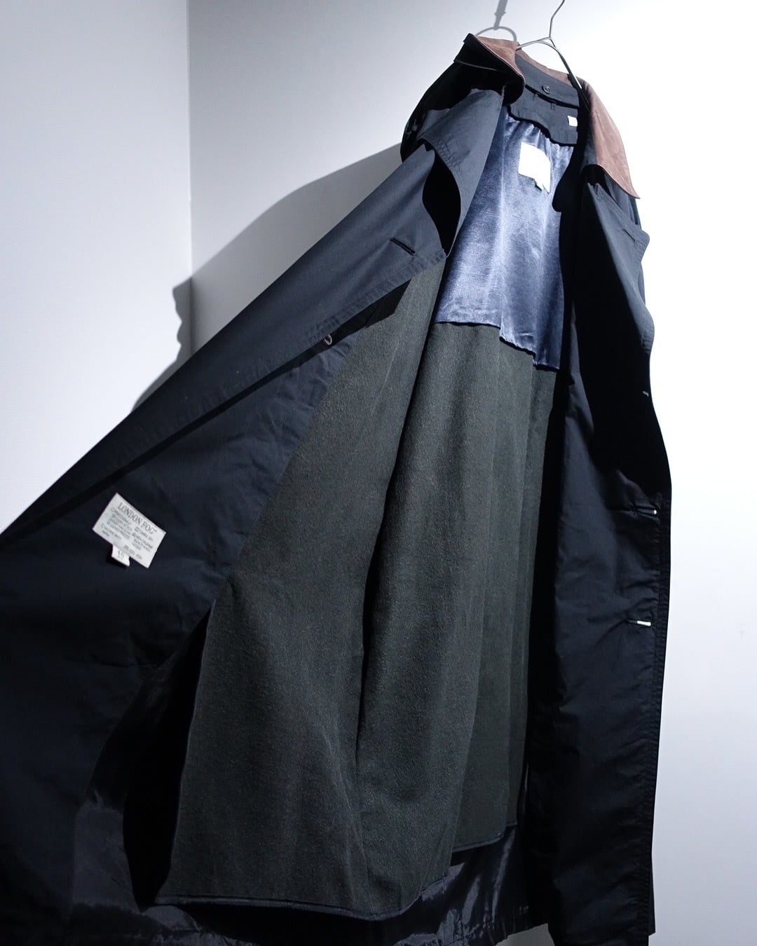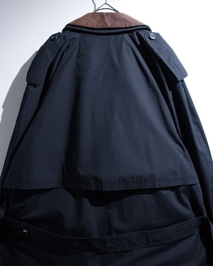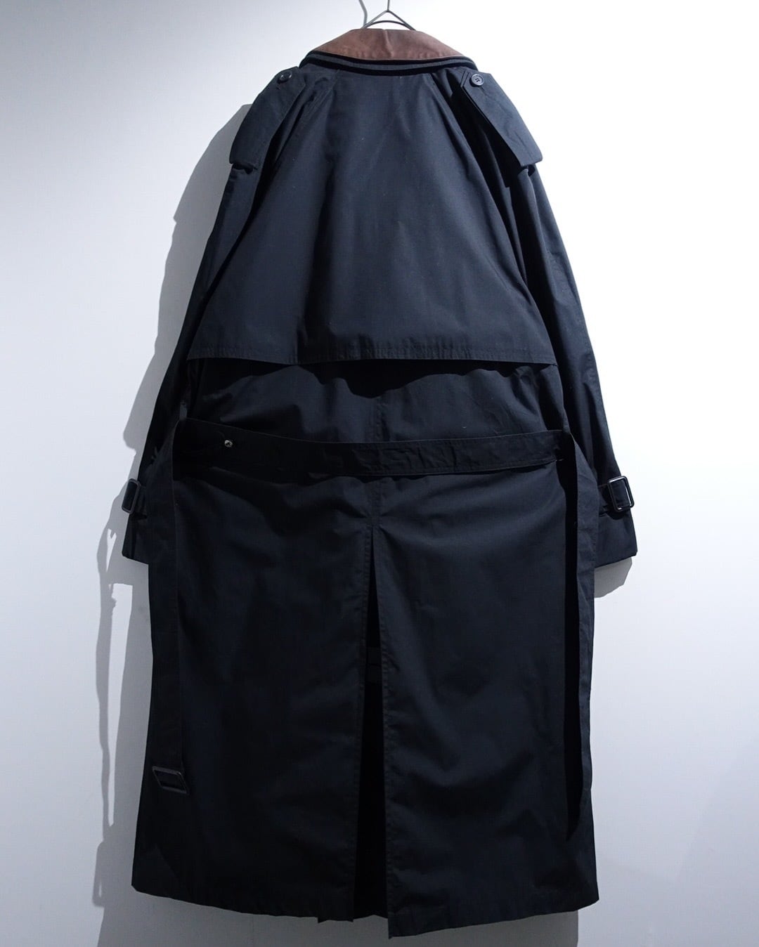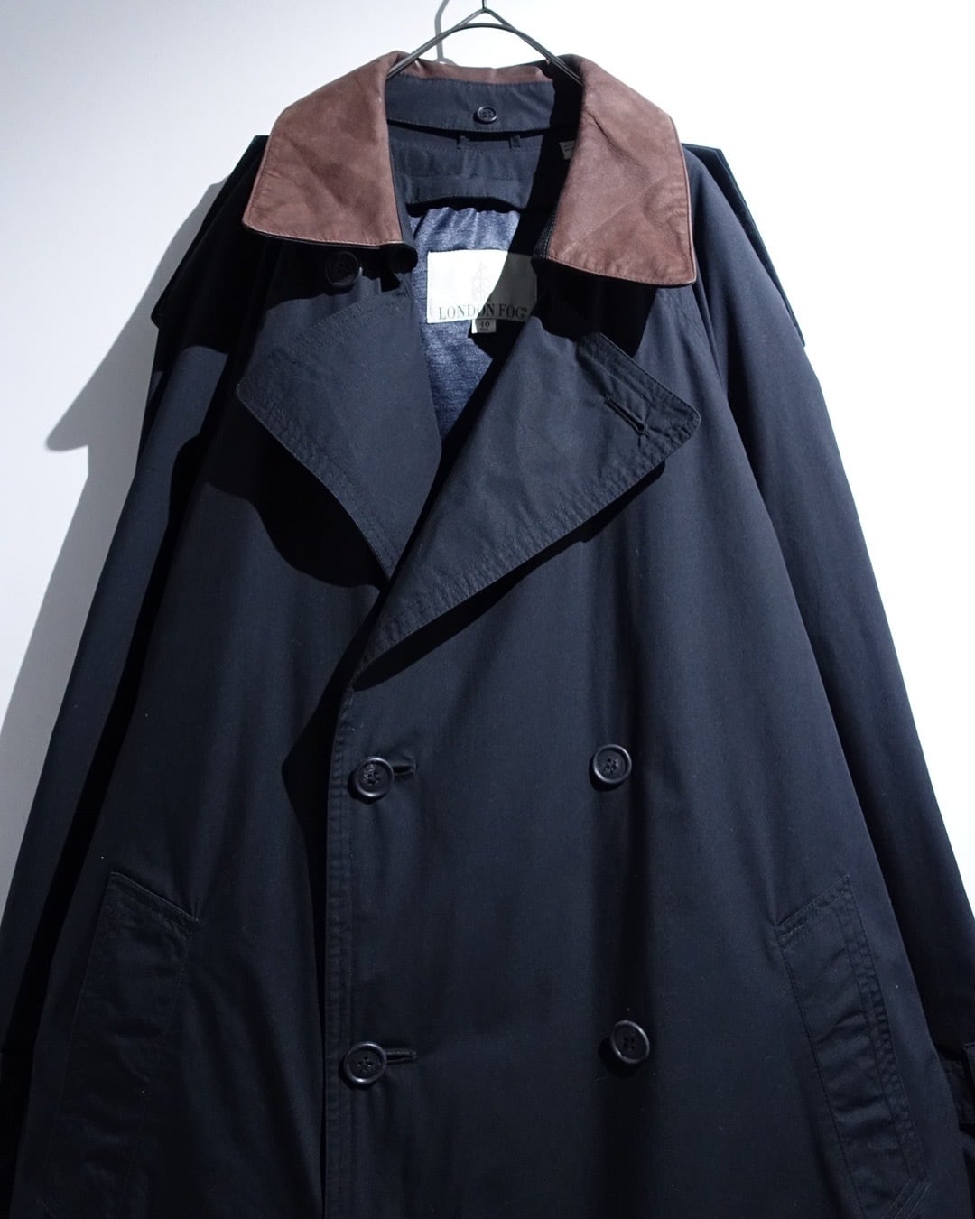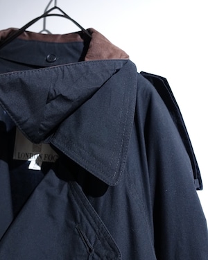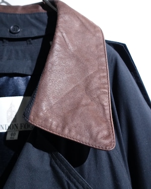 90s "London Fog" Black Leather Detachable Collar Long Trench Coat with Liner