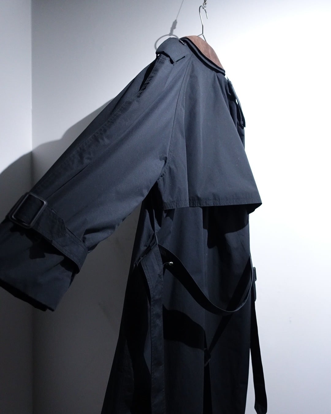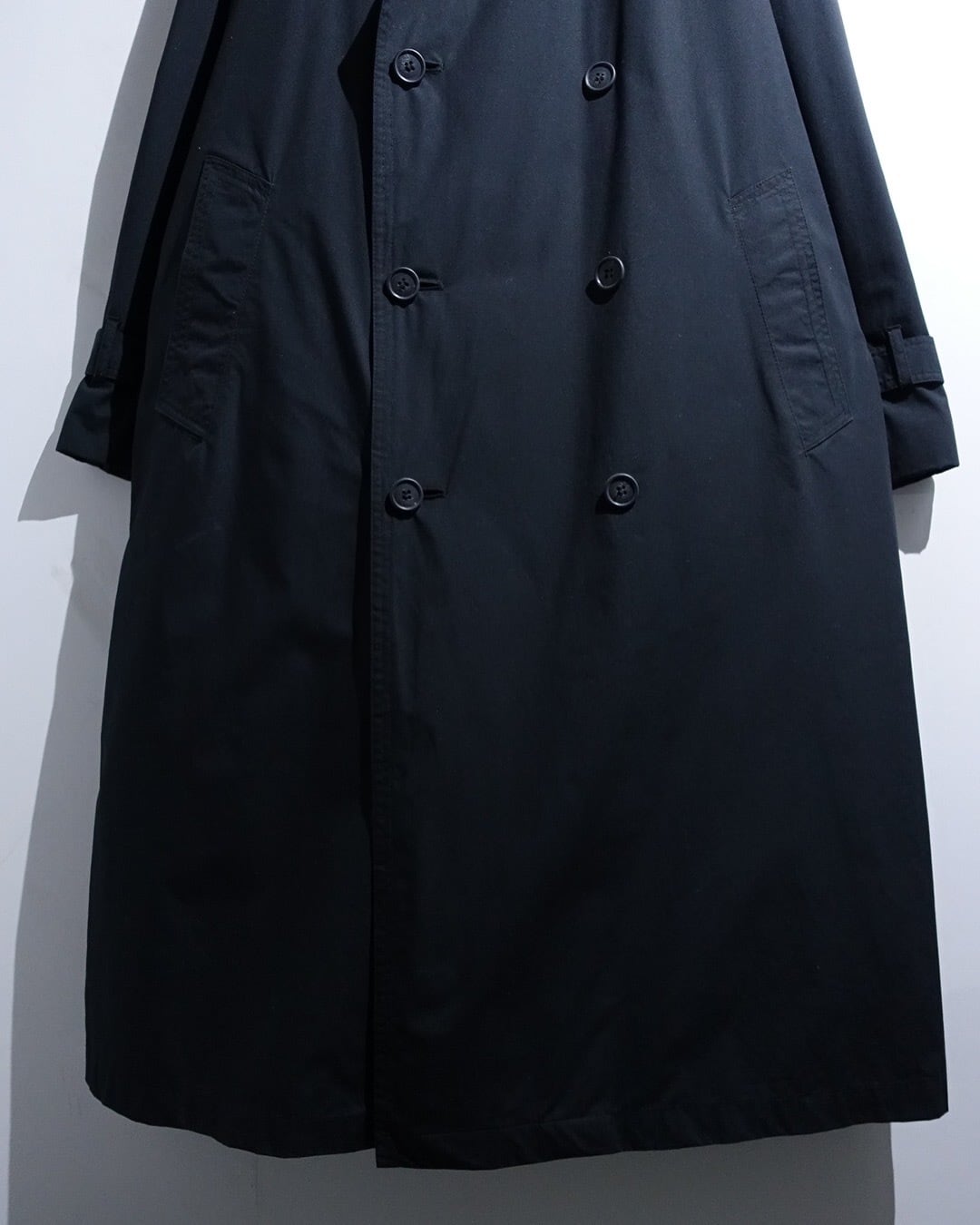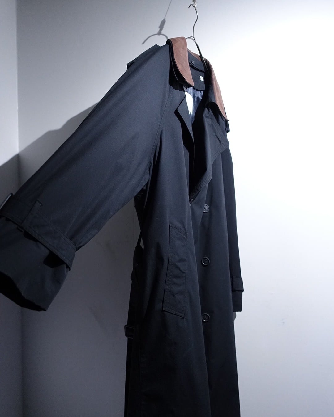 90s "London Fog" Black Leather Detachable Collar Long Trench Coat with Liner