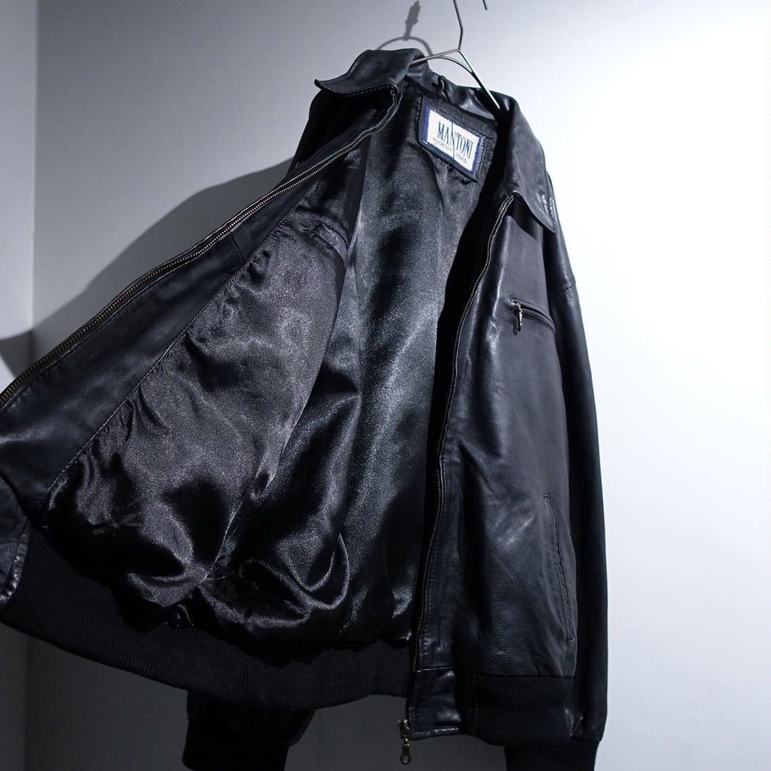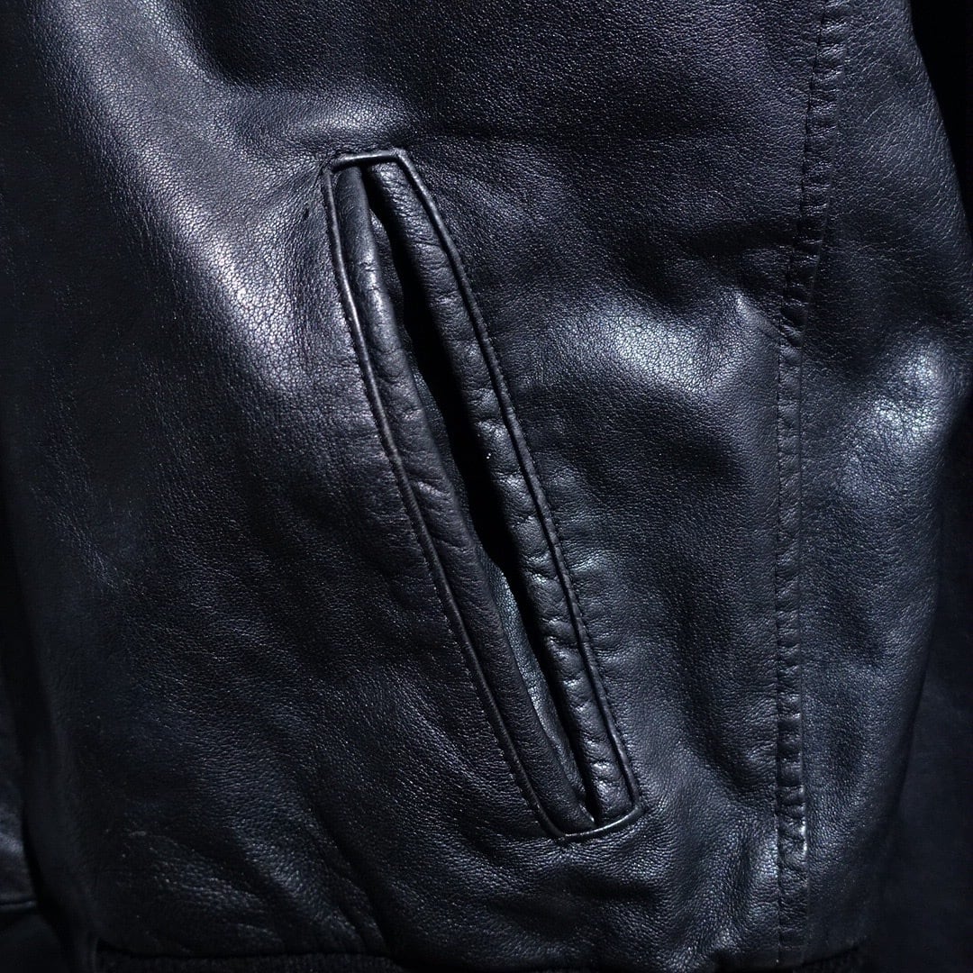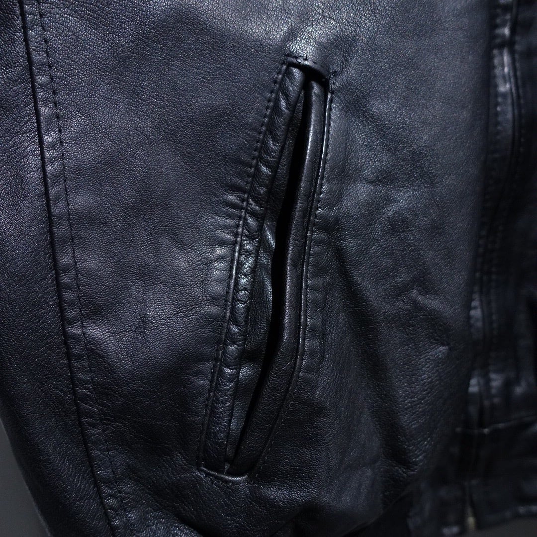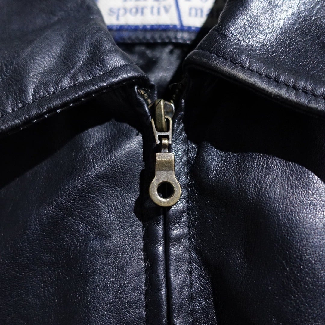 EURO Black Leather Design Zip Blouson