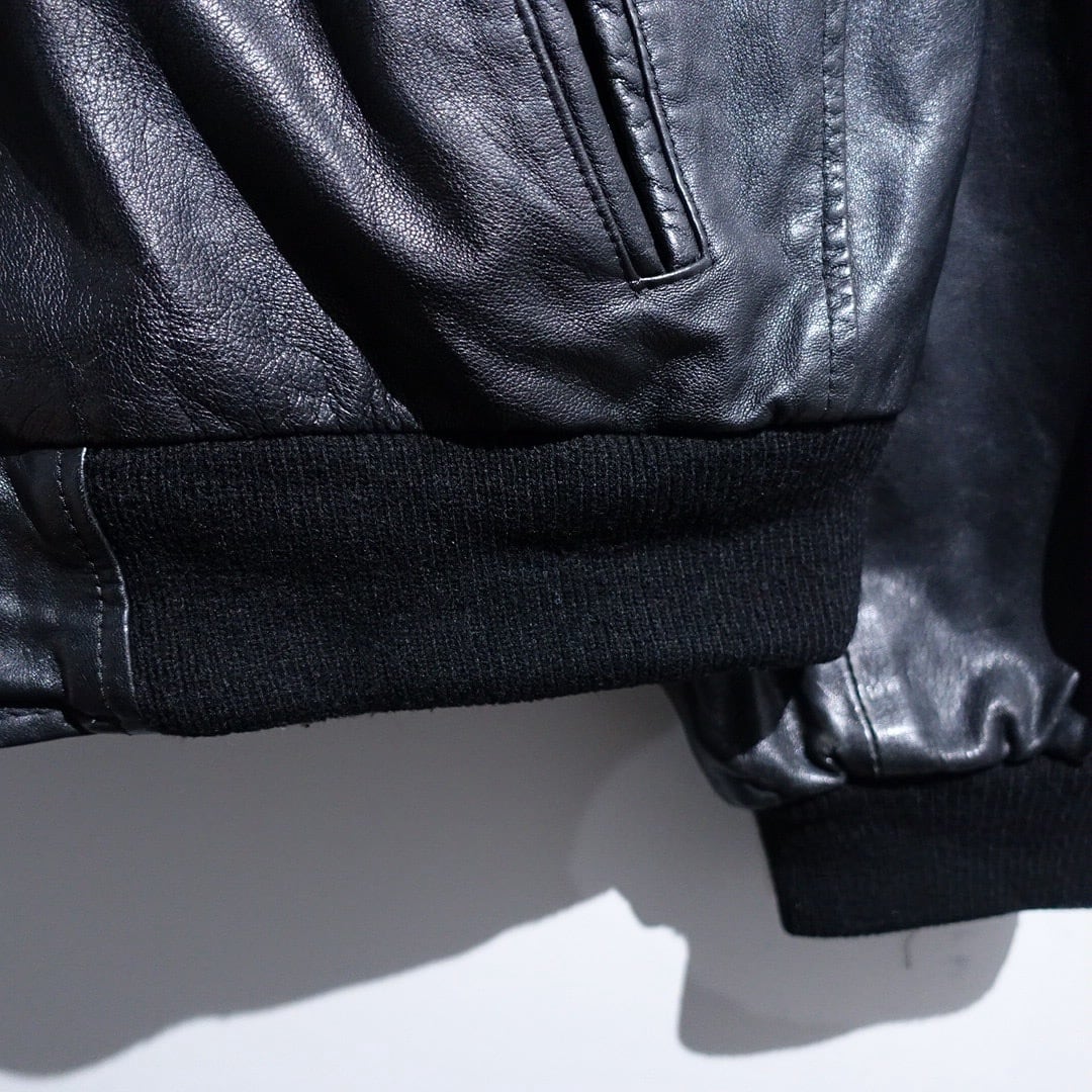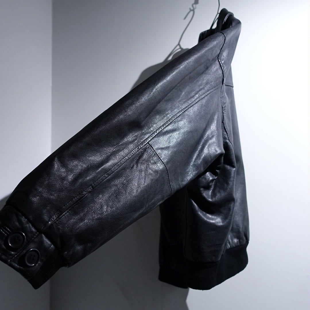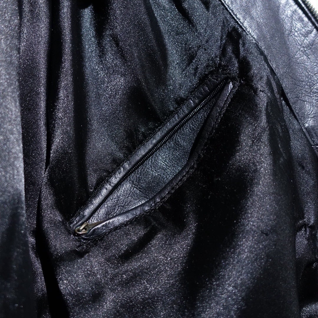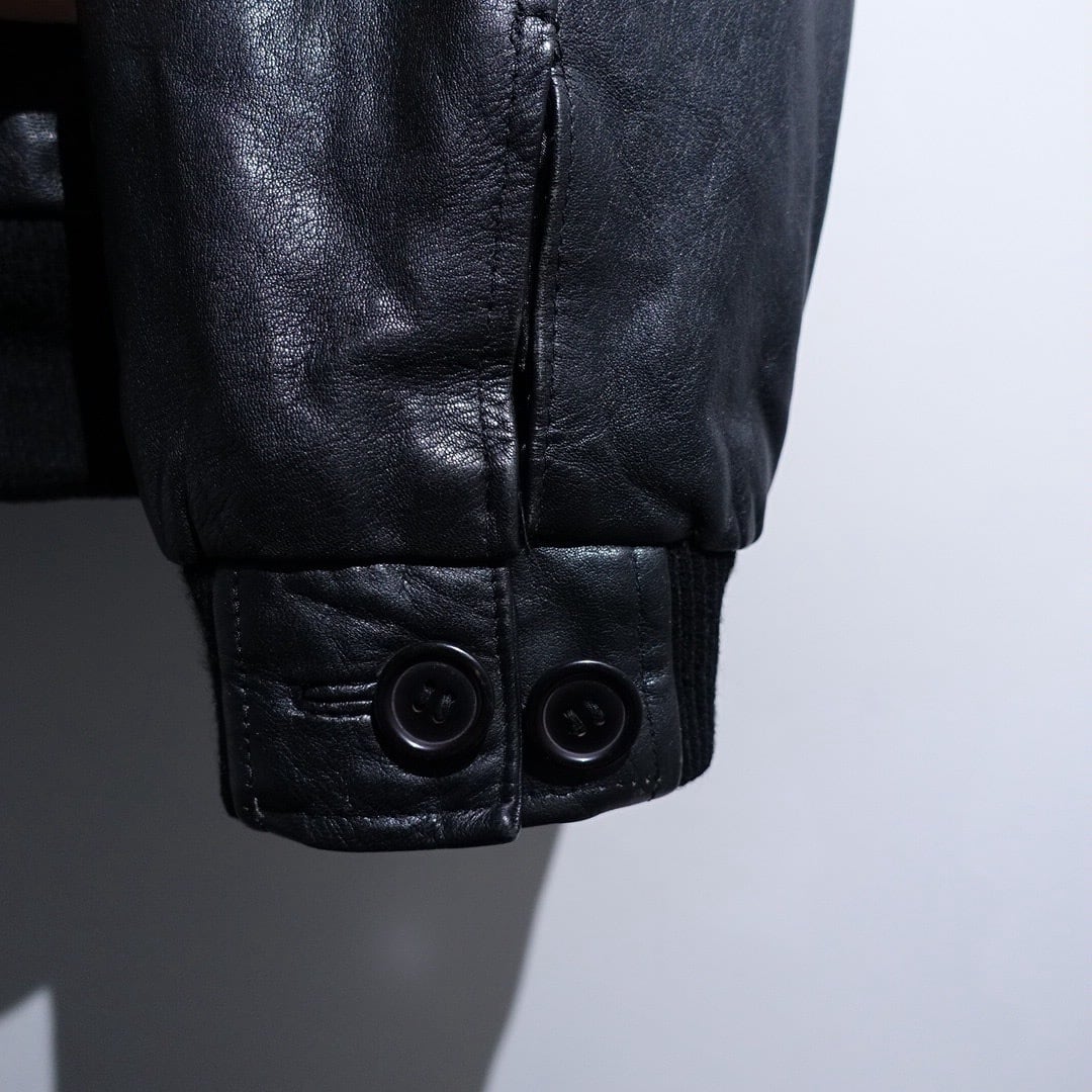 EURO Black Leather Design Zip Blouson