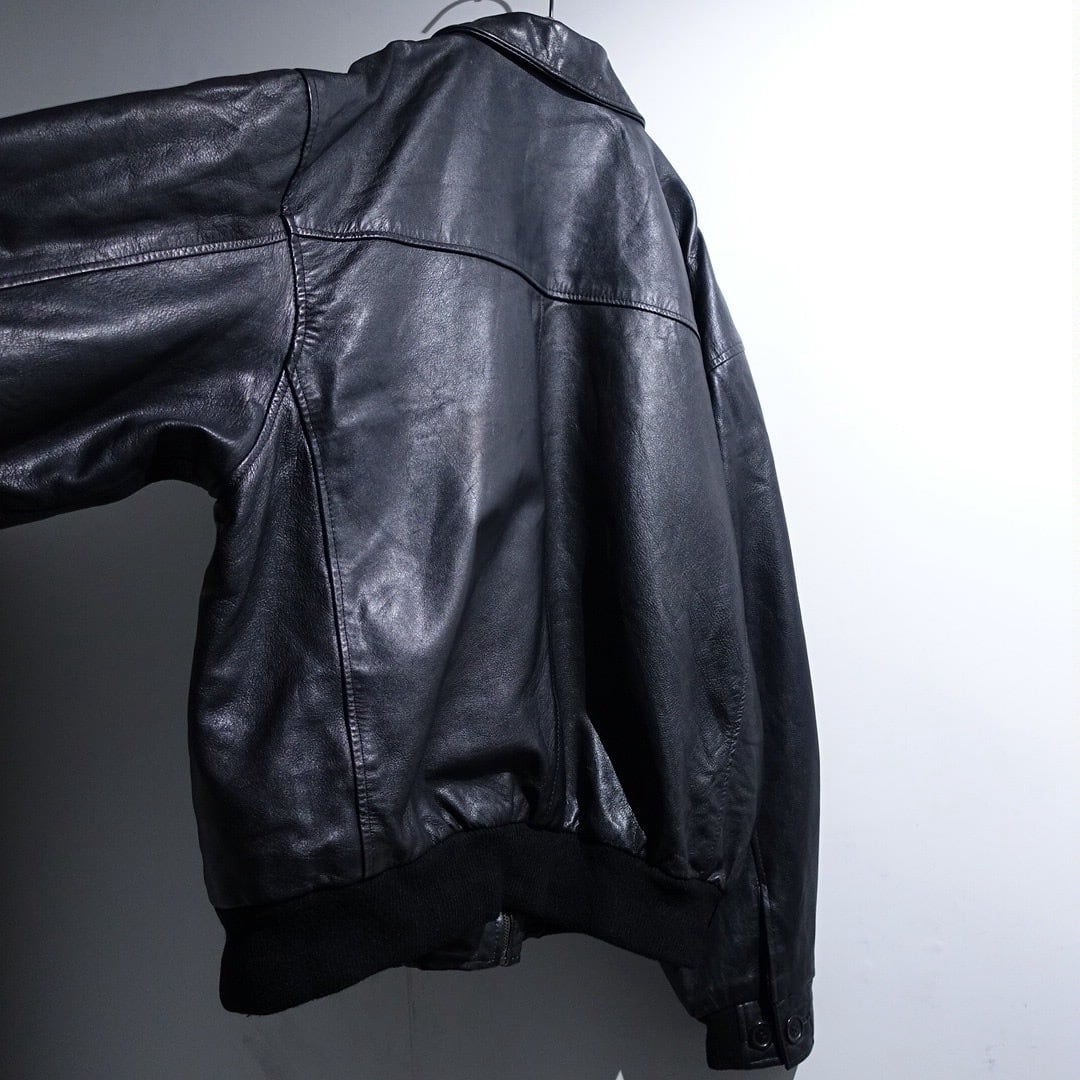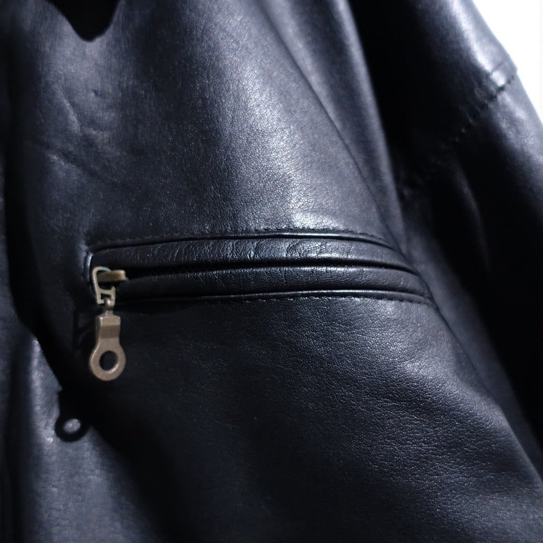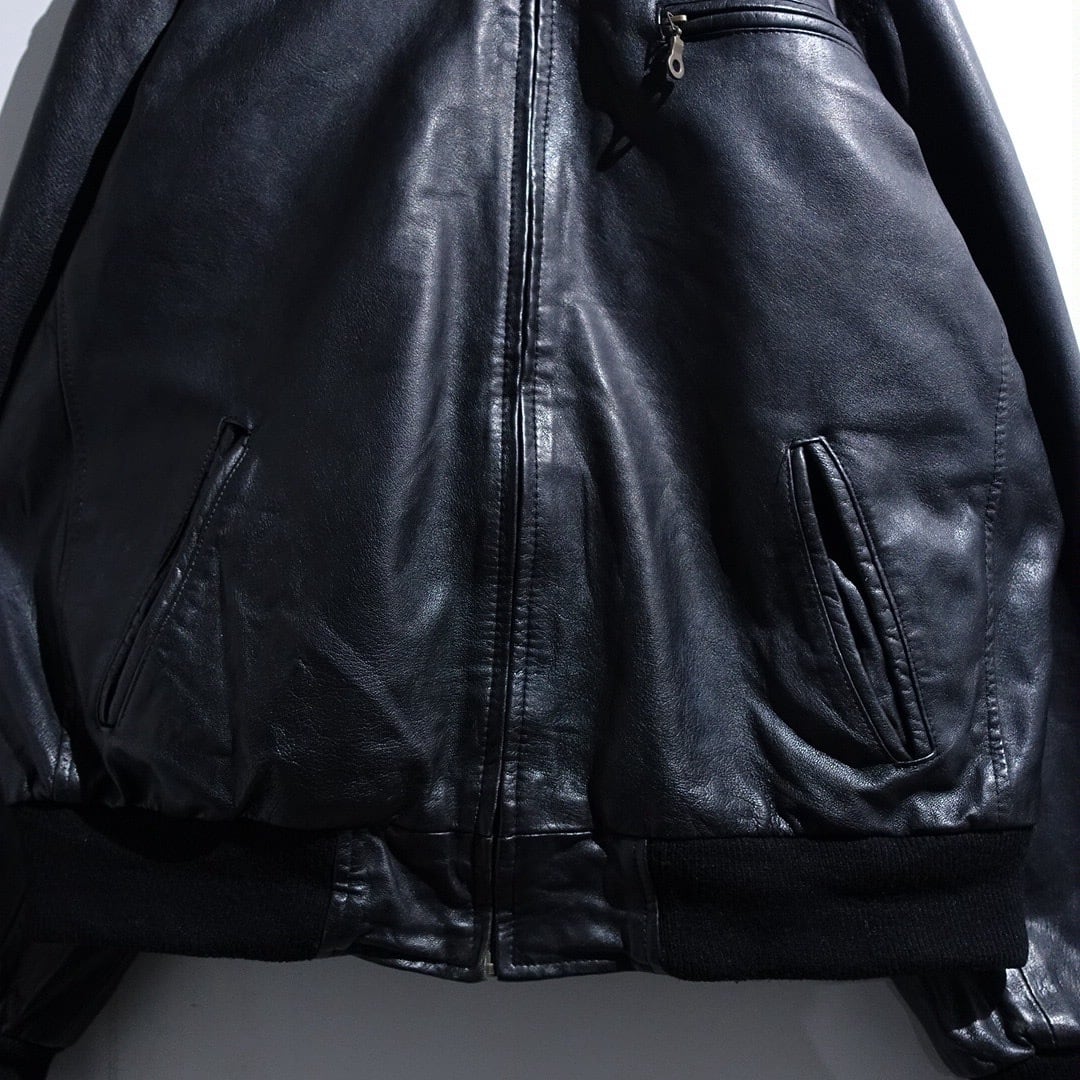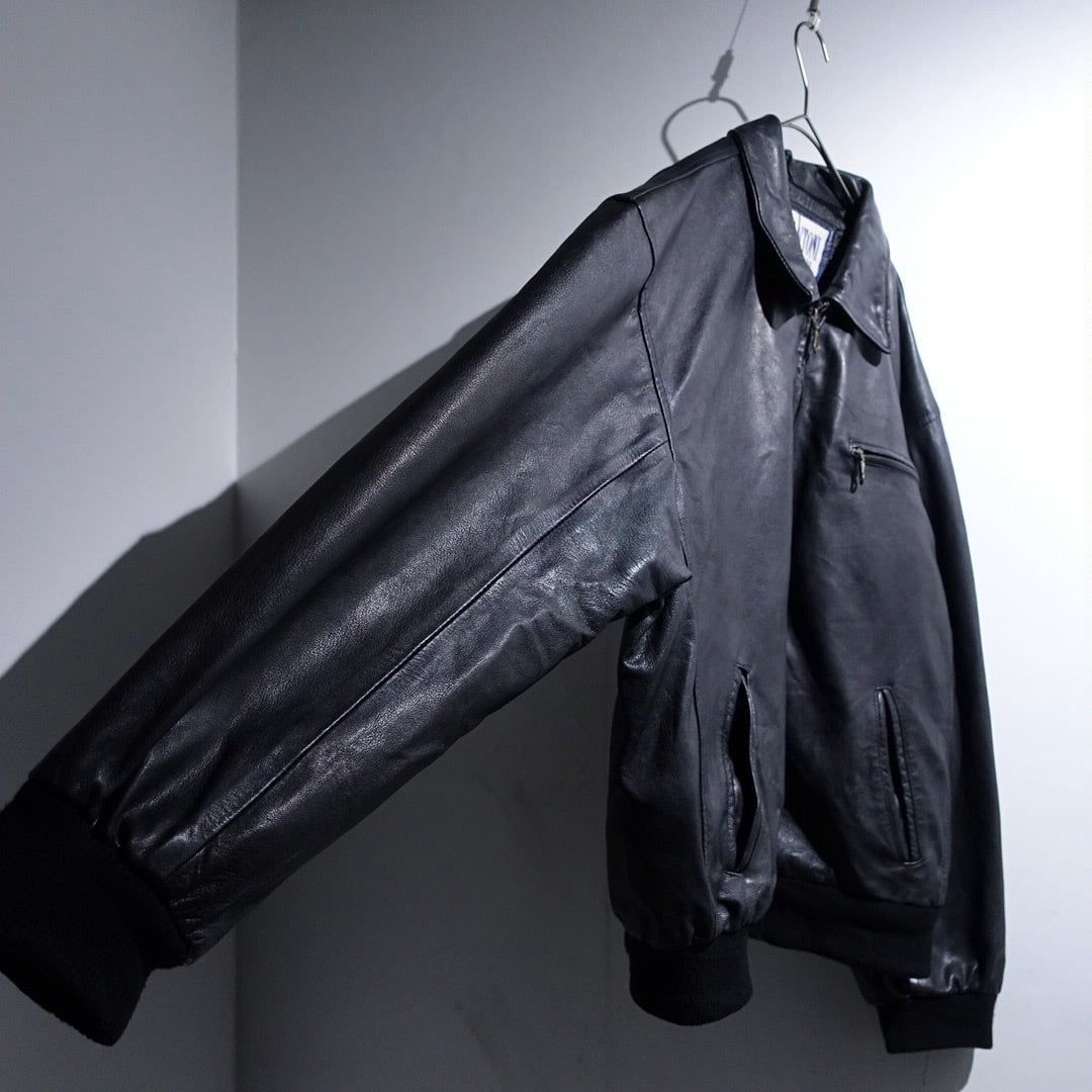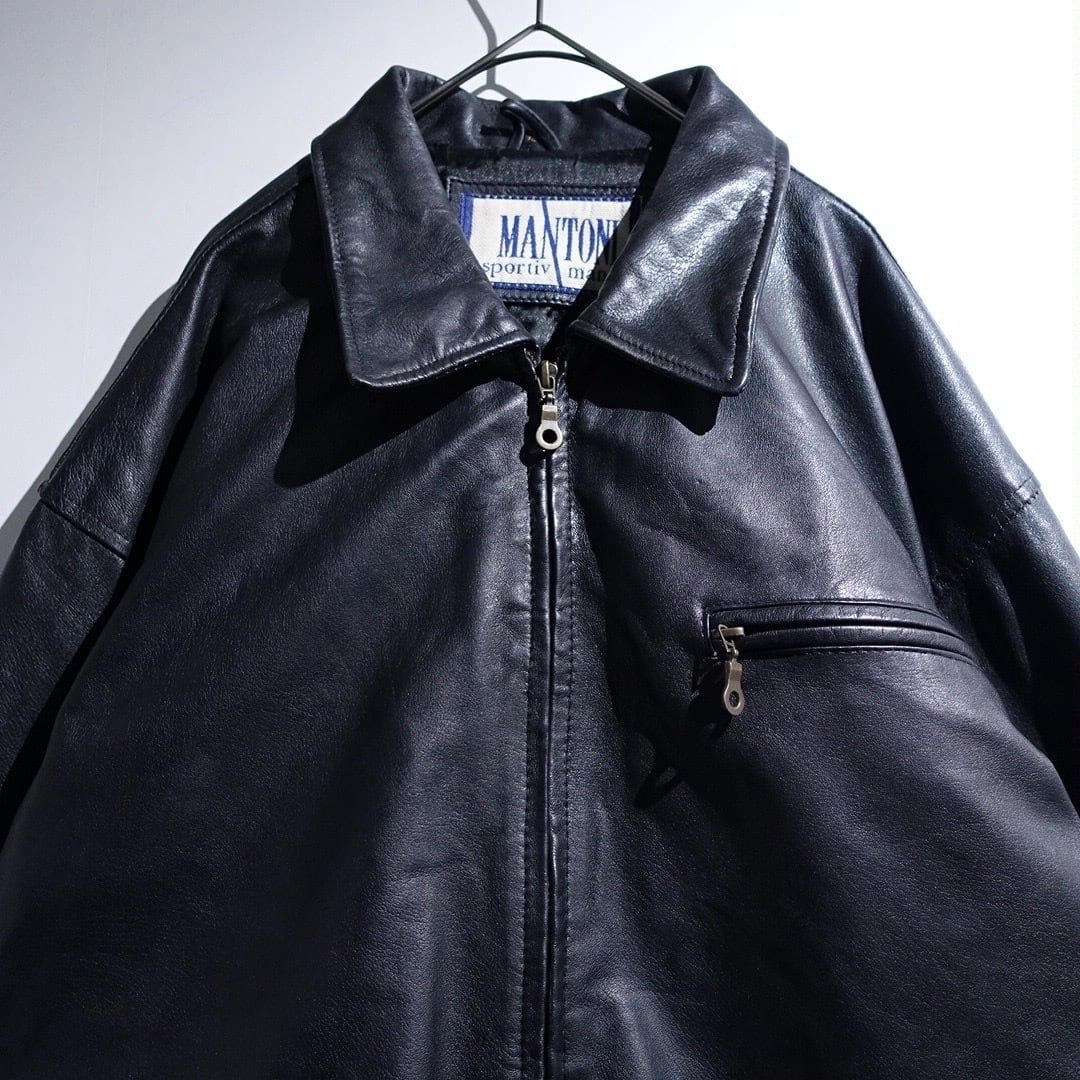EURO Black Leather Design Zip Blouson
