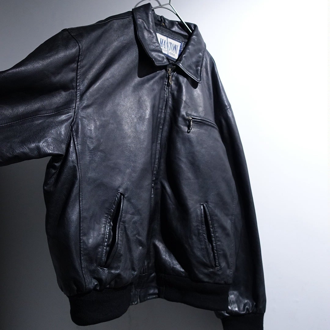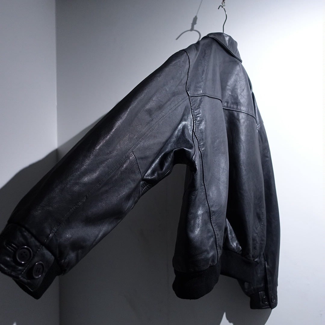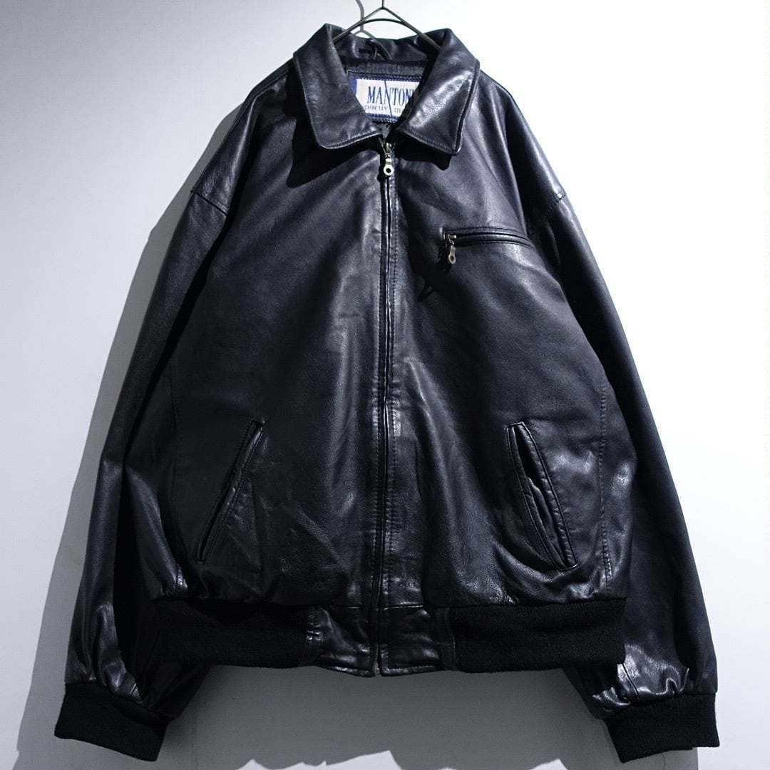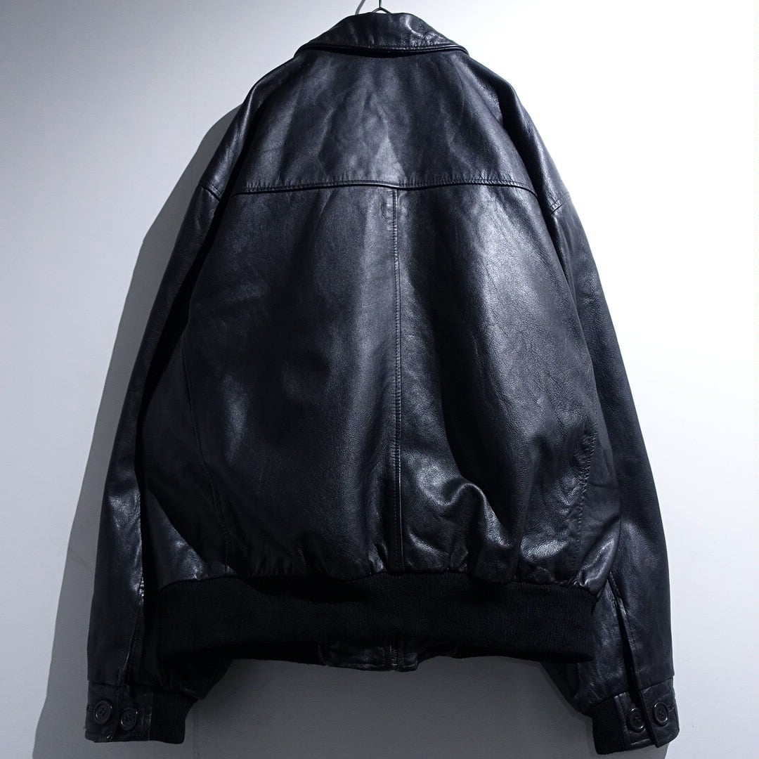 EURO Black Leather Design Zip Blouson