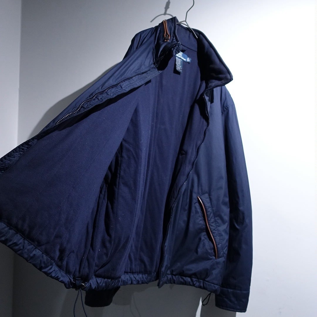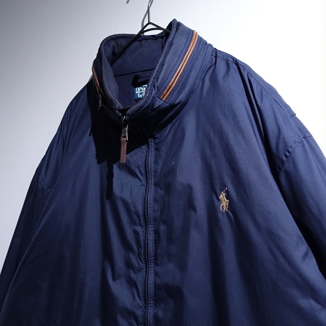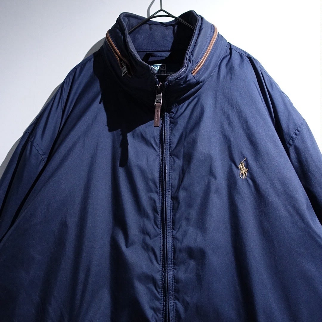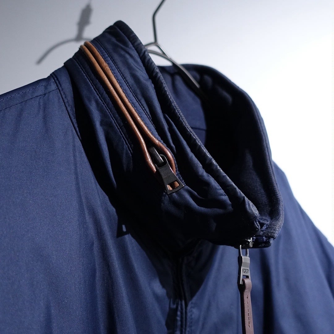 90s "Ralph Lauren" Navy Logo Leather Piping Design Nylon Zip Blouson