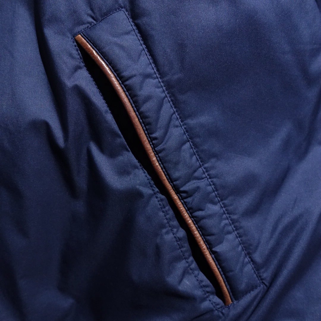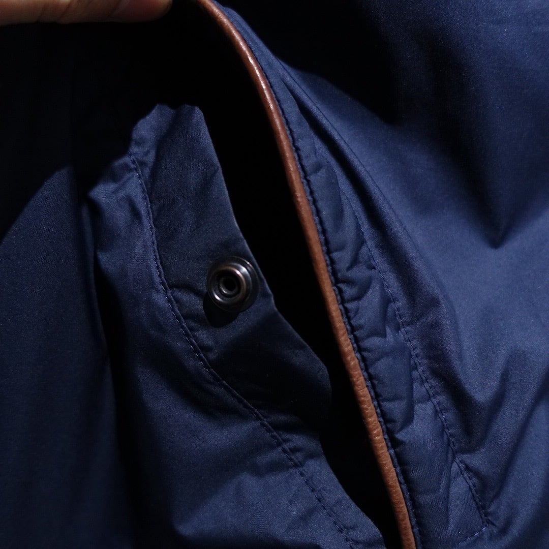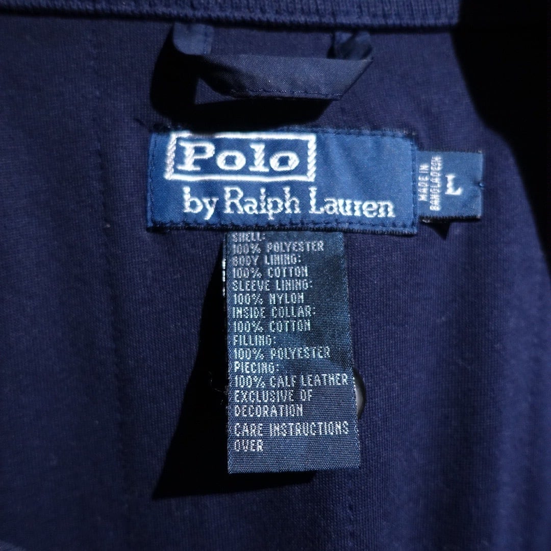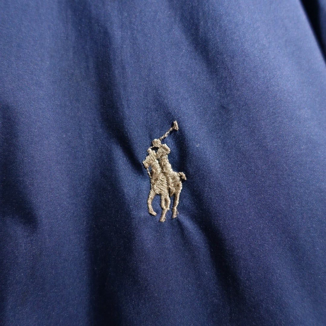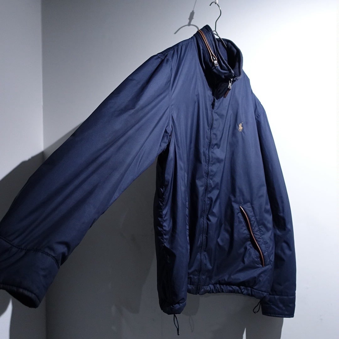 90s "Ralph Lauren" Navy Logo Leather Piping Design Nylon Zip Blouson