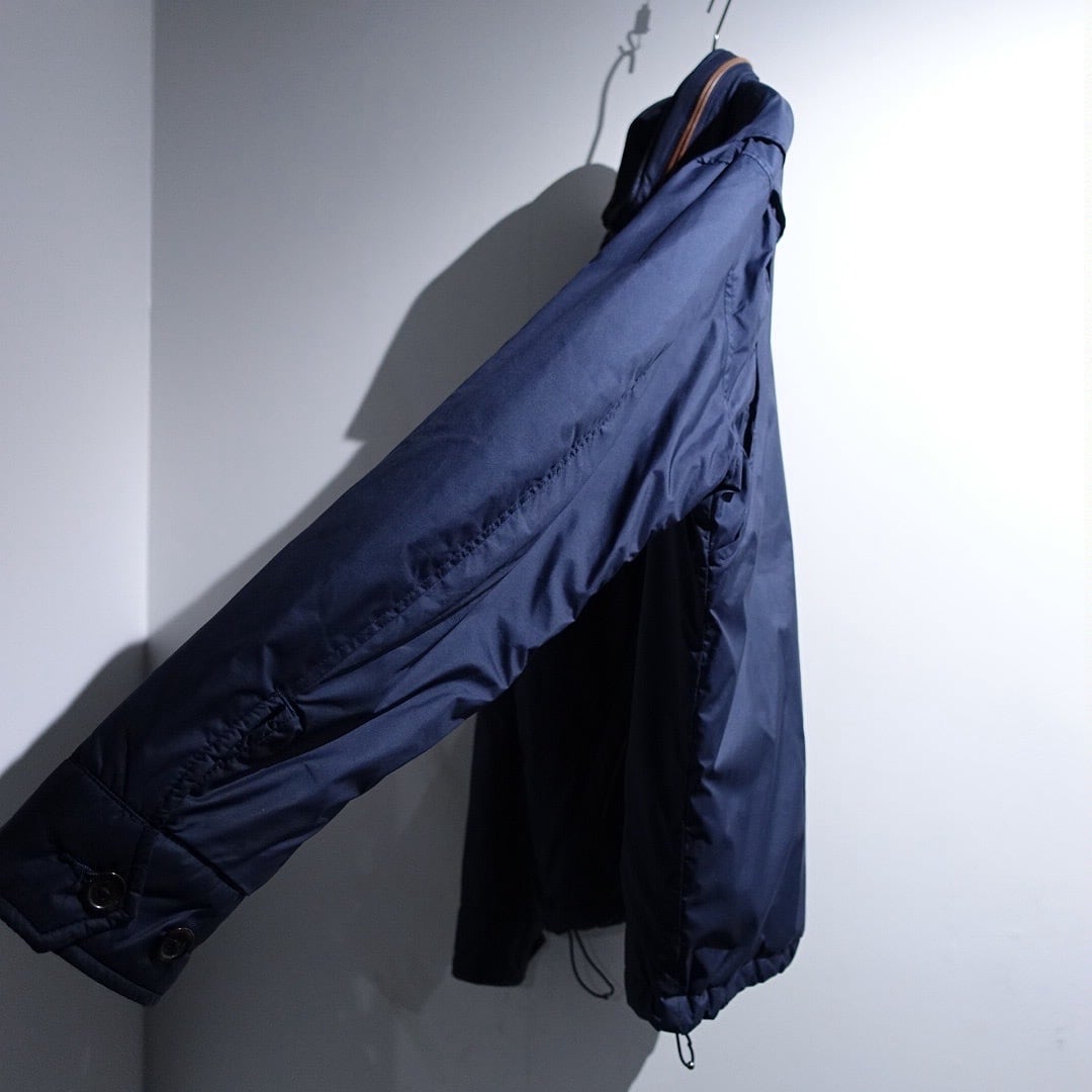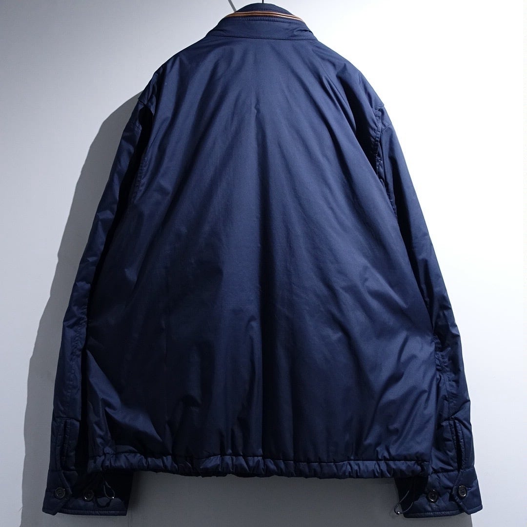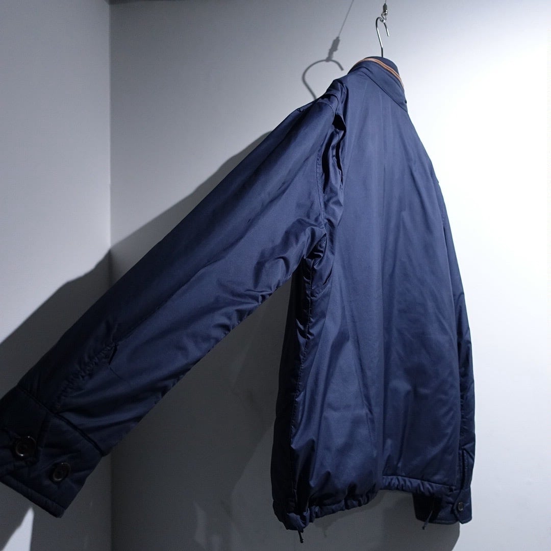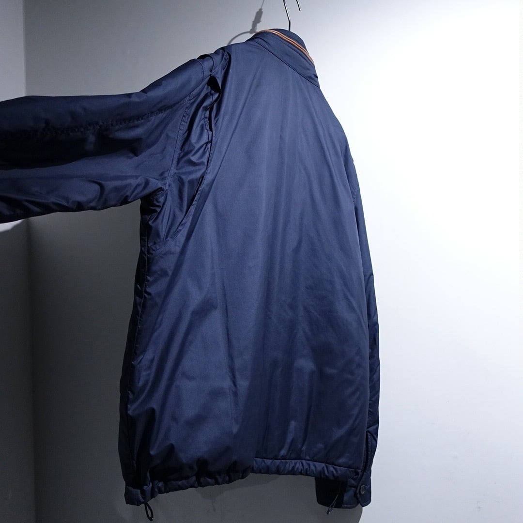 90s "Ralph Lauren" Navy Logo Leather Piping Design Nylon Zip Blouson
